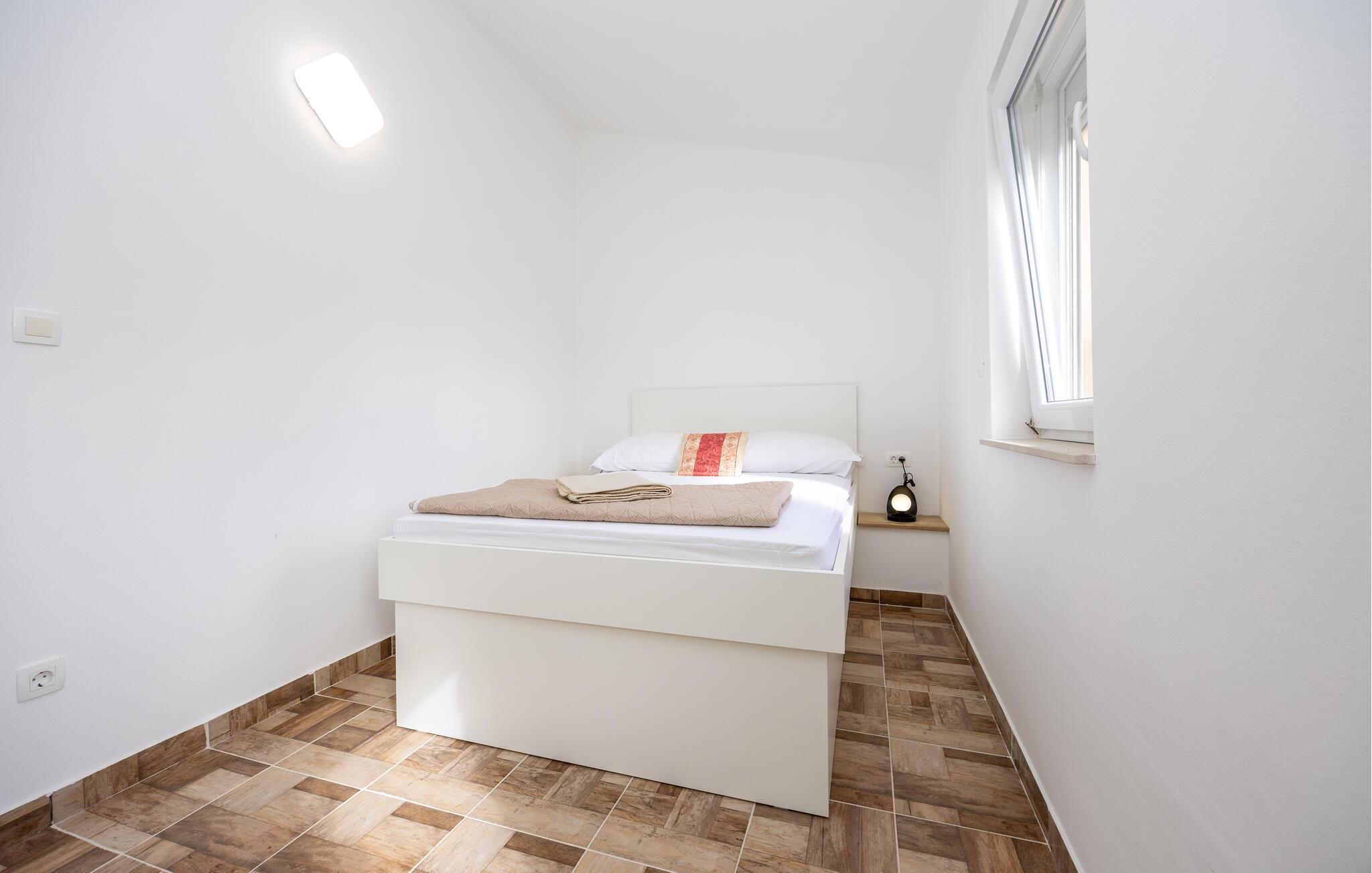 Denne ferielejlighed tilbyder jer en særlig pause på en idyllisk grund omgivet af smuk natur. Den lyse og praktiske indretning samt det lysfyldte miljø skaber et behageligt fristed, hvor I kan nyde roen og slappe helt af. Balkonen med indgangsområde inviterer til afslappende stunder med et glas vin – prøv de lækre vine og lokale produkter direkte fra Rebic-vingården og oplev regionens autentiske charme.