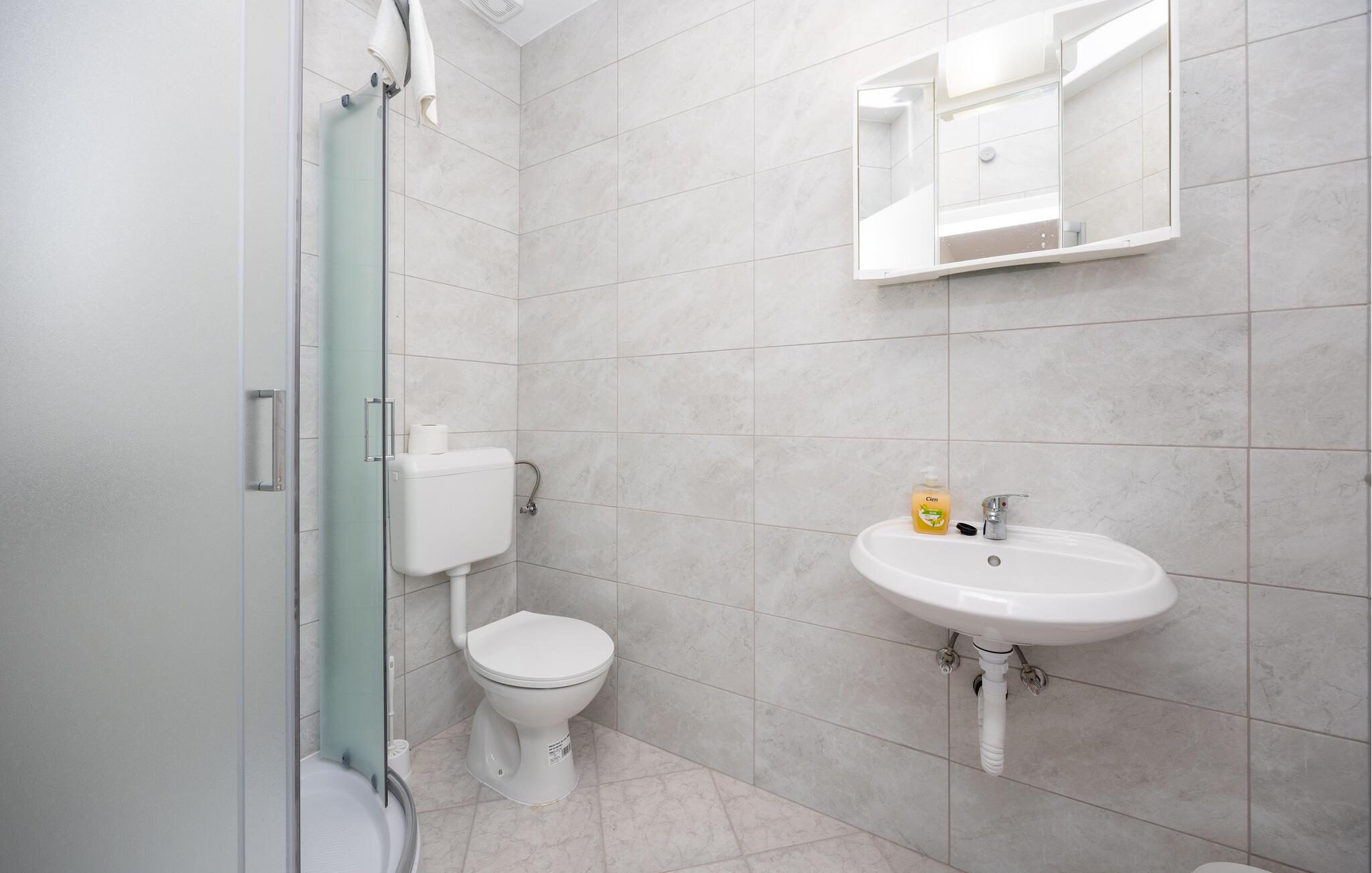 Badeværelse 5m2 (nr. 1) - WC. Varmt og koldt vand. Håndbruser