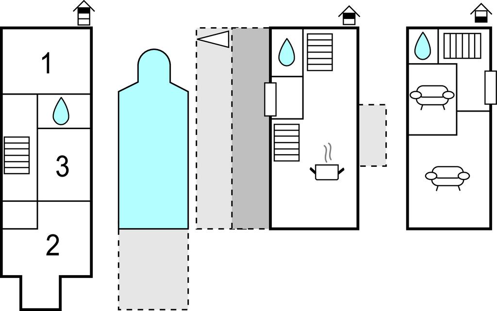 Badeværelse 4m2 (nr. 3) - WC. Varmt og koldt vand. Bruser