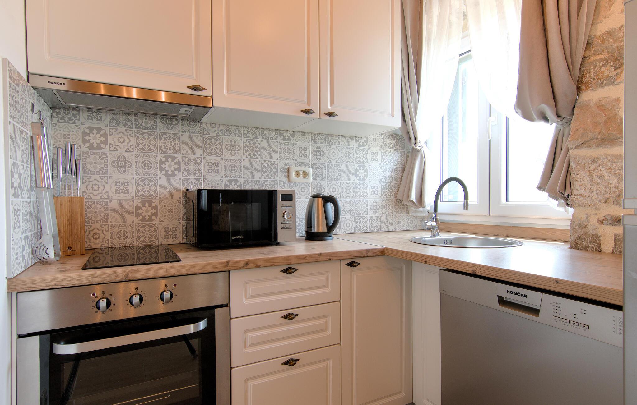 Det ydre har flere terrasser, en overdækket terrasse med grill, hvor I kan tilbringe behagelige stunder med familie eller venner. Forskellige legemuligheder som rutsjebane, legehus eller gynge vil glæde vores yngste gæster. De smukke kiesstrande ved Makarska Riviera ligger kun en halv times kørsel væk, samt adskillige restauranter og taverner med lokale specialiteter, der supplerer jeres ferie.