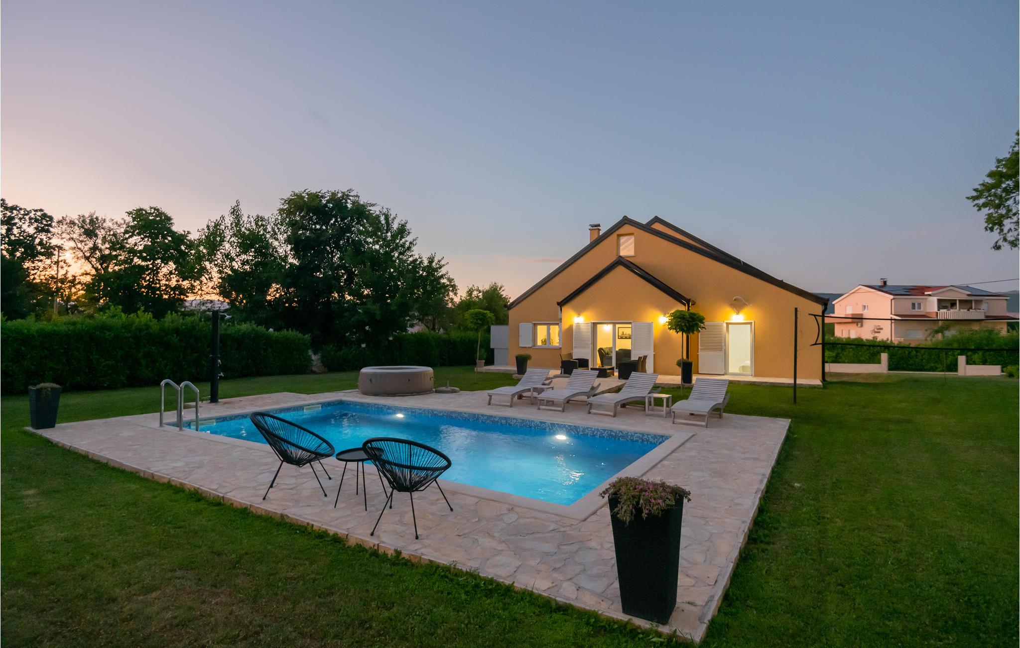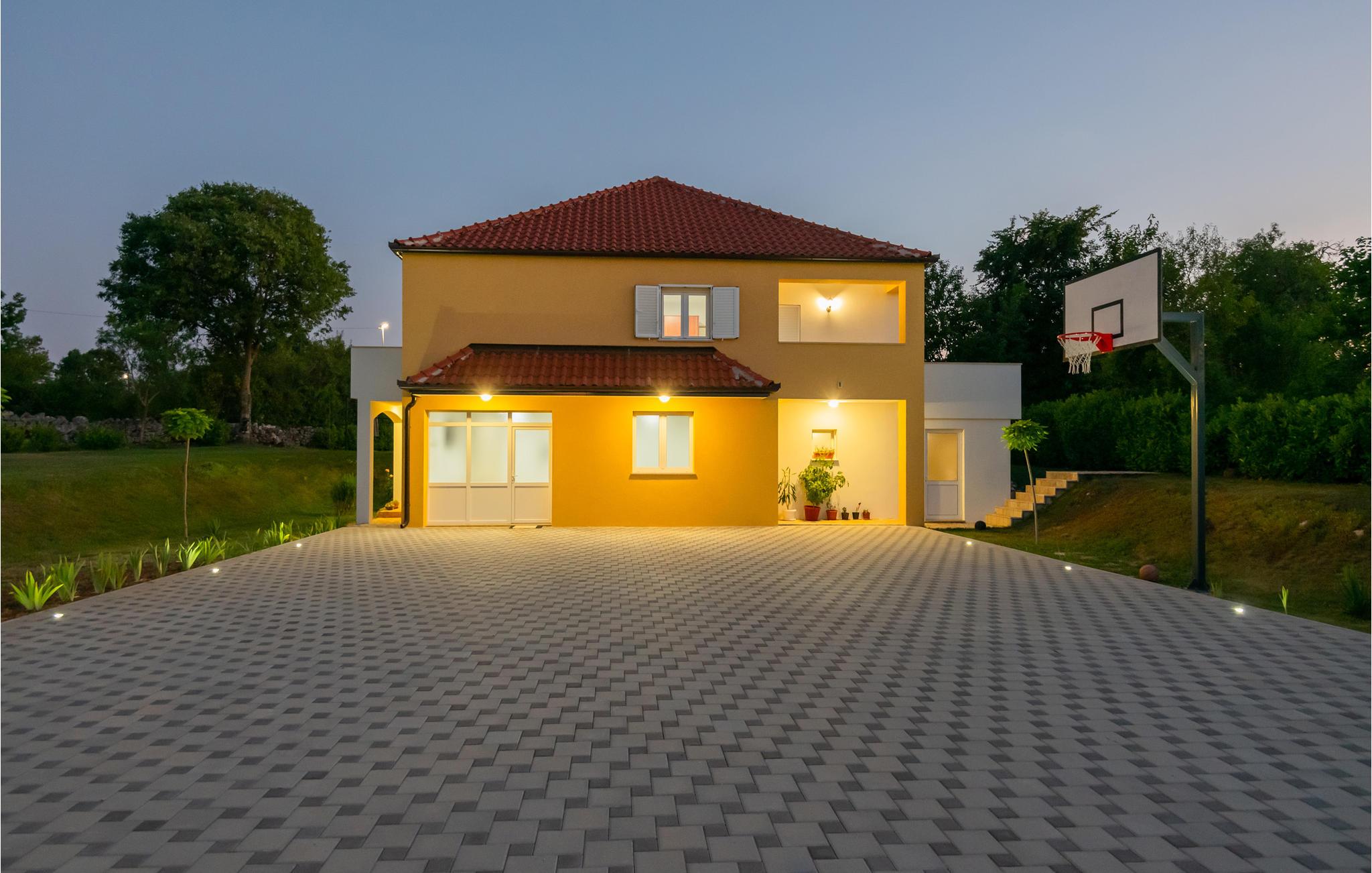 Bo kun få minutter i bil fra Imotski med de smukke søer: den røde og den blå sø. Dette hyggelige feriehus ligger i charmerende omgivelser, i Mellemdalmatiens bagland, med god plads ude som inde. I stueplan er der et aktivitetsrum, der er forbundet med indre trappe til den øverste etage. Foran huset er der en swimmingpool og en legeplads til børnene, samt en terrasse med grill til hyggelige afslappede timer for familiens voksne. De skønne kiesstrande i Makarska, Brela og Baska Vode nås på kun en halv time i bilen.