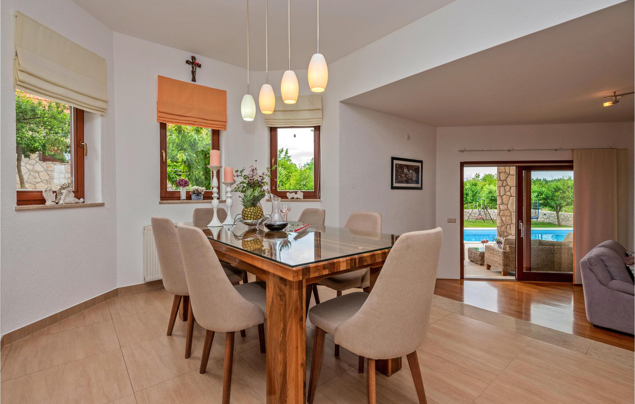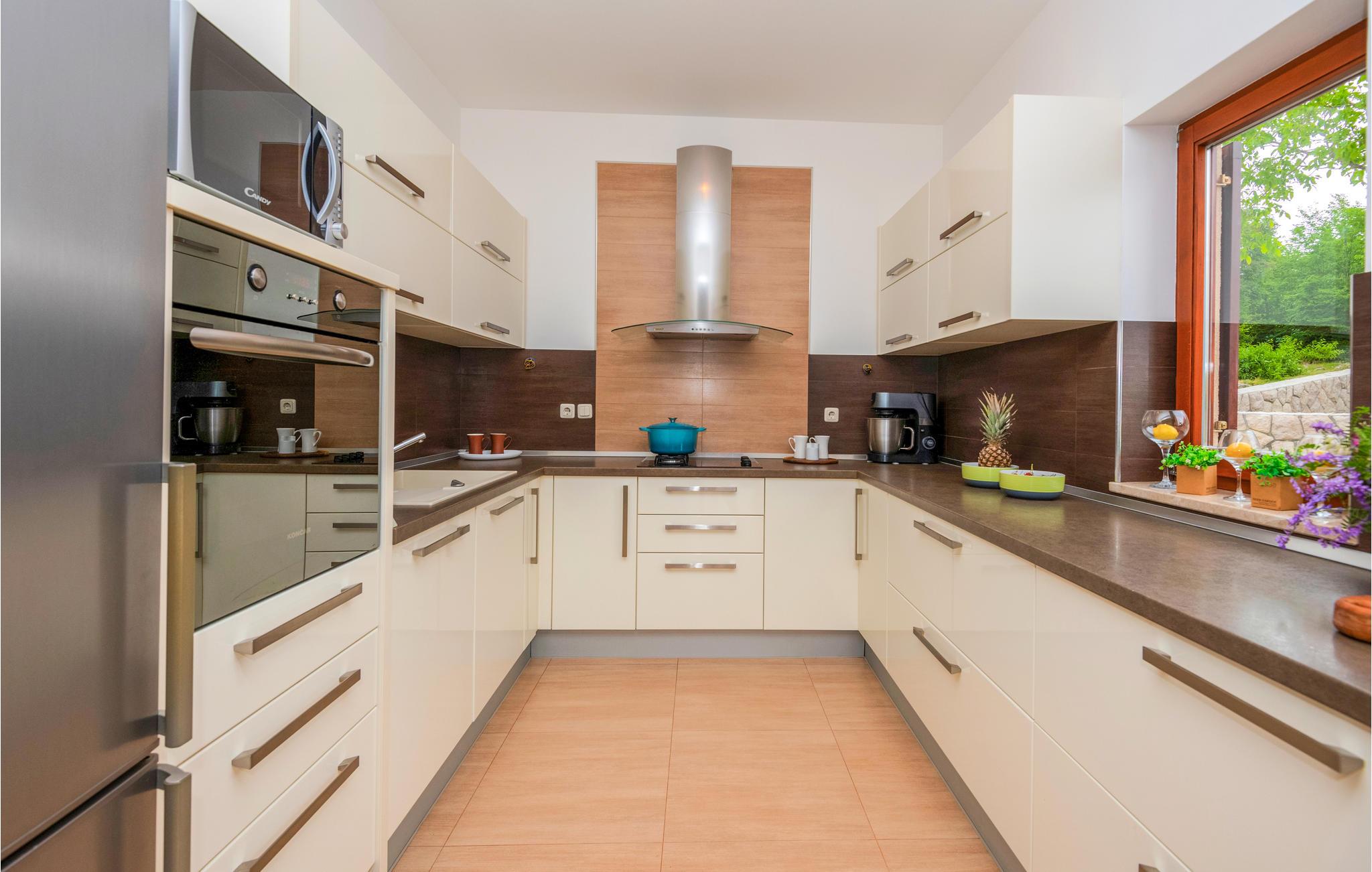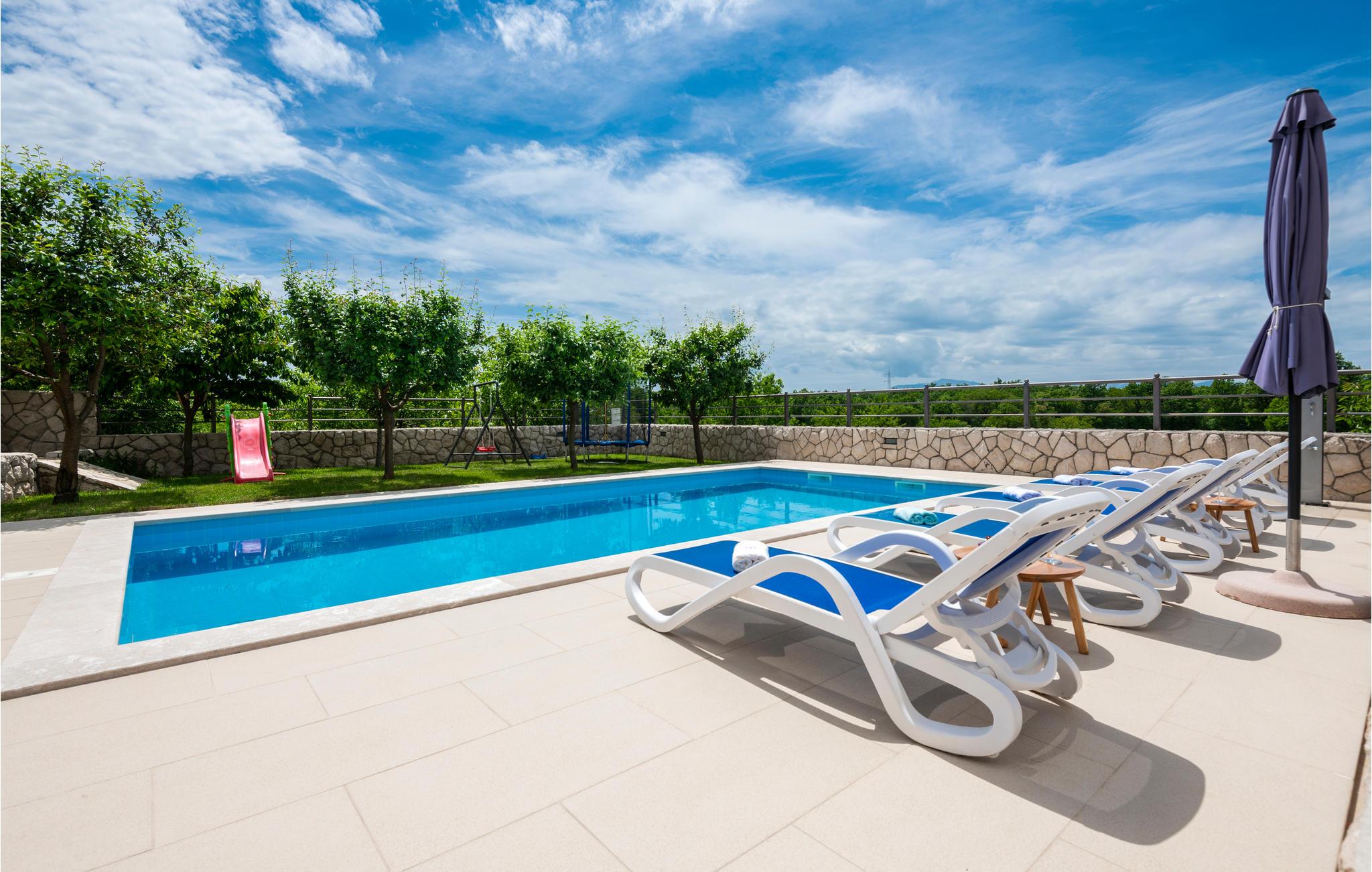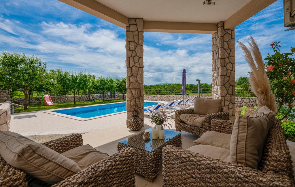 I idylliske omgivelser, i det indre Mellemdalmatien, ligger dette skønne feriehus med pool, hvorfra der er udsigt over markerne, blot få minutters kørsel i bil fra Imotski, og de smukke søer; den røde og den blå sø. I souterrain er der både et fritidsrum og en vinkælder, i stueplan er der køkken, stue og badeværelse. På øverste etage er der fire soveværelser og et badeværelse. Foran huset er der en stor pool, legeplads som børnene kan få timer til at gå på og en overdækket terrasse med grill og sommerkøkken som indbyder til en afslappet stund med en god bog. Det tager kun en halv time at køre til Makarska, Brela og Baška Voda hvor der venter skønne kiesstrande, mange oplevelsesmuligheder og det dejlige Adriaterhav.