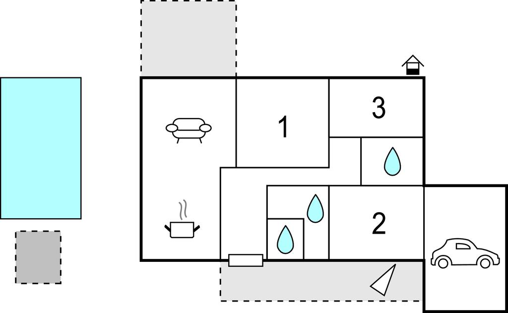 Opholdsstue/køkken - 2 Sovepladser. (Sofa, madras eller lignende).