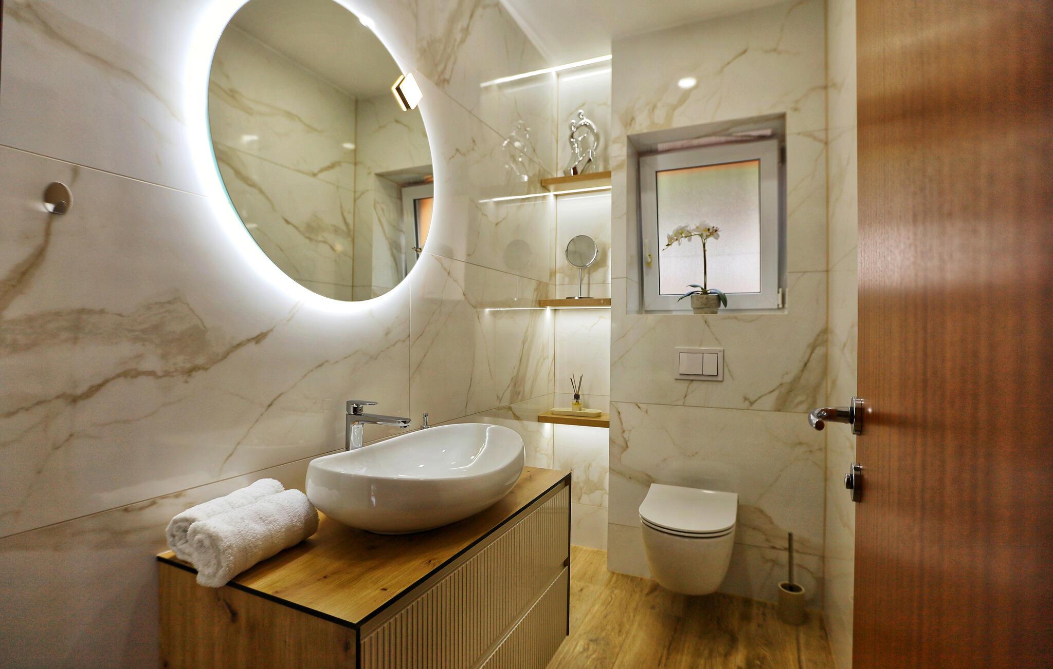 Badeværelse (nr. 1) - WC. Varmt og koldt vand. Bruser