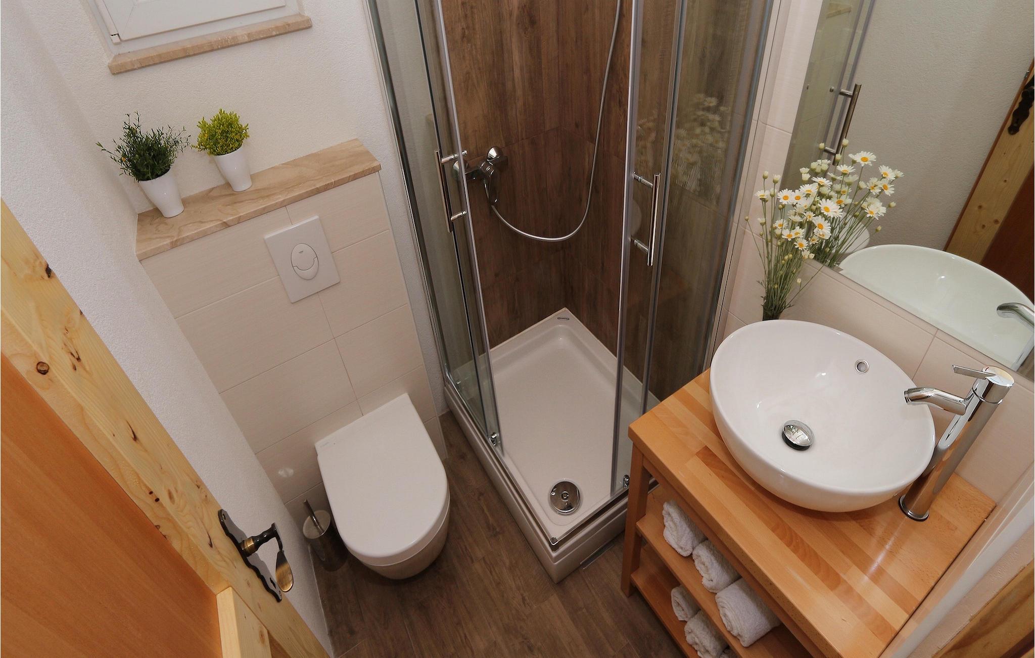 Badezimmer (nr. 2) - WC. Warmes und kaltes Wasser. Dusche