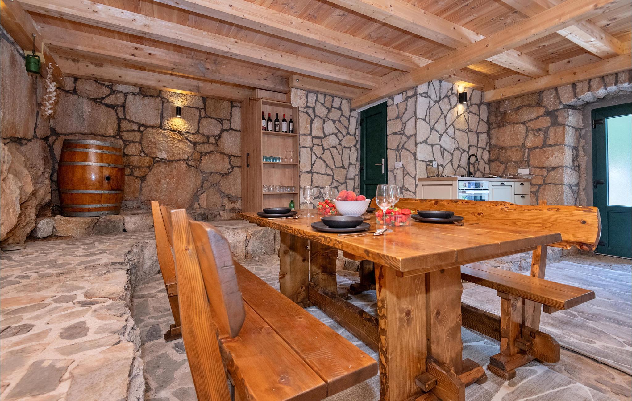 Huset er hyggeligt og rustikt, så her får I en fin og hjemlig ramme om jeres dage i Kroatien. Charmen fra det traditionelle stenhus er bevaret, men samtidig kan I se frem til moderne faciliteter. Lad jer fortrylle af fritlagte bjælker og de rå murstensvægge, som også kan ses i brusenichen. Nyd den charmerende atmosfære, når I er samlet om det lange spisebord, se en film sammen i den bløde sofa under de massive trælofter, mens flammerne knitrer i brændeovnen.
