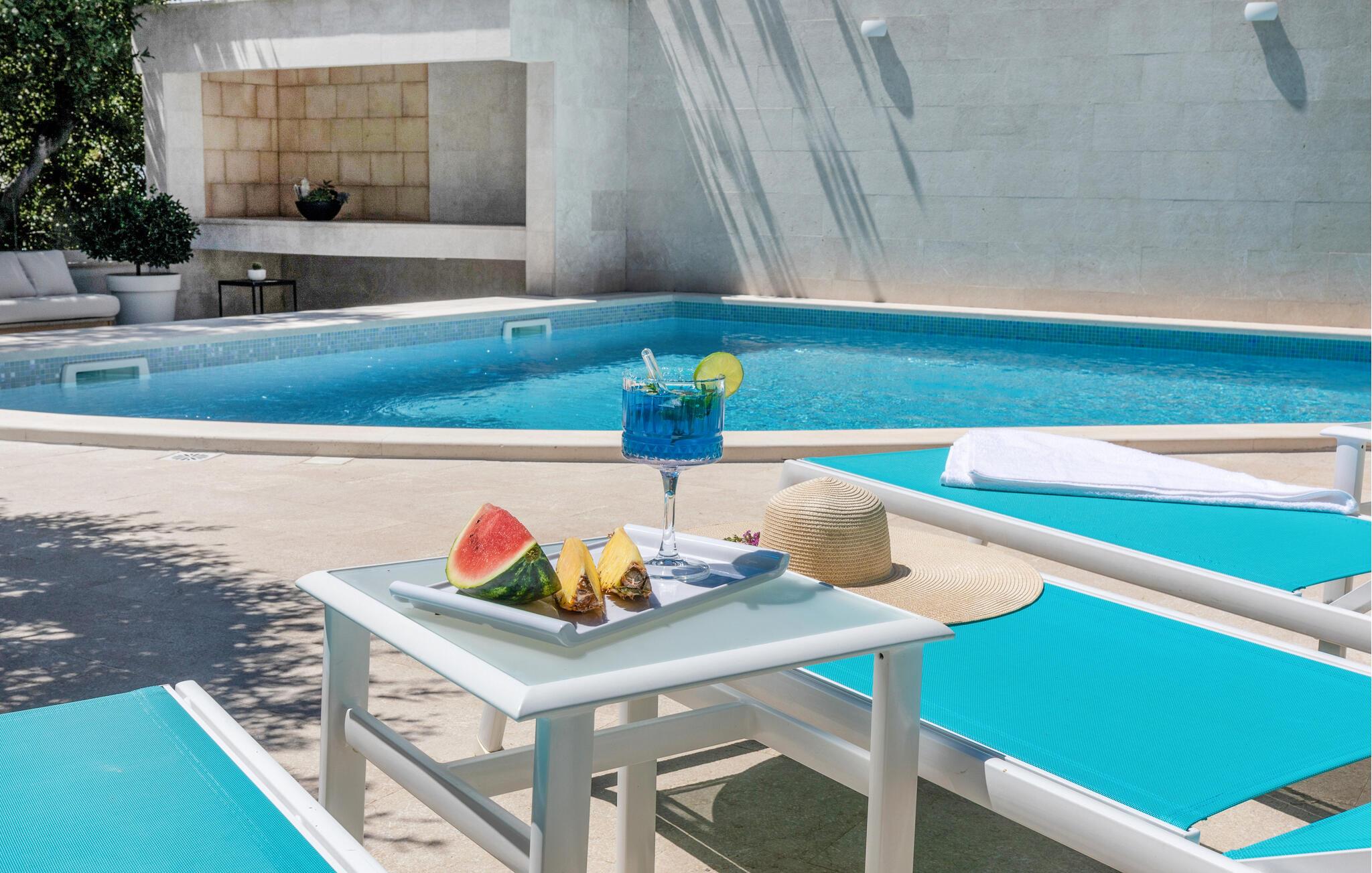 Tilbring jeres næste ferie i dette feriehus nær den smukke dalmatiske kyst. jeres elegante feriehus i Vrgorac, ikke langt fra den maleriske by Makarska, tilbyder jer et afslappende ophold. Nyd solrige dage ved den private pool, omgivet af middelhavsplanter og en charmerende terrasse udstyret med komfortable liggestole. Slap af i det skyggefulde loungeområde, ideelt til en kølig forfriskende drink på varme sommerdage. Husets smagfuldt indrettede interiør tilbyder jer en blanding af klassisk stil og moderne komfort. Slap af på de komfortable polstrede møbler i den stilfulde stue og nyd en film eller gennemse en af bøgerne fra den dekorative hylde. Spisekøkkenet giver jer mulighed for at tilberede lækre måltider, som I kan nyde der eller på den udendørs terrasse. Udnyt nærheden til den smukke Makarska Riviera, som ligger kun en kort køretur væk. Udforsk den populære Makarska-strand eller besøg den maleriske gamle bydel med dens charmerende caféer og restauranter. Naturelskere kan tage en tur til Biokovo Nature Park, hvor I kan nyde en betagende udsigt over Adriaterhavet og det omkringliggende landskab.