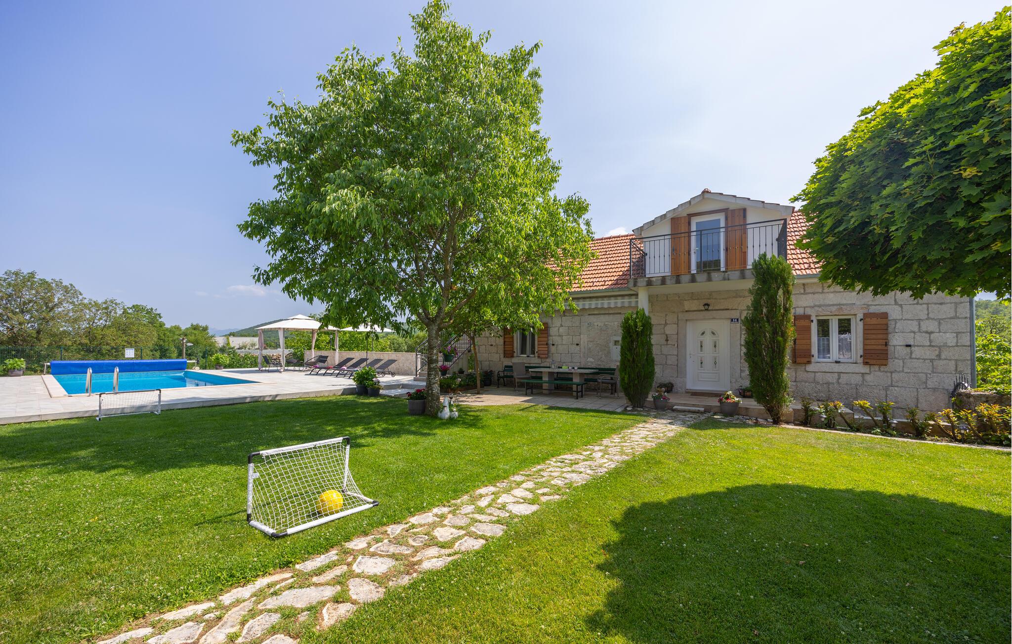 Nyd den fantastiske udsigt i det komfortable feriehus med pool.