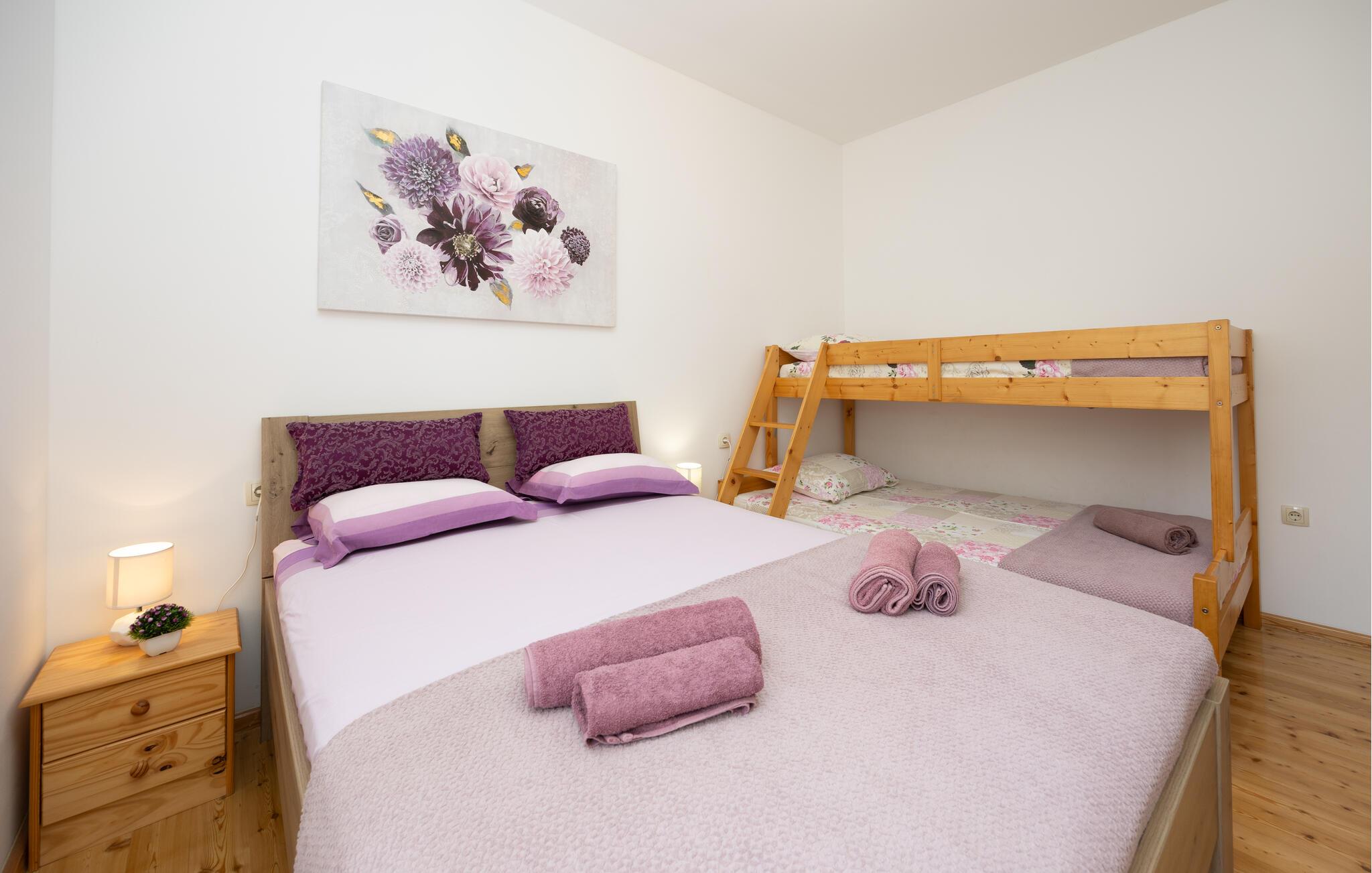 Soveværelse 20m2 (nr. 1) - 2 Sovepladser. (Dobbeltseng(e)). 2 Sovepladser. (Etageseng(e)).