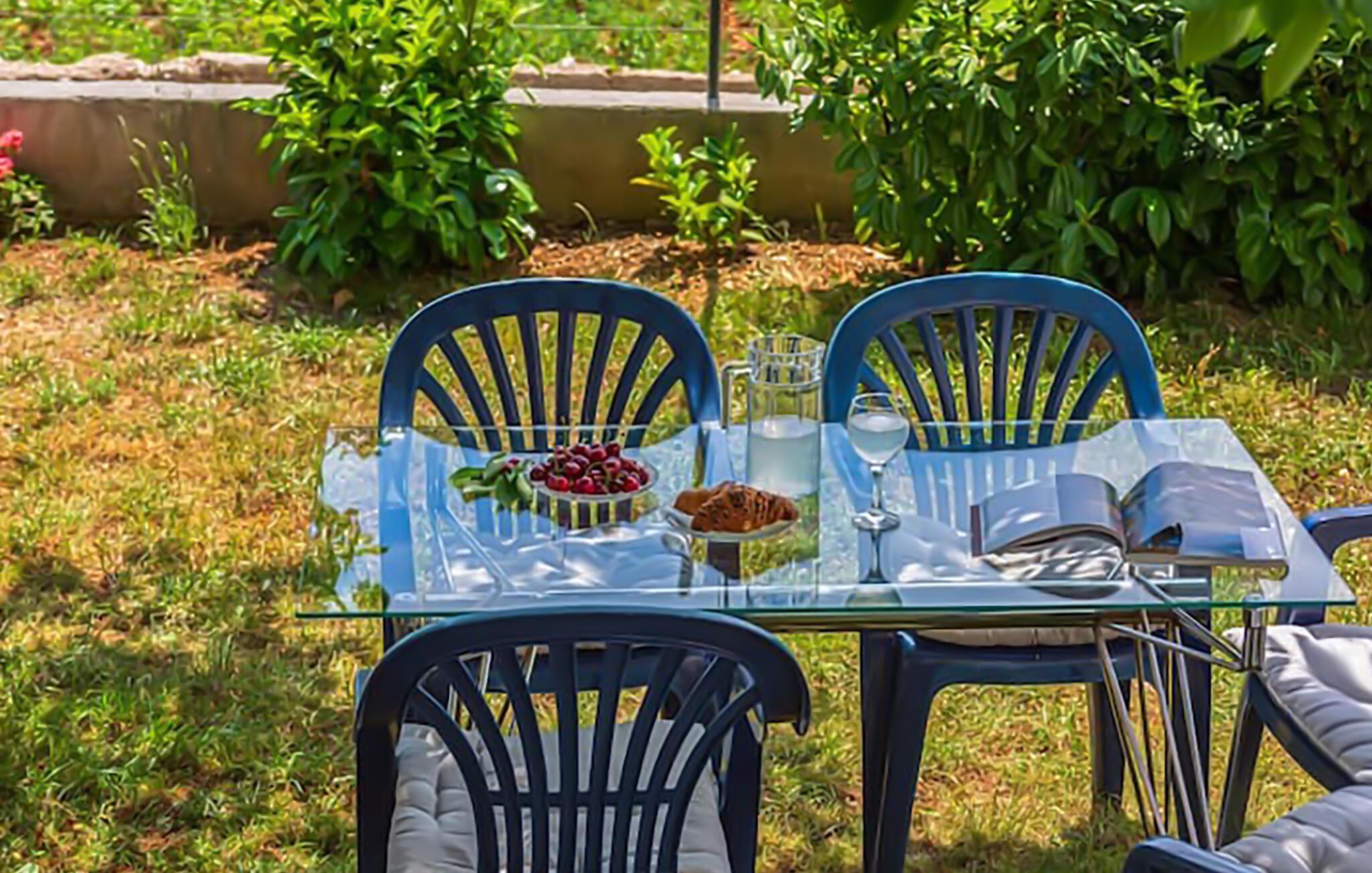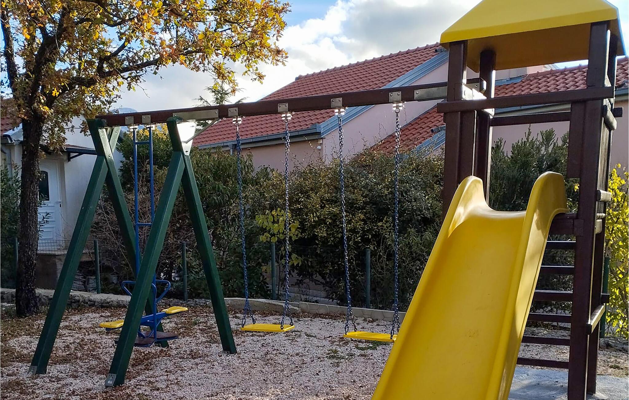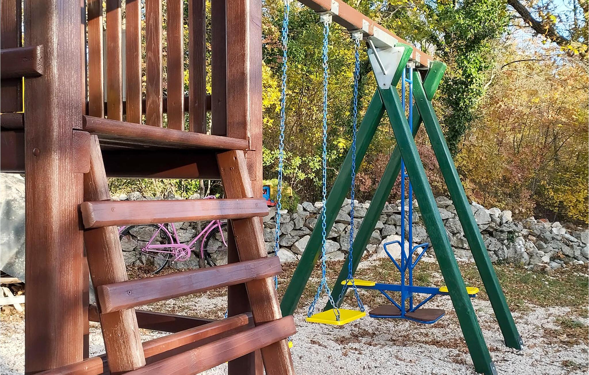 Den lukkede have tilbyder en række legemuligheder for børnene. Mens de får lov til at slappe af på trampolinen, rutsjebanen, badmintonen eller volleyballnettet, kan I slappe af i spabadet eller fordybe jer i jeres ferielæsning i træernes skygge.