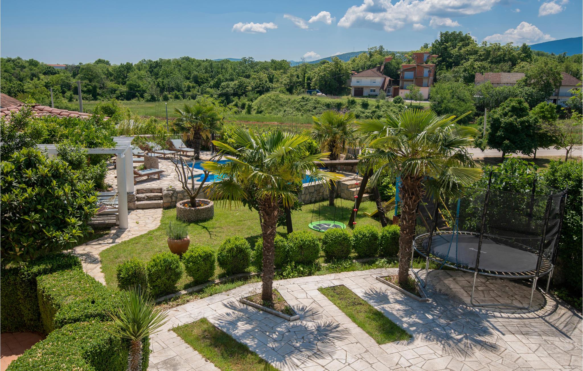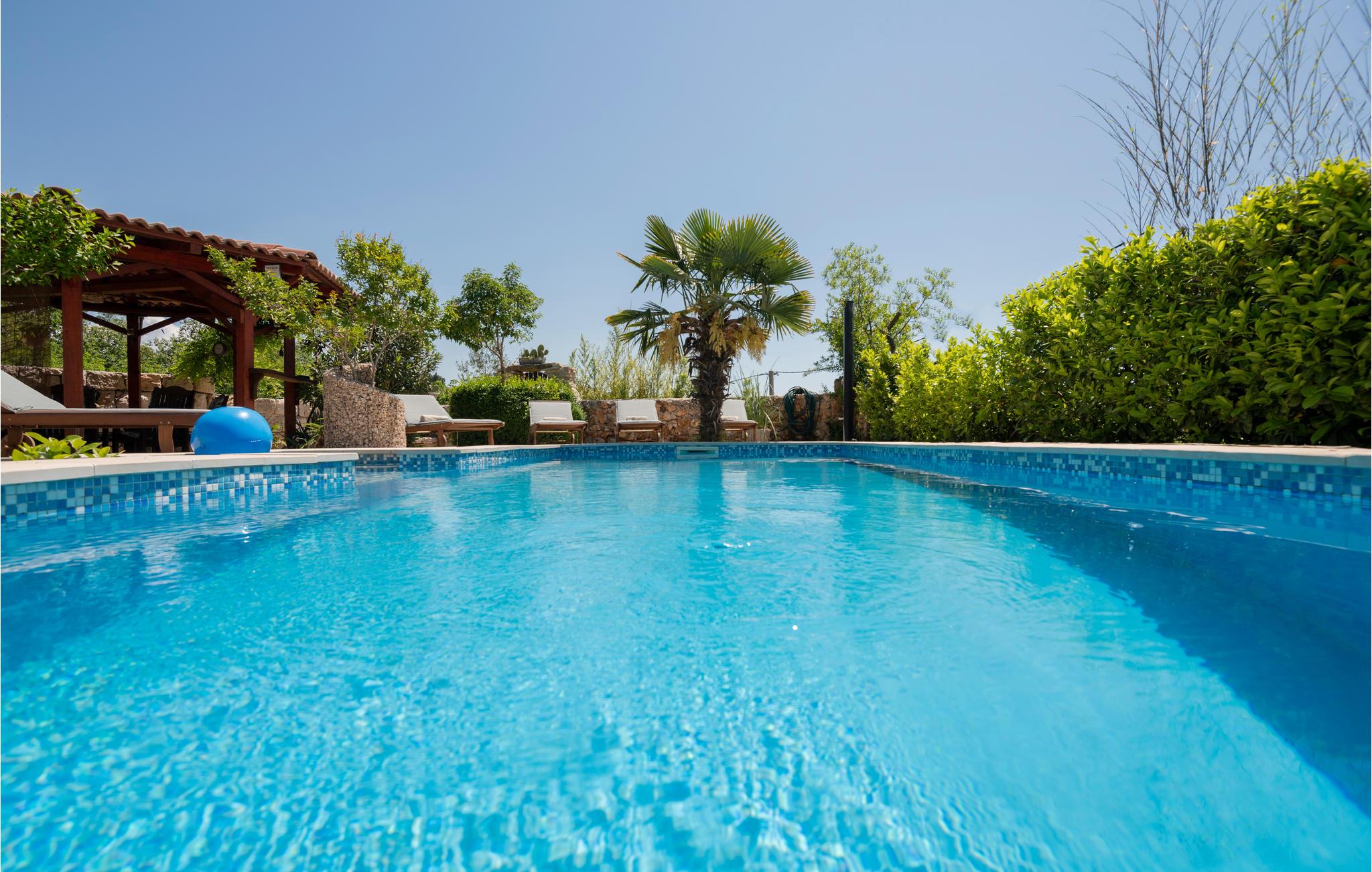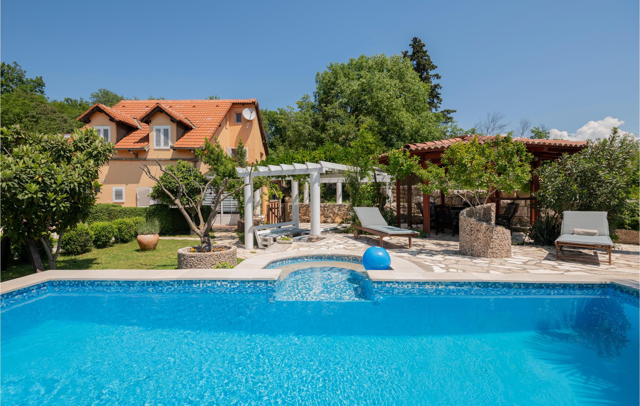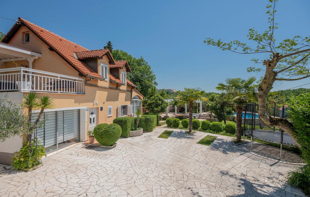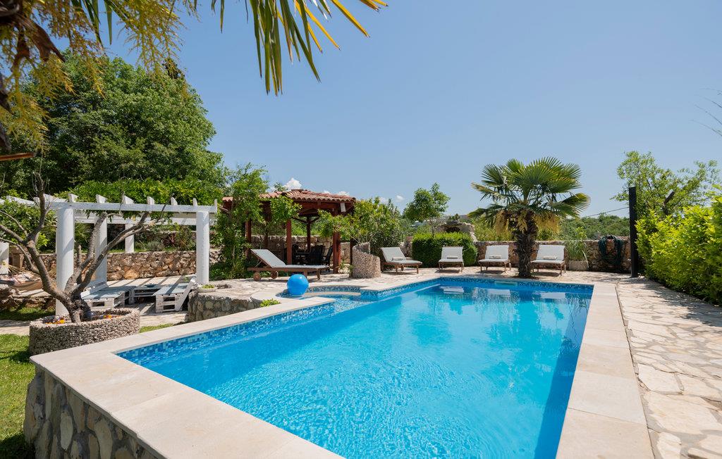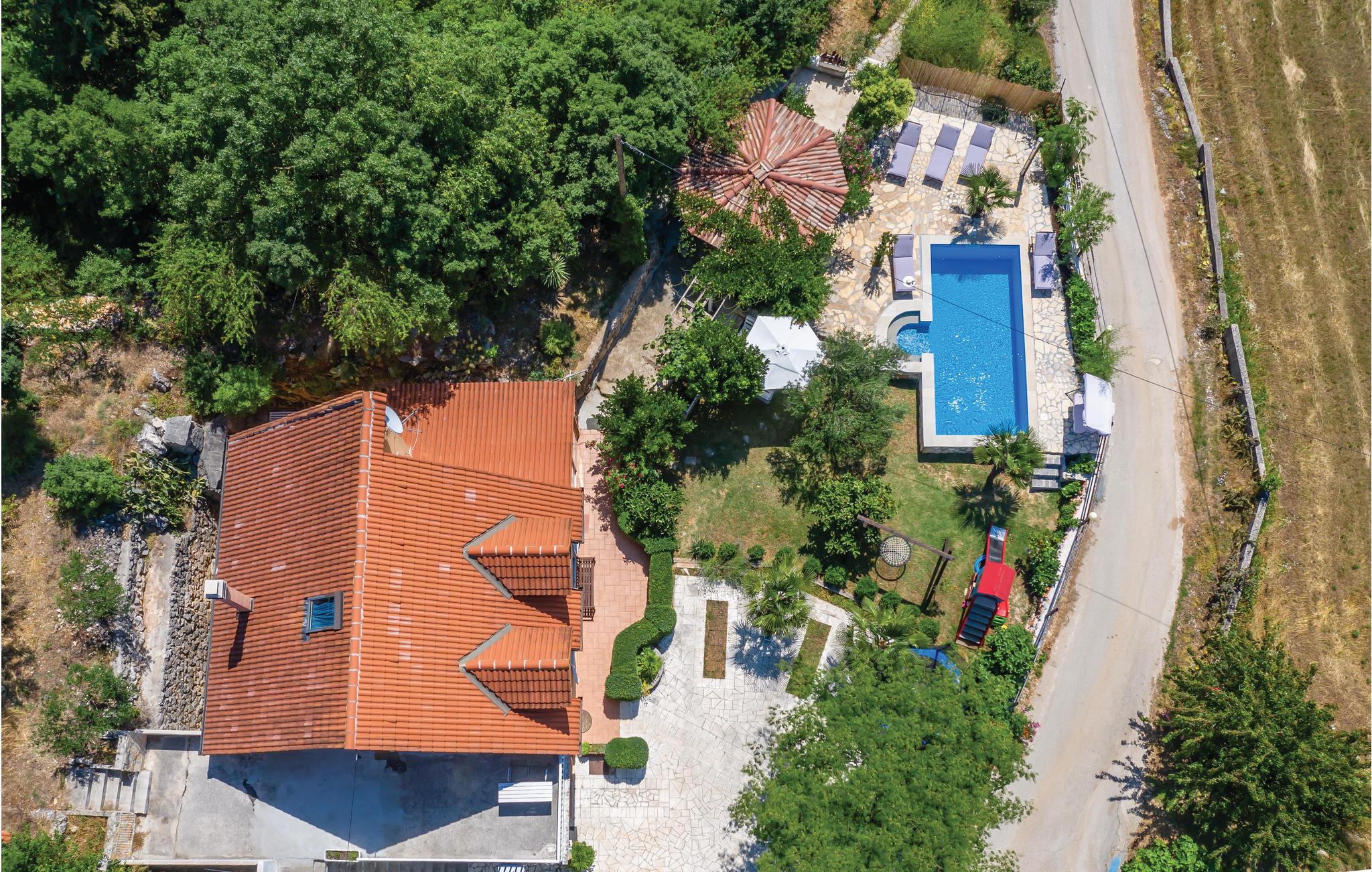 Dette skønt indrettede feriehus ligger i Zmijavci, ikke langt fra byen Imotski. I husets stueplan er der et soveværelse, en stue, to badeværelse og et køkken der er åben mod stuen (der også er aktivitetsrum), mens de tre soveværelser og et badeværelse ligger på første sal. Under taget ligger husets sidste soveværelse med charmerende skrå vægge og en lavest loftshøjde på 80 cm i kanten. Terrassen med grillen indbyder til hyggelige udendørs timer sammen. Husets private pool ligger op til svømmeture og vandsjov lige når I har lyst. Vil I bade i havet så tag til Makarska Riviera 25 km væk.