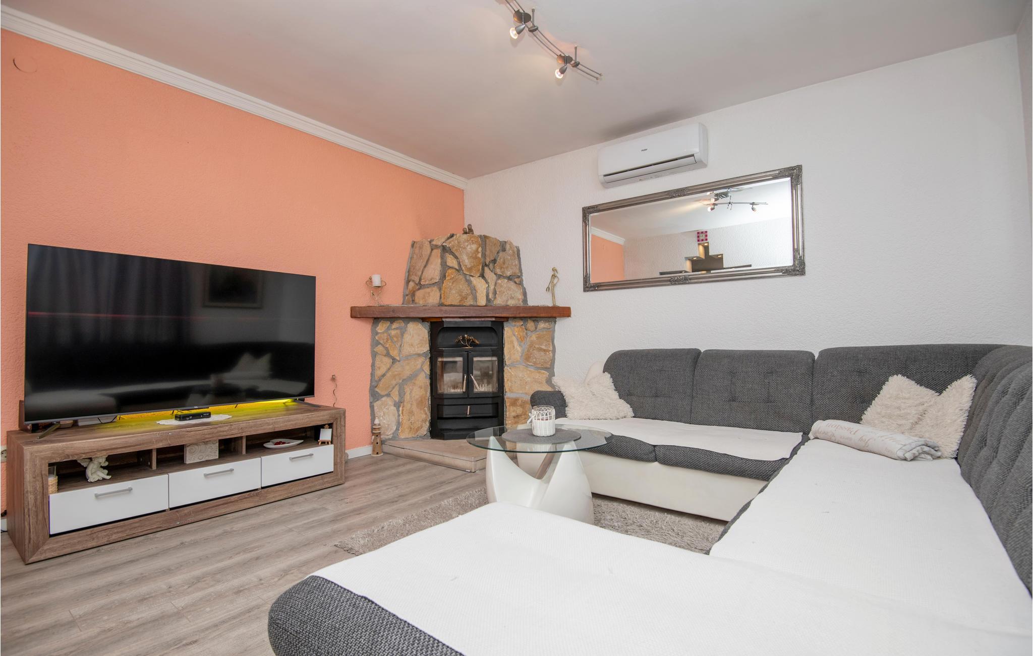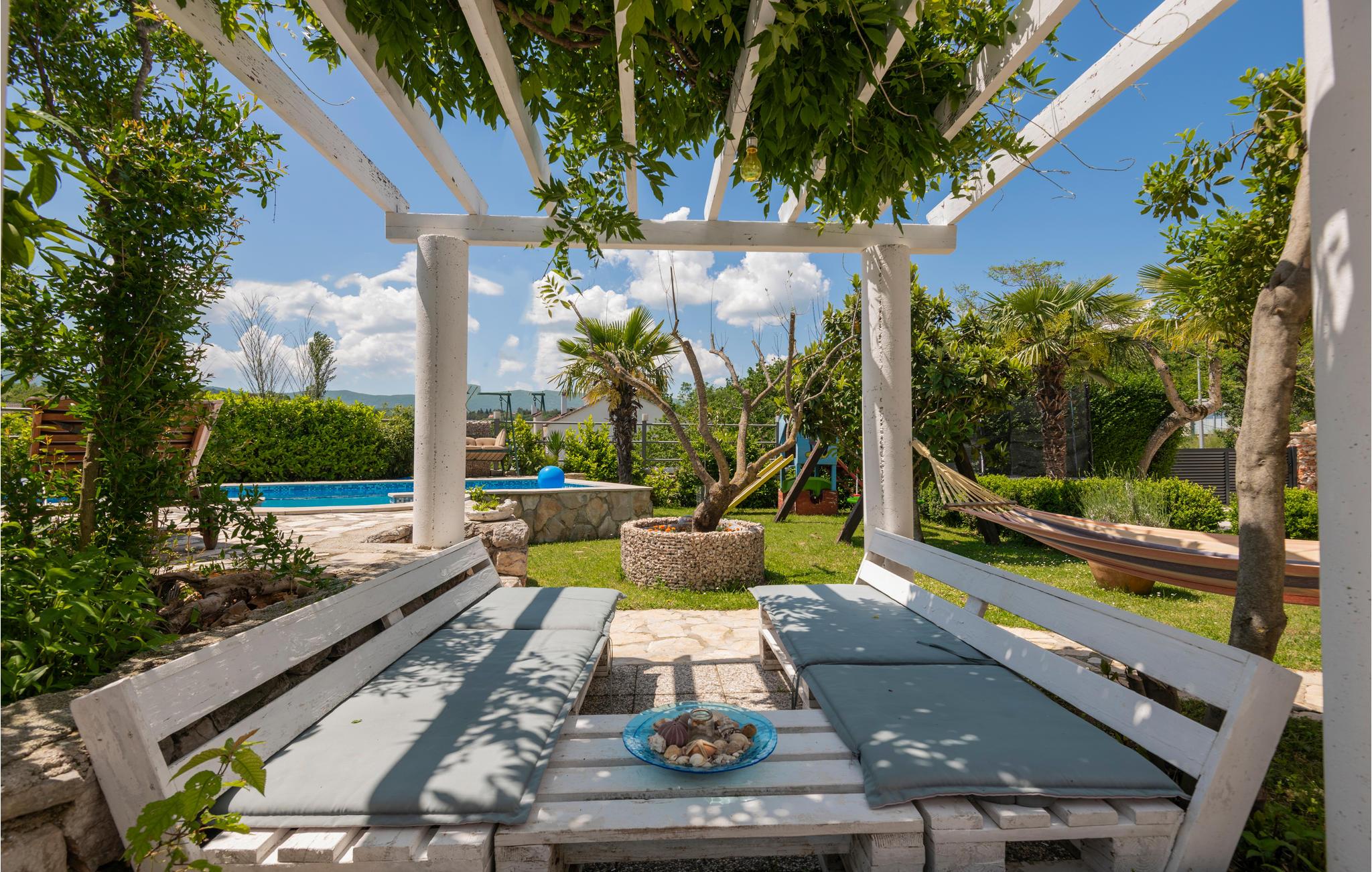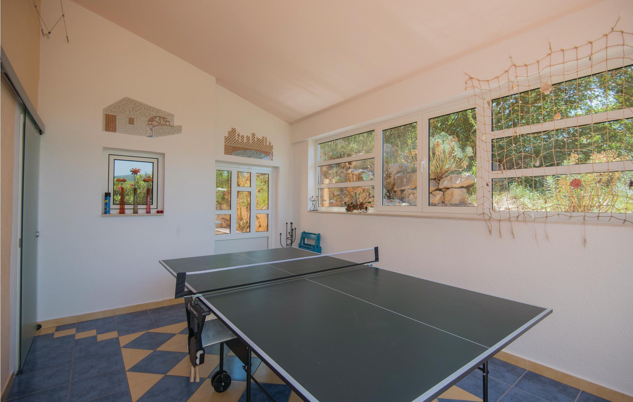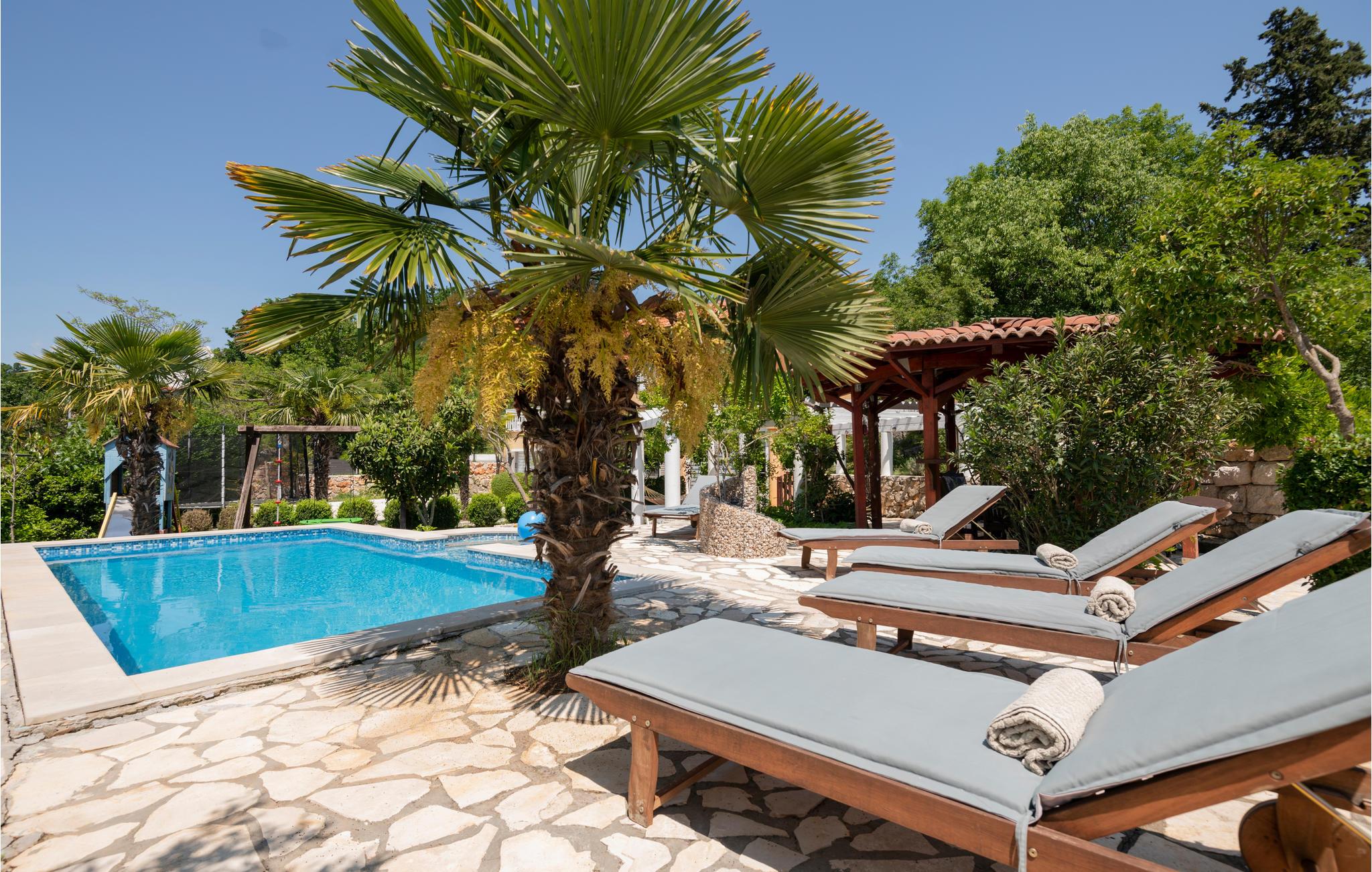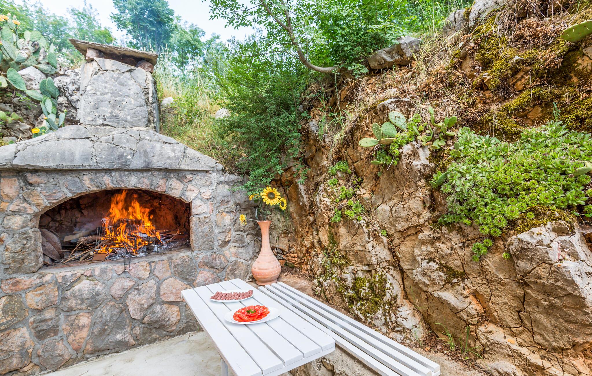 Dette skønt indrettede feriehus ligger i Zmijavci, ikke langt fra byen Imotski. I husets stueplan er der et soveværelse, en stue, to badeværelse og et køkken der er åben mod stuen (der også er aktivitetsrum), mens de tre soveværelser og et badeværelse ligger på første sal. Under taget ligger husets sidste soveværelse med charmerende skrå vægge og en lavest loftshøjde på 80 cm i kanten. Terrassen med grillen indbyder til hyggelige udendørs timer sammen. Husets private pool ligger op til svømmeture og vandsjov lige når I har lyst. Vil I bade i havet så tag til Makarska Riviera 25 km væk.