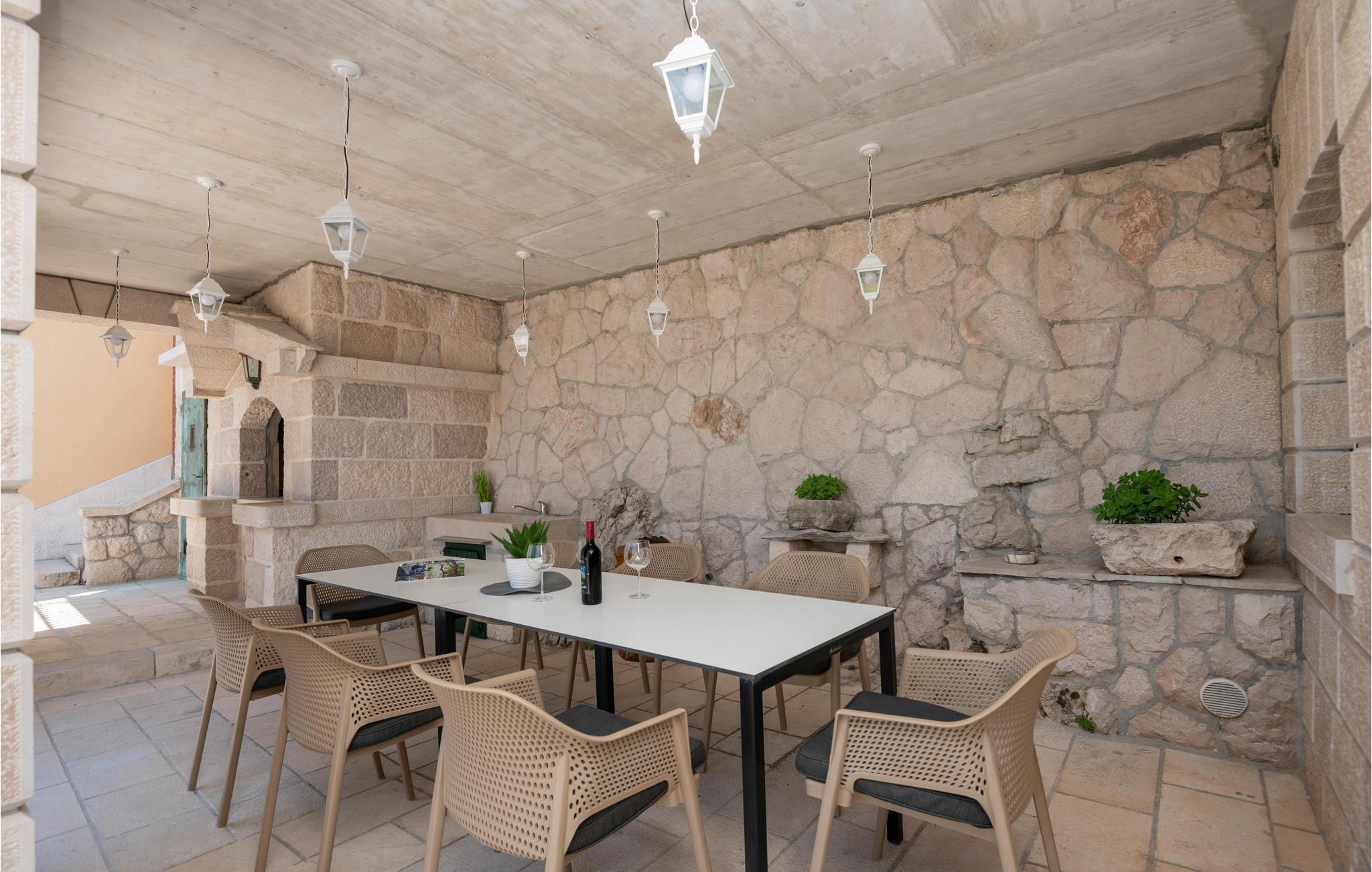 Tilbring jeres ferie på landet i dette traditionelle stenhus med pool. Stueetagen med tavernen har en separat indgang og er forbundet med første og anden sal med udvendige trapper. Fra første til anden sal er der også indvendige trapper. Slap af på terrassen med pool foran anden sal, hvor der også er fritidsrummet. Ved siden af huset er terrassen med grill og udsigt til vinbjerge. Foran huset ligger der en vej og overfor en parkeringsplads. Der er ca. 7 km til Imotski og det tager ca. 20 minutter med bilen at køre til de herlige kiesstrande i Makarska.
