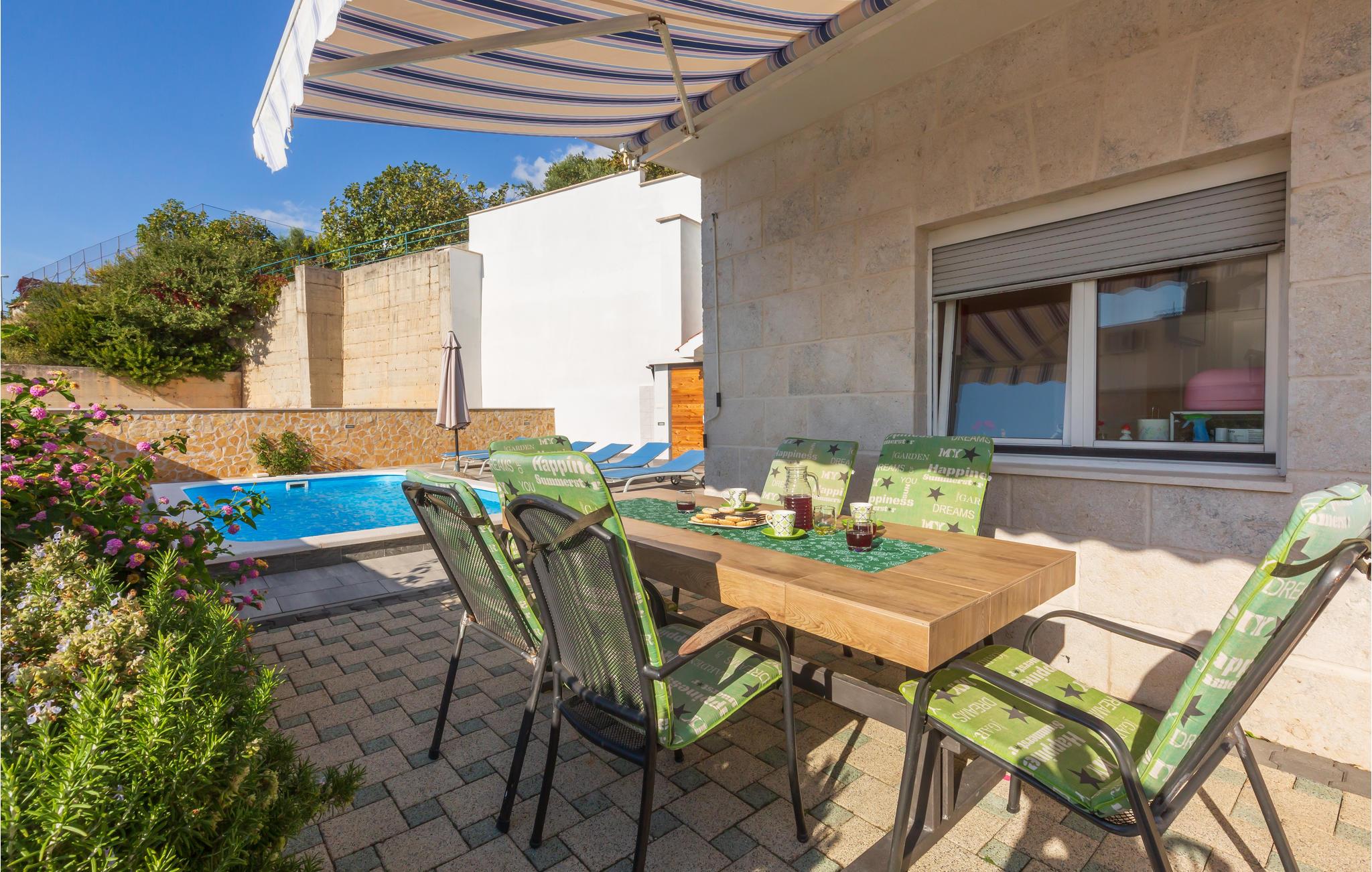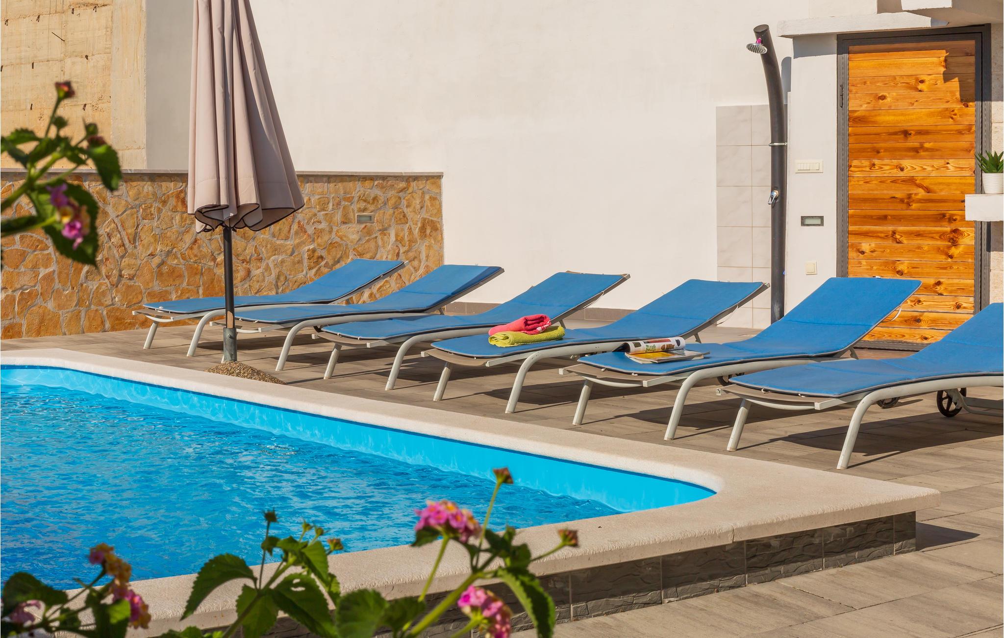I en forstad til Makarska ligger dette feriehus med pool, hvor I kan holde en skøn ferie. Huset er enkelt og smagfuldt indrettet, perfekt til en vellykket ferie. Husets indre strækker sig over to etager, på første sal ligger soveværelserne med udgang til terrassen. Herfra er der en fantastisk udsigt over havet, hvor I sikkert vil tilbringe de fleste af døgnets vågne timer. Hop i poolen lige hvornår I vil og lav lækker mad på den udendørs grill – maden smager allerbedst når den nydes i det fri. Det er hurtigt og nemt at komme til de nærliggende kiesstrande på få minutter, til en tur i det krystalklare og lune Adriaterhav. Besøg også den skønne by Makarska, hvor der er utallige former for underholdning om sommeren for hele familien.