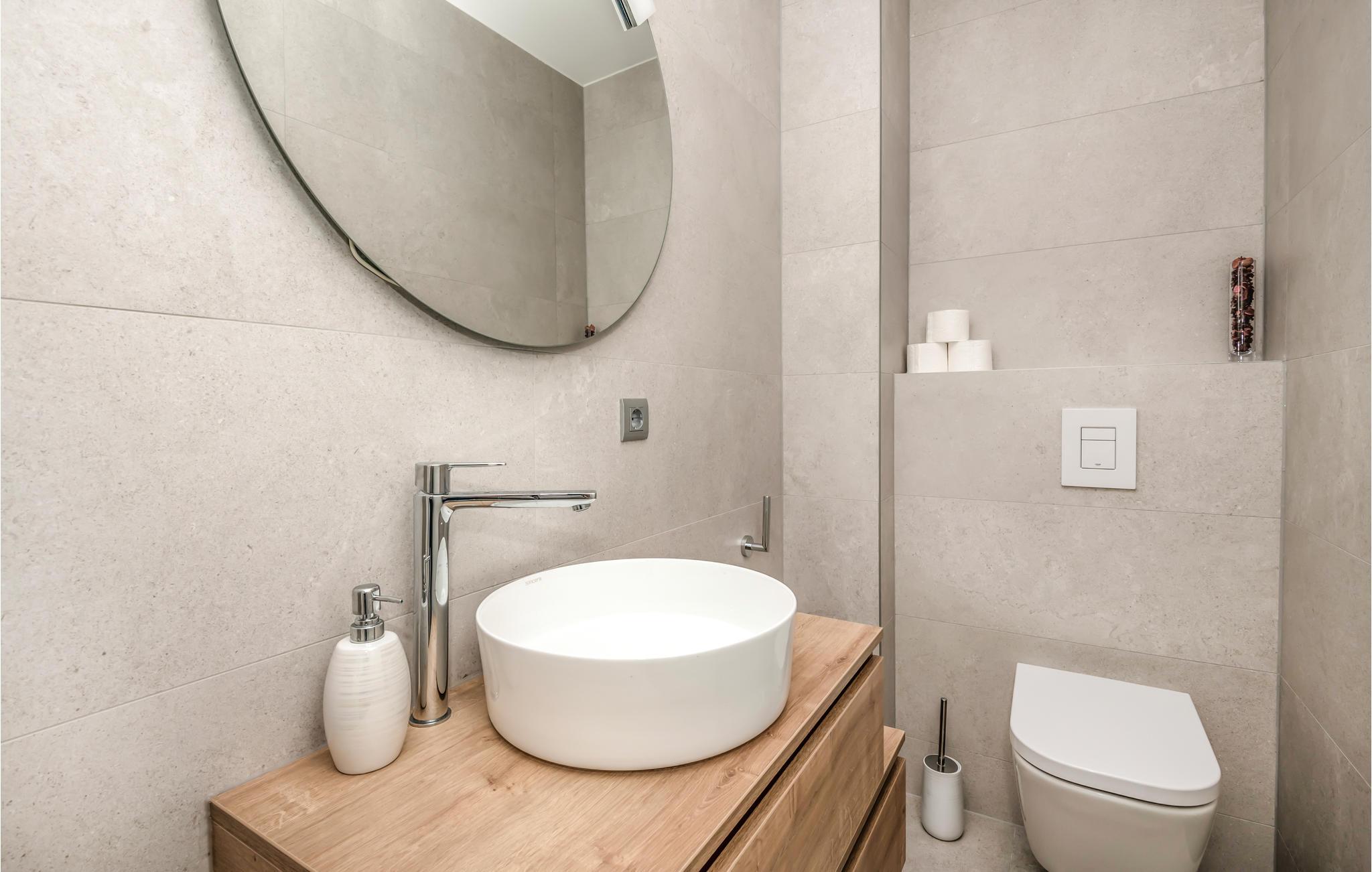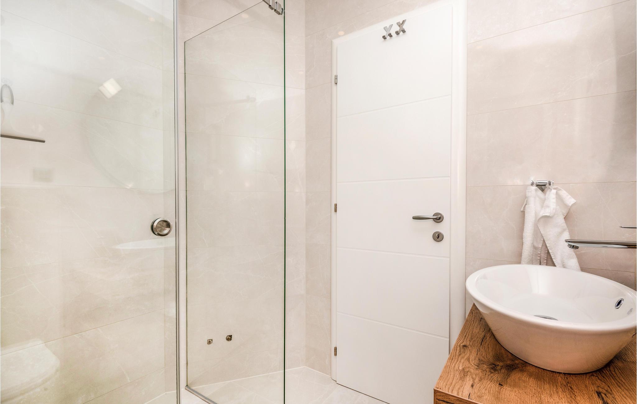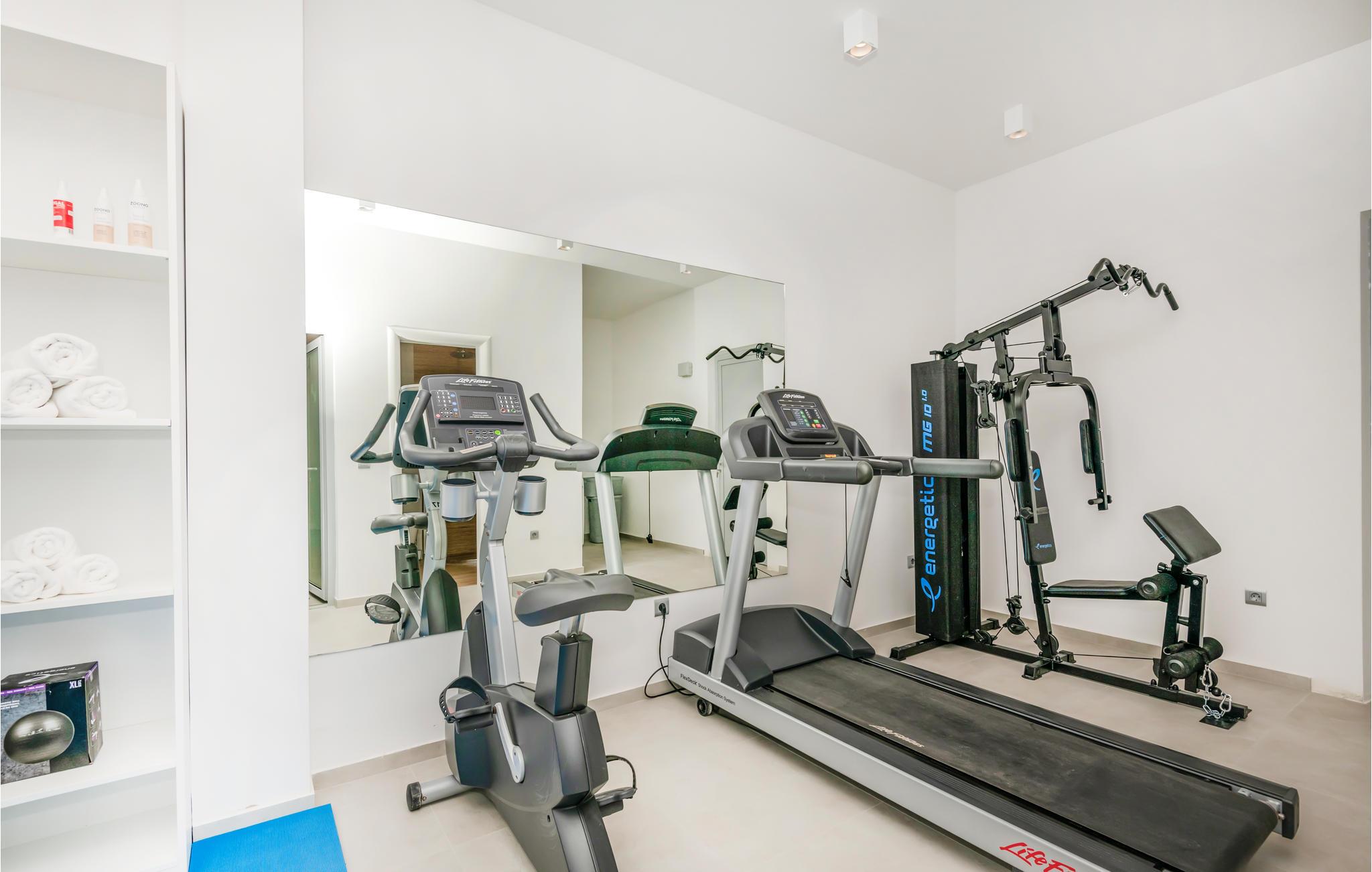 Dette dejlige og veludstyrede feriehus med pool blev bygget i 2021 og ligger i Makarska. Huset har aircondition og er i tre etager. I stueetagen er der fitnesscenter og underholdningsrum med billard, bordfodbold og dart. På 1. sal er der stue, køkken og spisestue. På anden sal er der 3 soveværelser med badeværelser. Alle etager er forbundne med trappe.