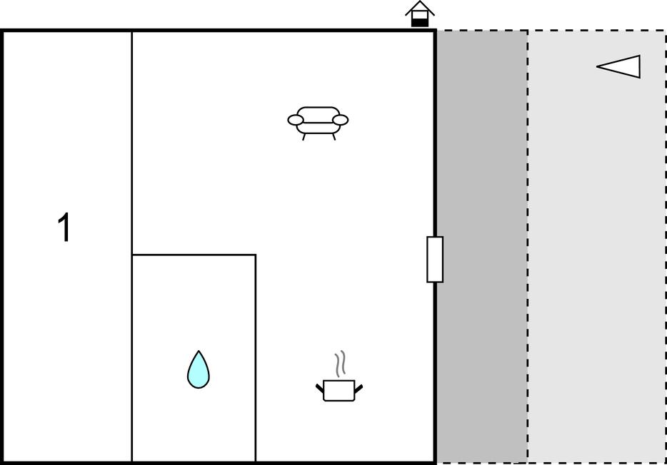 Opholdsstue/køkken 20m2 - 2 Sovepladser. (Sofa, madras eller lignende).