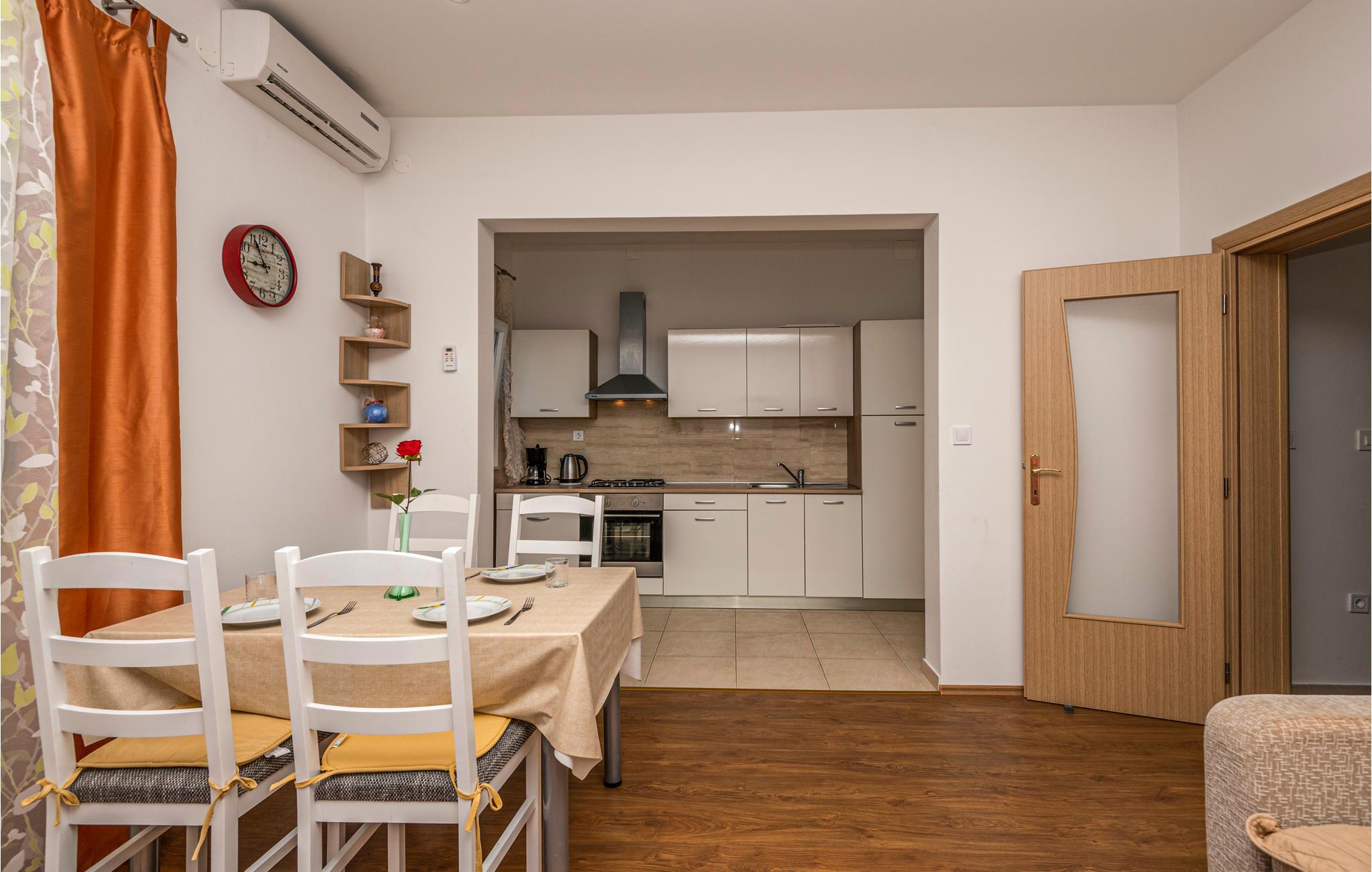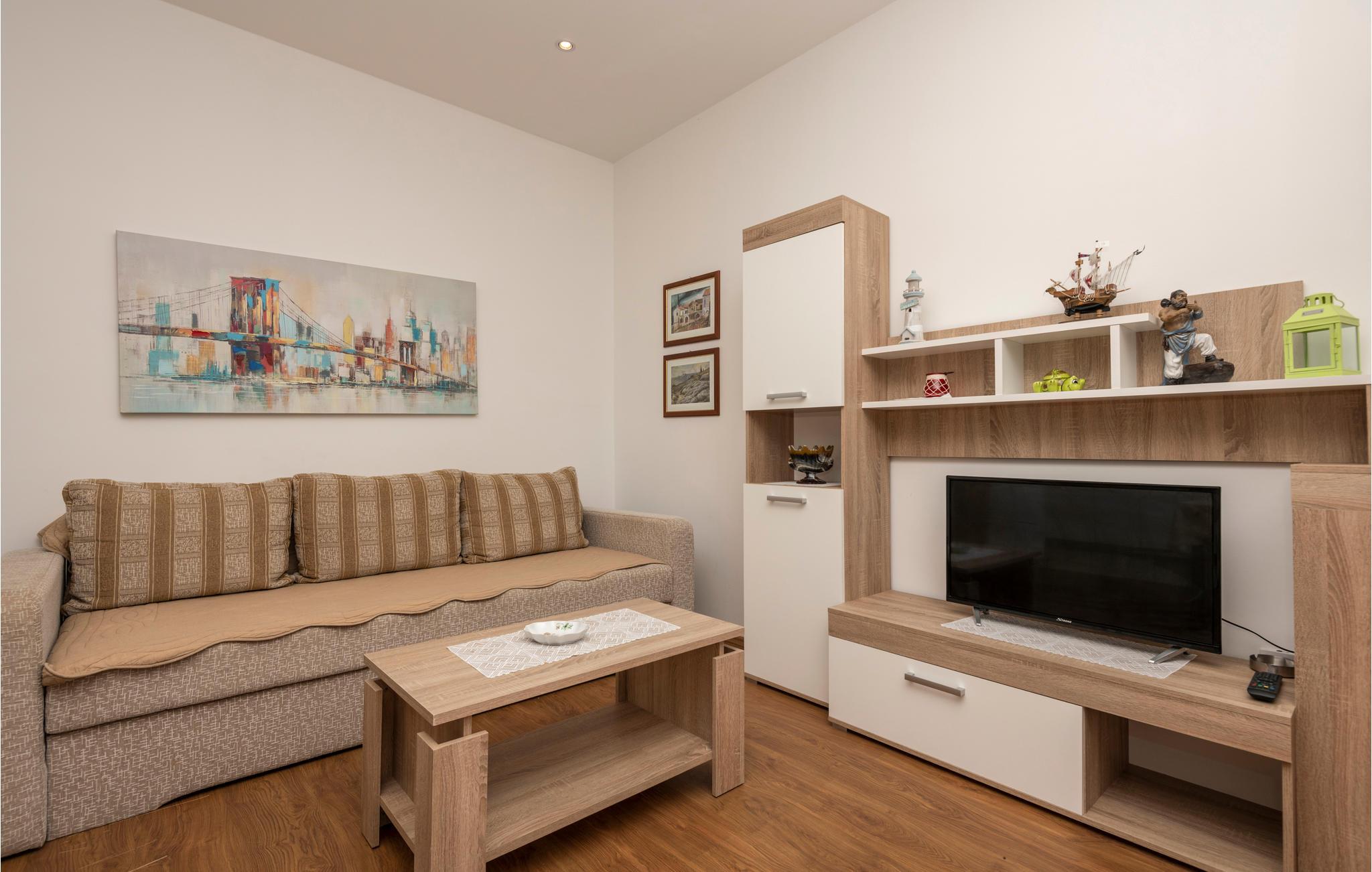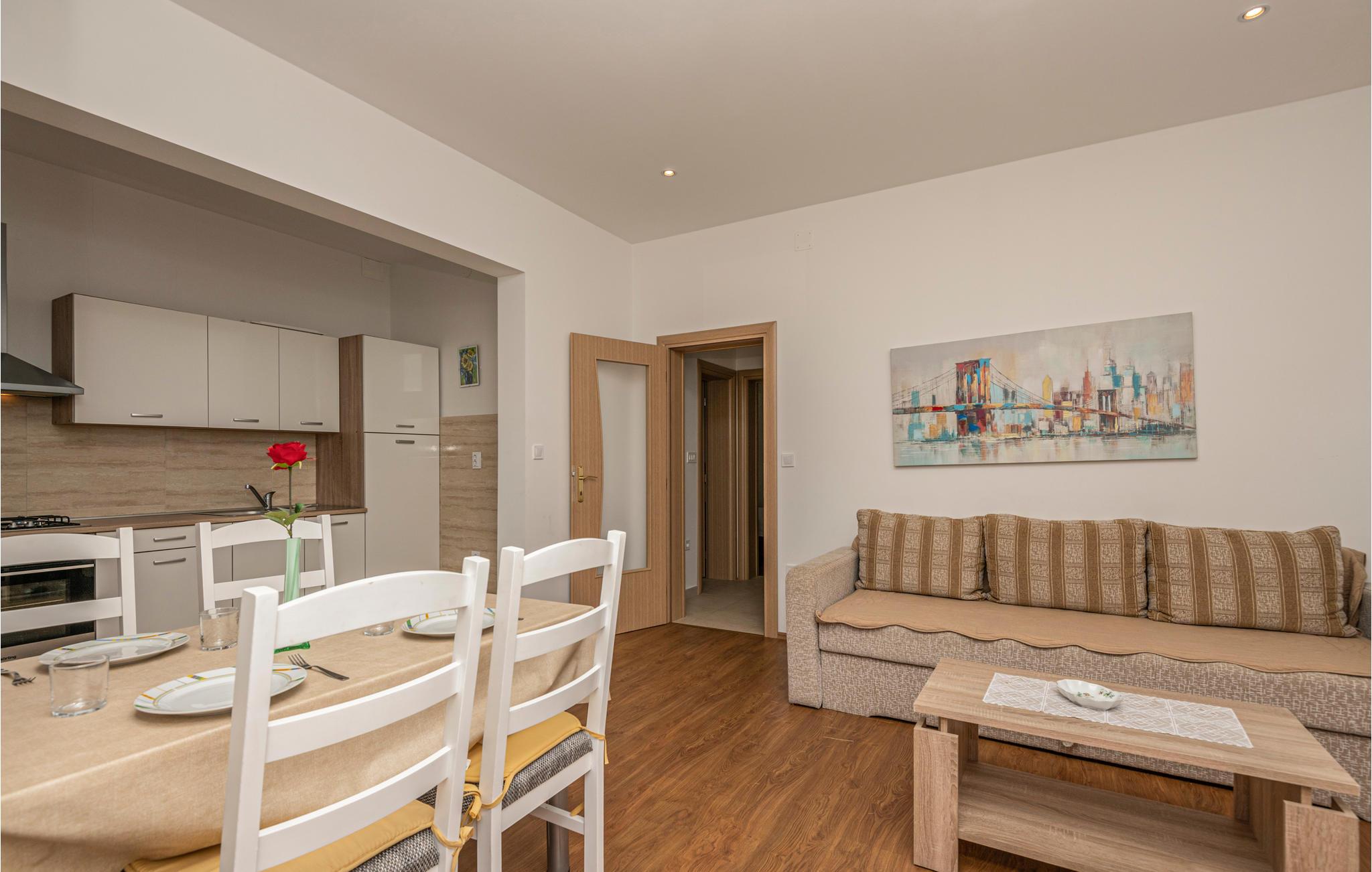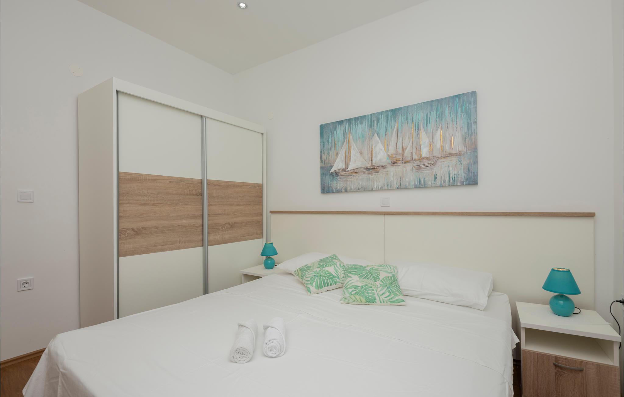 Denne pænt møblerede ferielejlighed ligger i et privat hus i den populære og attraktive turistby Makarska.