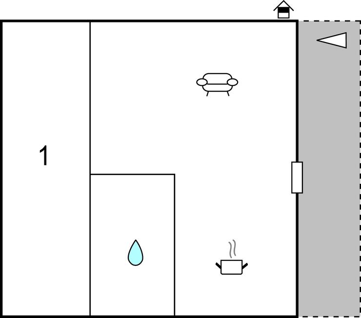 Opholdsstue/køkken 20m2 - 2 Sovepladser. (Sofa, madras eller lignende).