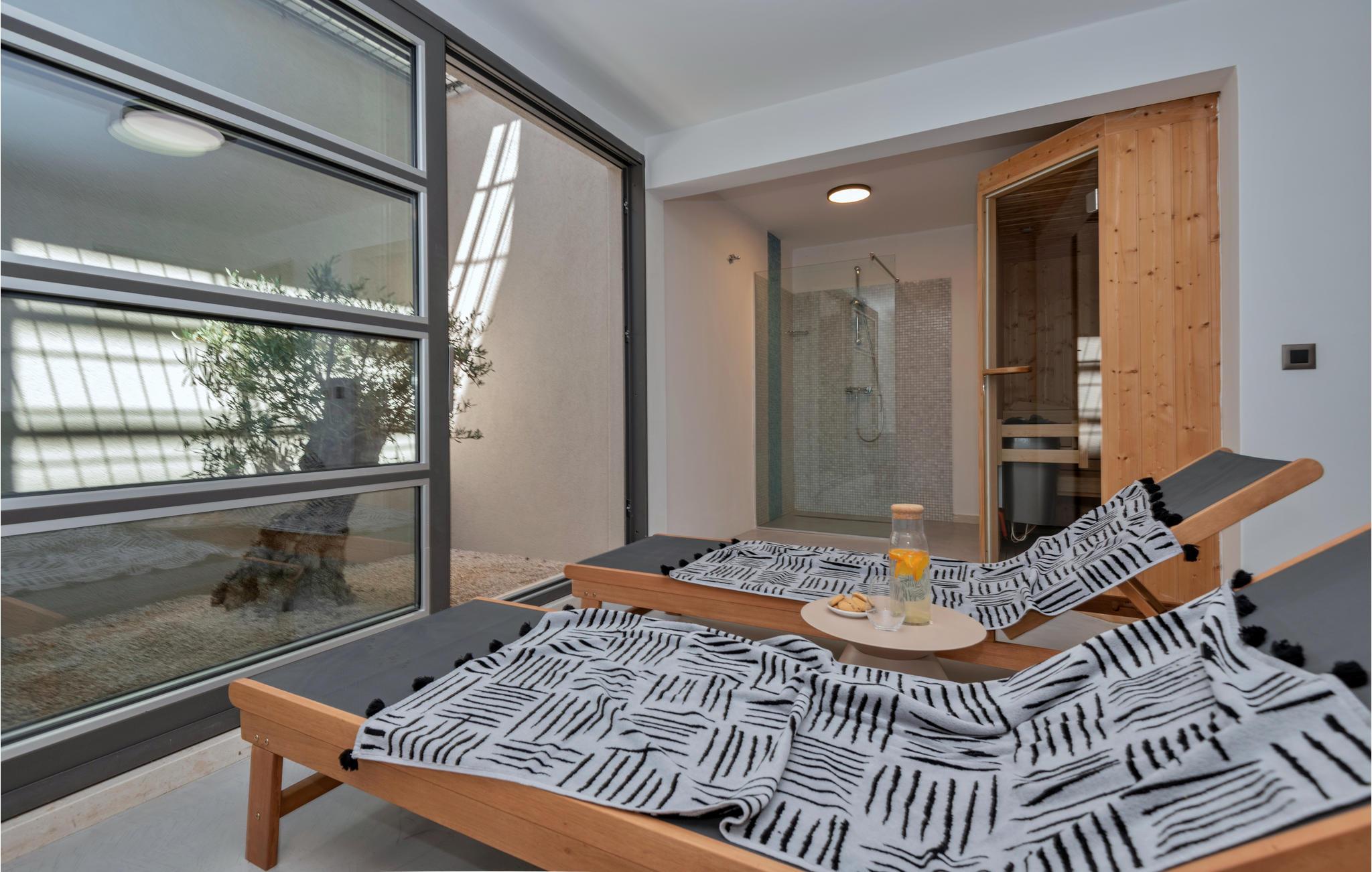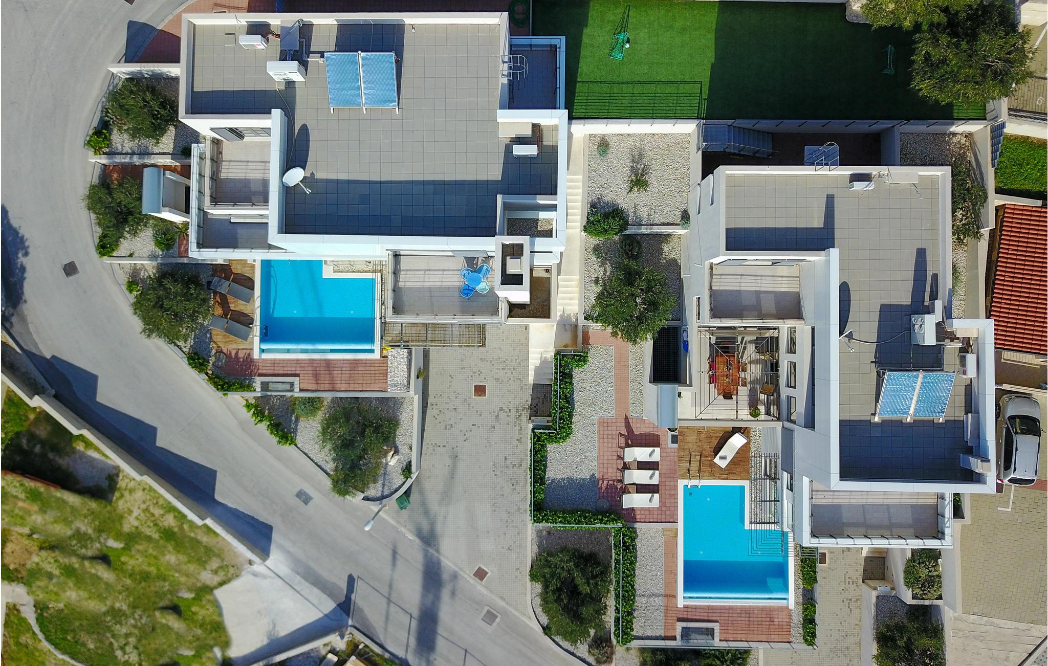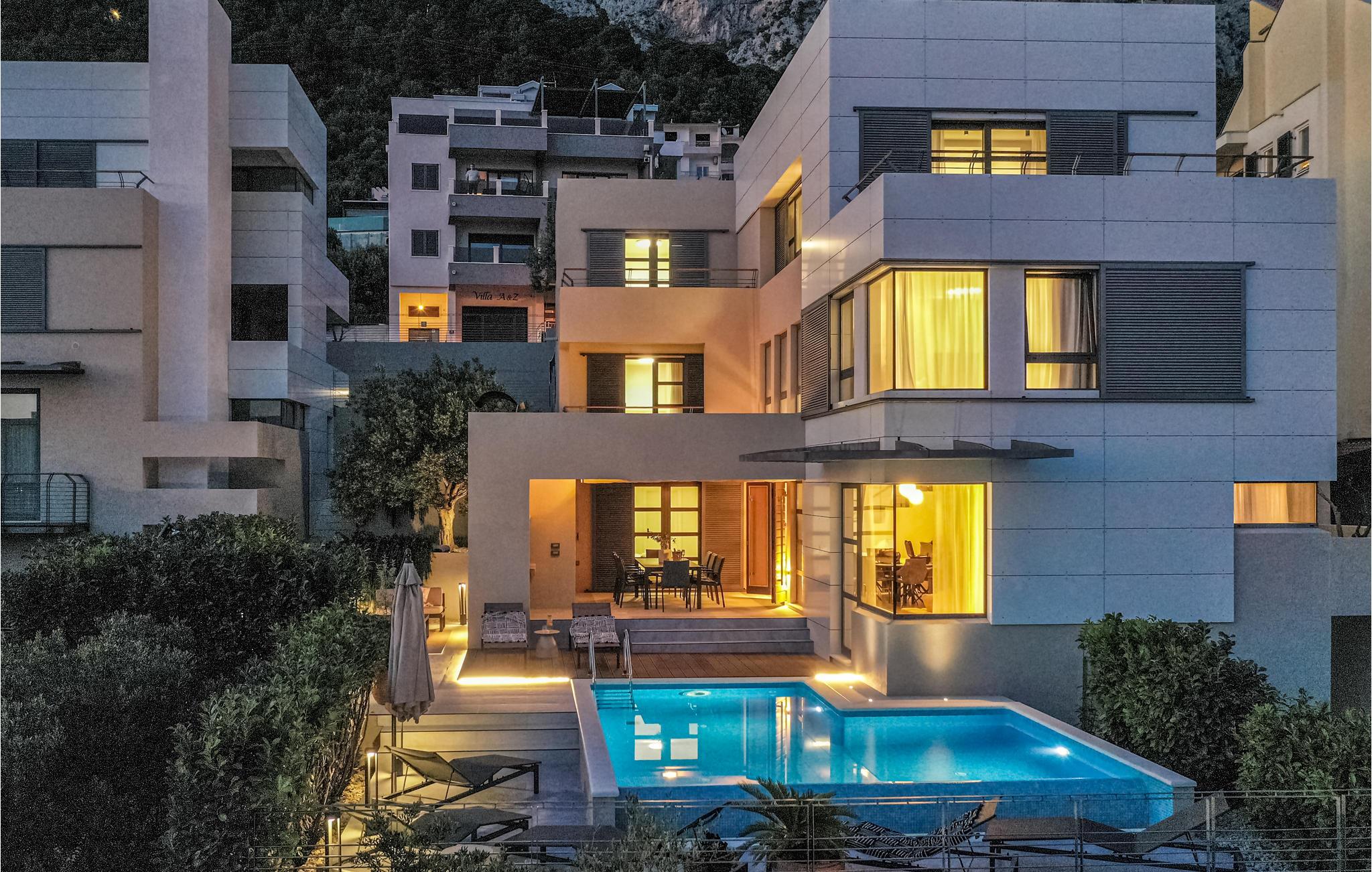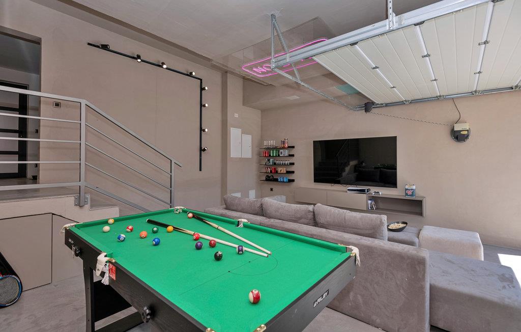 Dette enorme feriehus er det ideelle sted at tilbringe en førsteklasses ferie. Vågn op til strålende solskin og panoramaudsigt over det glitrende Adriaterhav. Spis morgenmad på en af de mange terrasser eller altaner og læg planer for dagen. Her er det næsten kun fantasien, der sætter grænser for, hvordan feriedagene kan tilbringes. Måske er det den private pool, der trækker, eller stranden med det glitrende badevand, en gåtur fra huset? Eller hvad med et spil billiard, bordtennis eller bordfodbold? Til børnenes underholdning er der talrige aktiviteter tilgængelige, herunder gynge, trampolin, rutchebane og vippe. Føler I jer sporty, kan I tage en tur på løbebåndet eller samle familien/vennerne til et spil badminton eller en fodboldkamp, efterfulgt af en tur i saunaen.