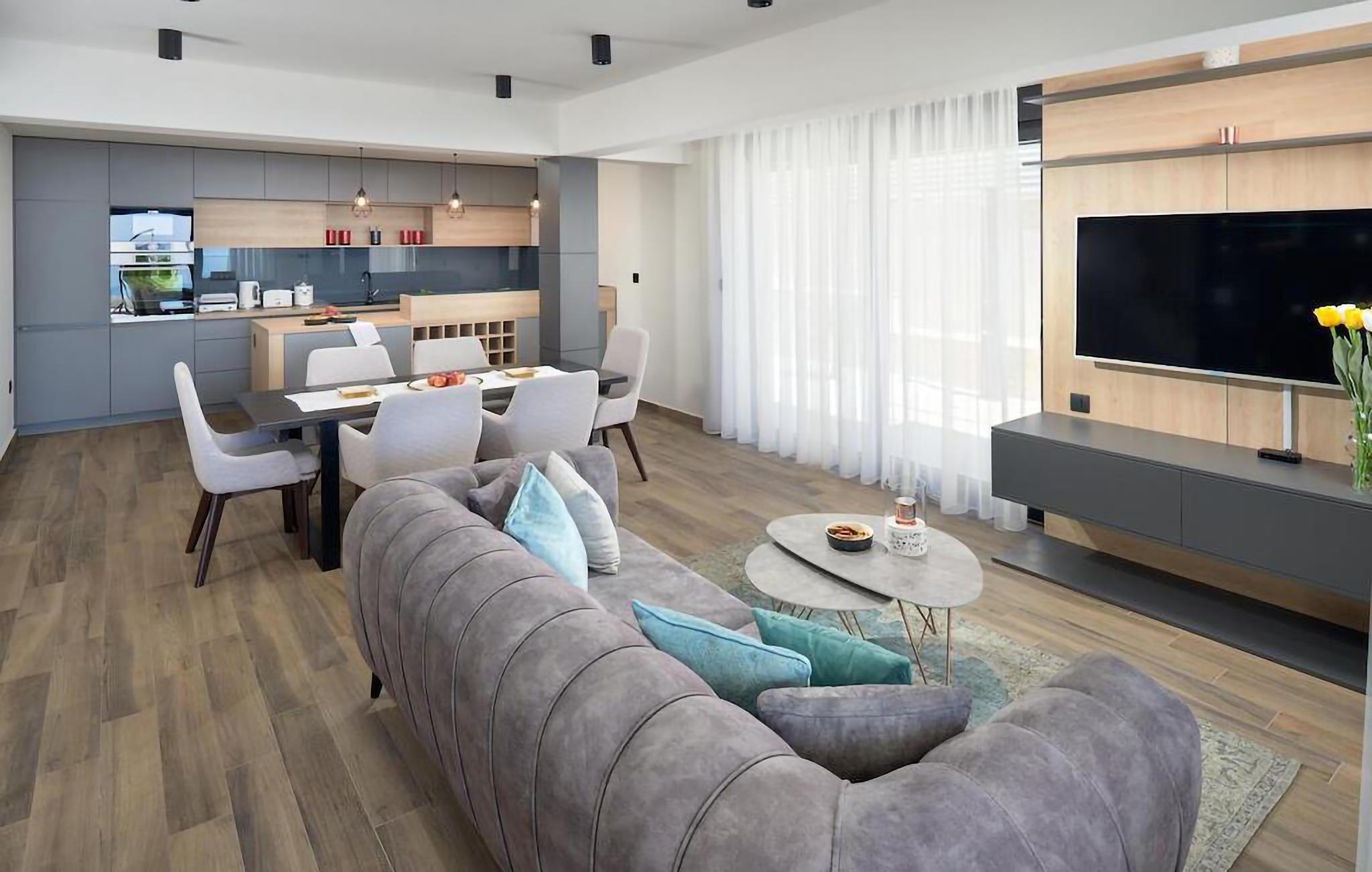Bag dig det imponerende Biokovo-bjergmassiv; foran dig Adriaterhavet med de indbydende øer Brac og Hvar - det er her, din drømmebolig byder dig velkommen med al tænkelig komfort. Du vil elske poolen, saunaen, den bedste panoramaudsigt over havet og den moderne opholdsstue.