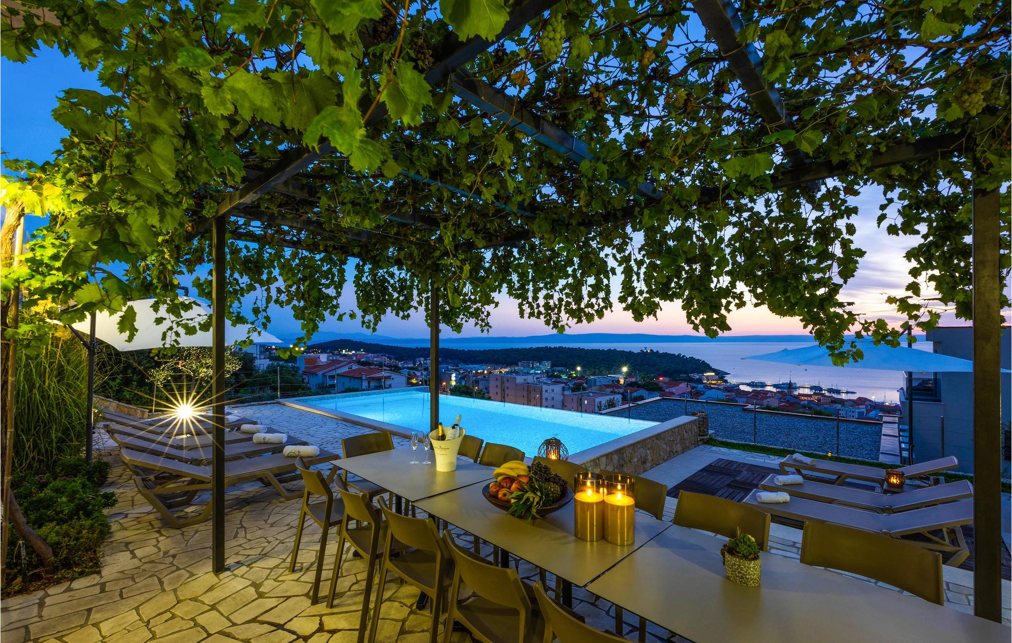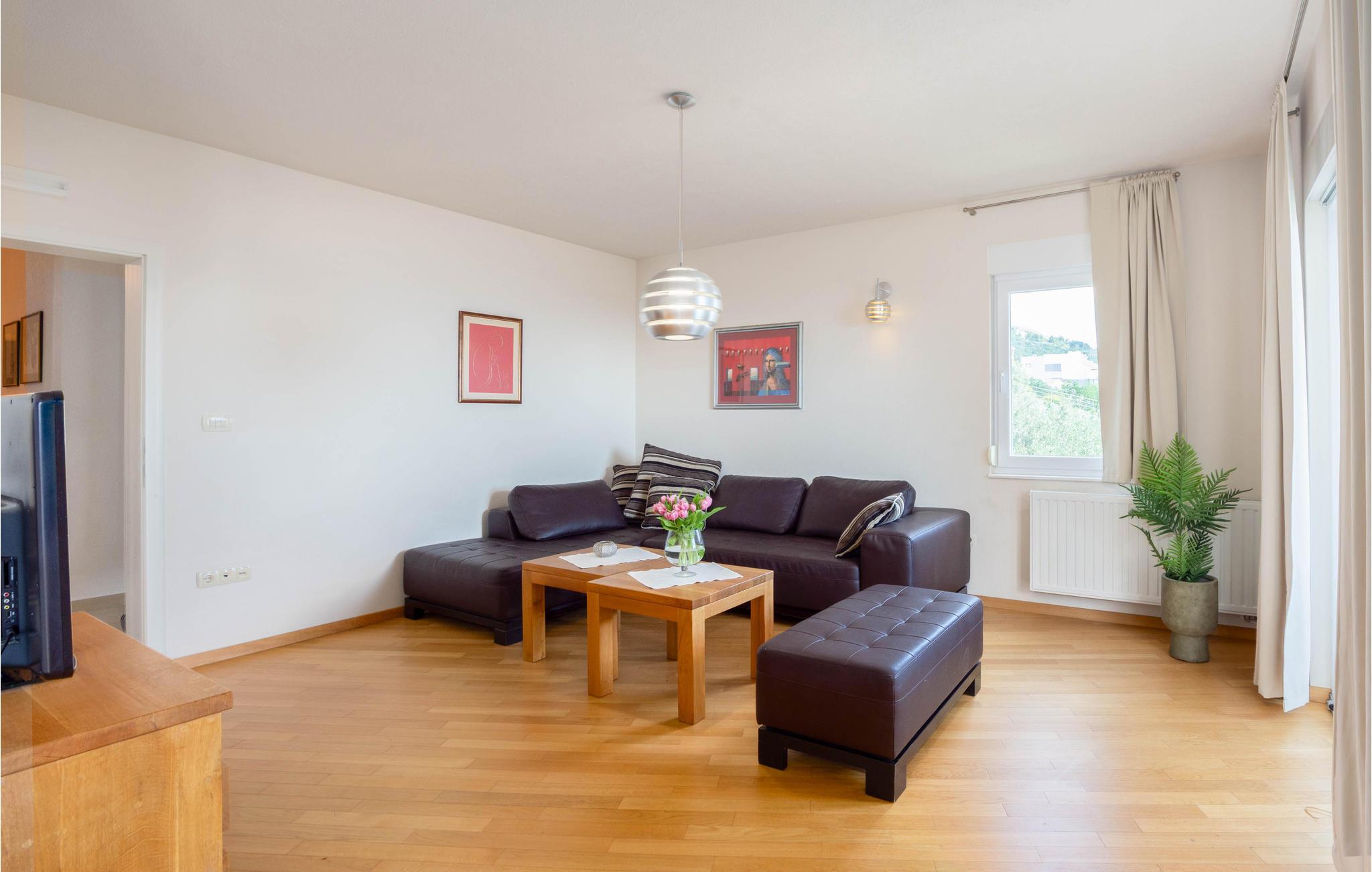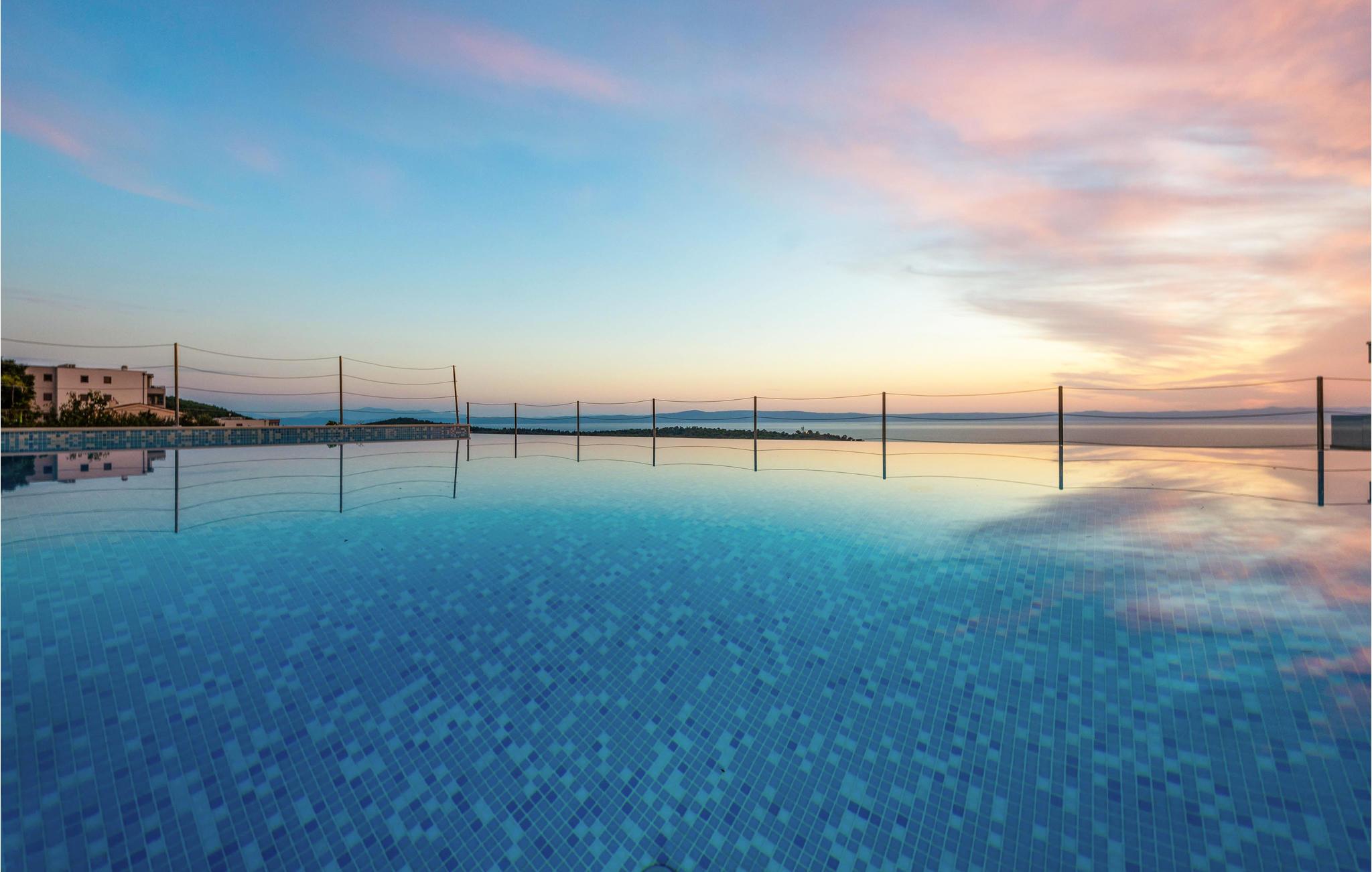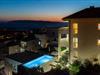 I denne fantastiske ferieby venter der jer en vidunderlig udsigt fra dette dobbelthus til Biokovo-Bjergmassivet samt over havet. Huset er så stort og rummeligt, at her sagtens er plads til to familier. Fra den store poolterrasse og swimmingpoolen, som I har helt for jer selv, kan I nemt komme til stueetagens konoba med en velassorteret vinreol. Her er der plads nok til jer alle, og her kan I lave herlige lækkerier på grillen og nyde dem, måske med et glas lokal vin til. I stueetagen findes et soveværelse. Hvis I gerne vil holde formen ved lige, mens I er på ferie, kan I benytte det skønne fitnessrum på 1. sal. De resterende soveværelser finder I ligeledes på 1. sal, som I kommer til ad en udendørs trappe. Fra terrassen har I en vidunderlig udsigt, som I med garanti vil nyde. Tagetagen er ikke tilgængelig! Feriehuset ligger i et roligt område på en bakke og byder på en vidunderlig panoramaudsigt til Makarska og havet. Besøg byens centrum, der byder på mange arrangementer og masser af underholdning for alle aldre. Gå en tur på strandpromenaden, der bugner af hyggelige caféer, restauranter og souvenierbutikker. Prøv de lokale specialiteter som grillet fisk og kød samt de skønne vine fra denne region. Det kan også anbefales at tage på en dagstur med båd til øerne Brac og Hvar, der begge har masser af kulturelle tilbud samt helt utroligt smukke strande. For aktive feriegæster er der mange muligheder - prøv kræfter med cykling, vandreture, tennis, basketball, fodbold, surfing m.m. Opdag også de små steder med skønne, lange kiselstrande - Tucepi, Brela og Baska Voda. Den venlige husejer bor i nabohuset.