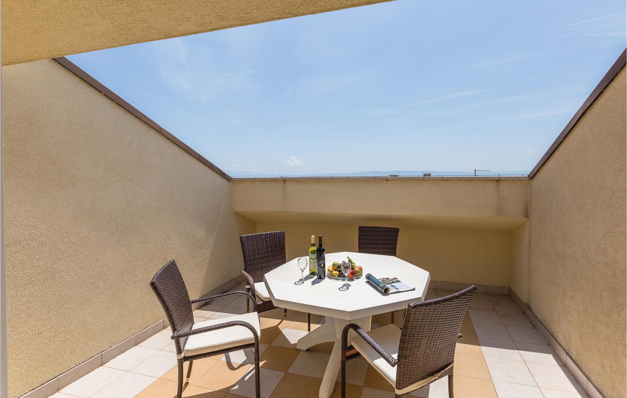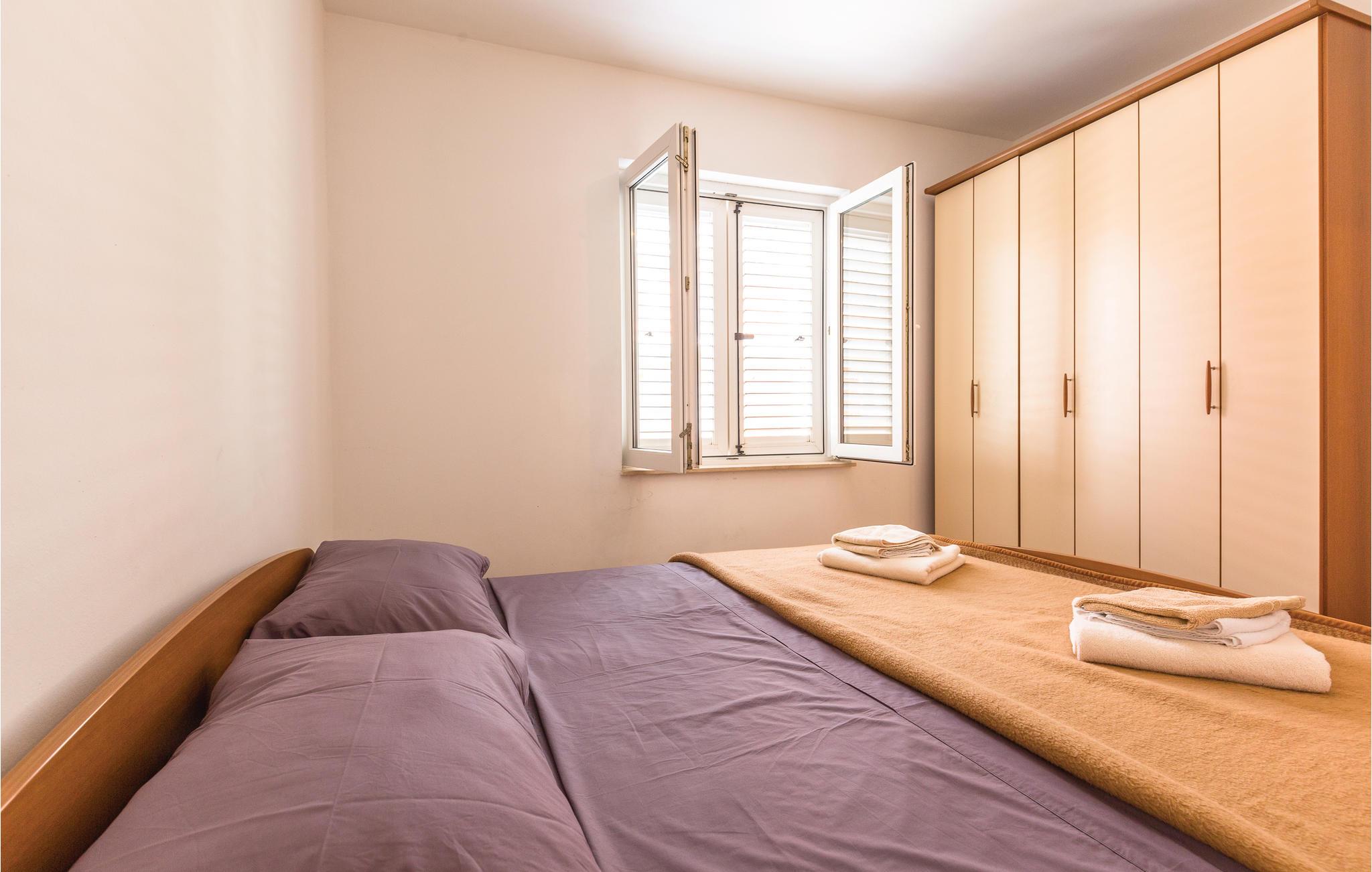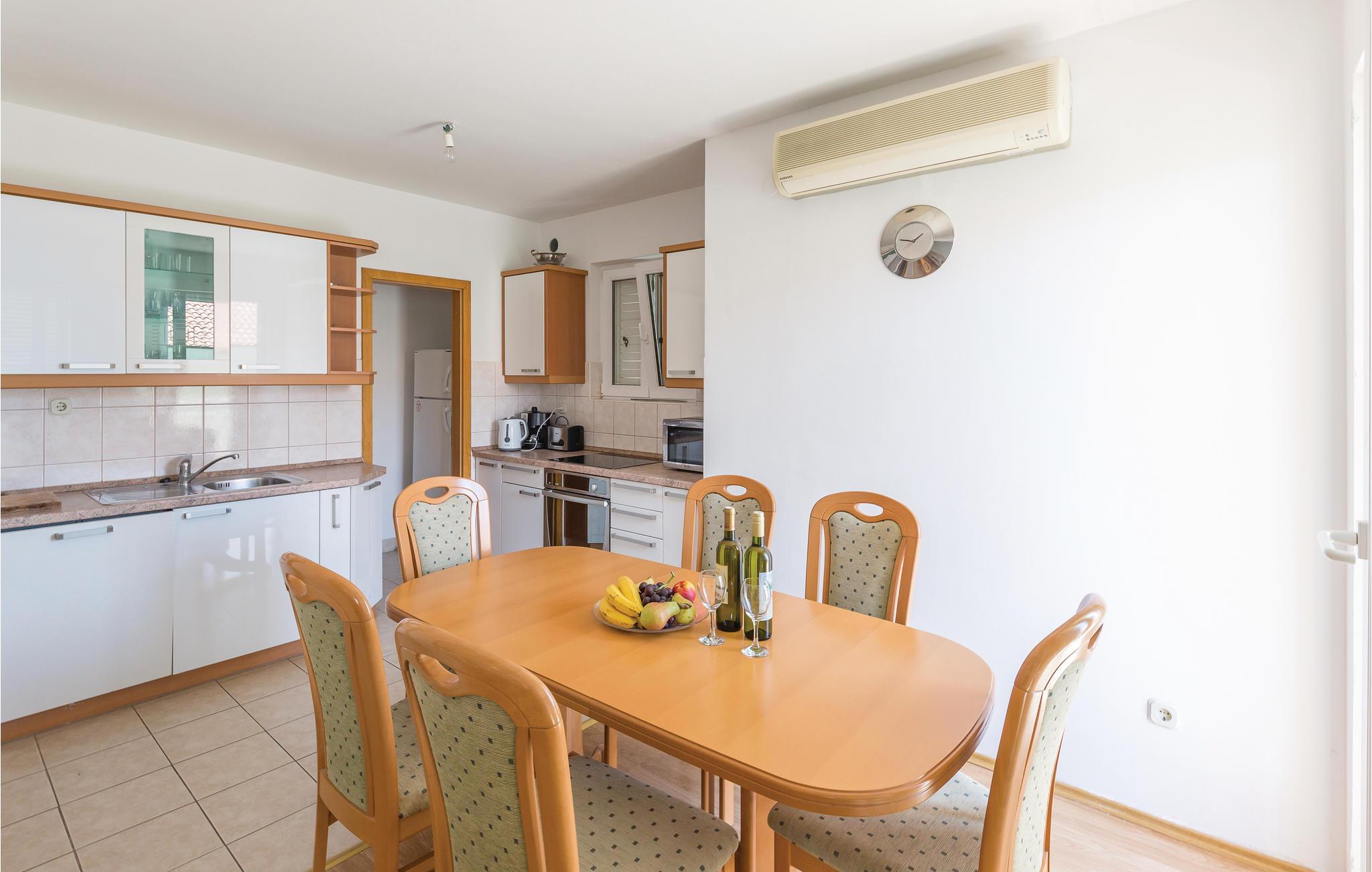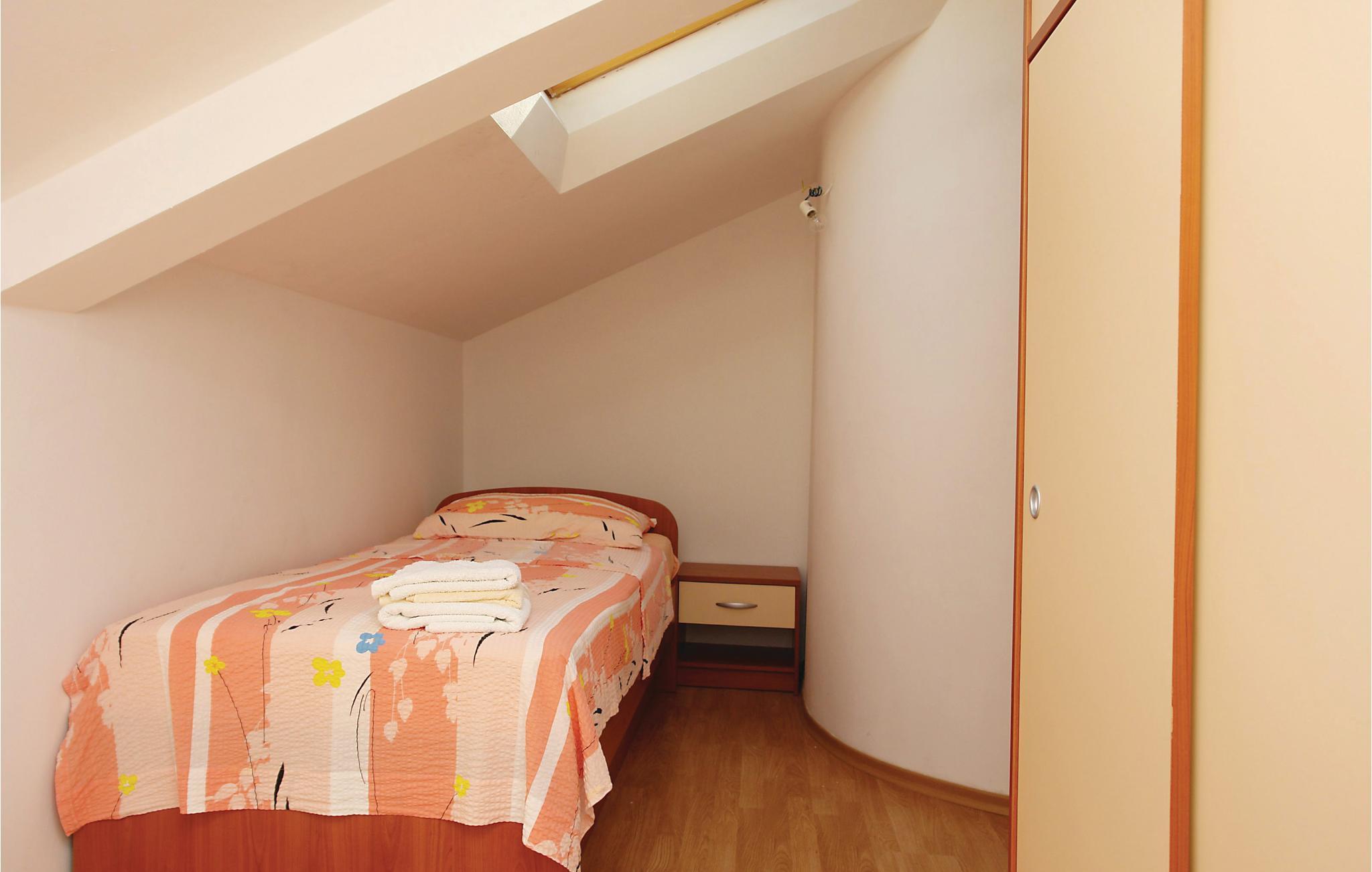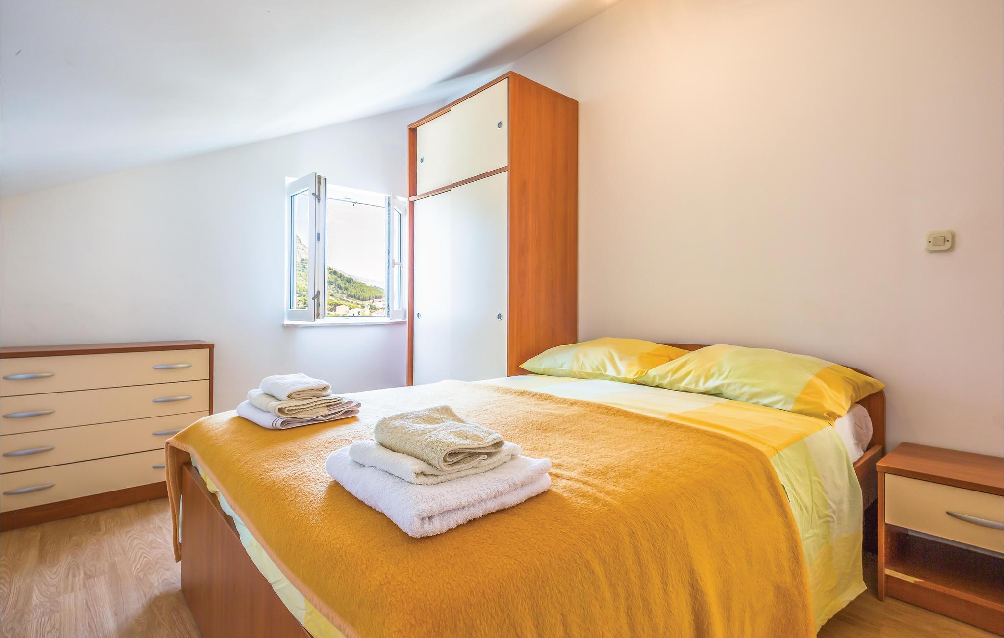Fra enheden, der har 2 soveværelser, kan I nå øverste etage via en vindeltrappe, hvor der er 4 soveværelser (min Lofthøjde 120 cm). Fra terrassen har I en smuk udsigt over bjergkæden Biokovo og havet. Fra huset fører en gangsti direkte til stranden.