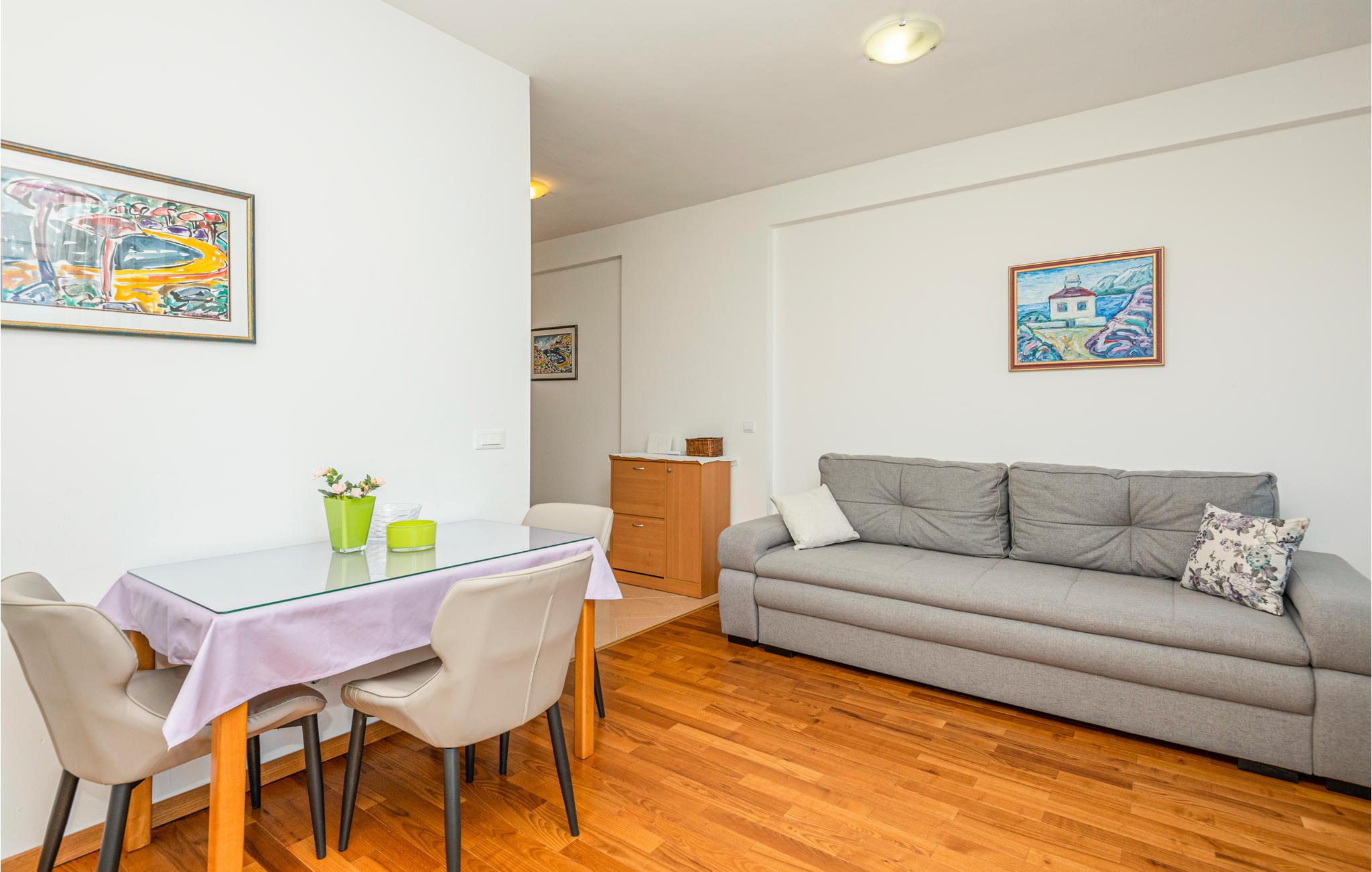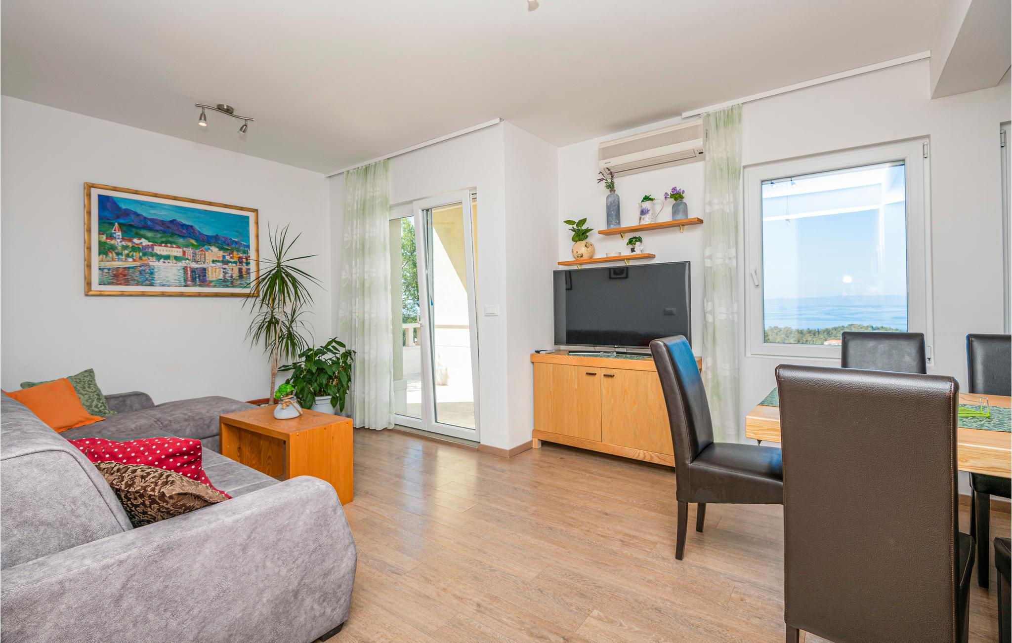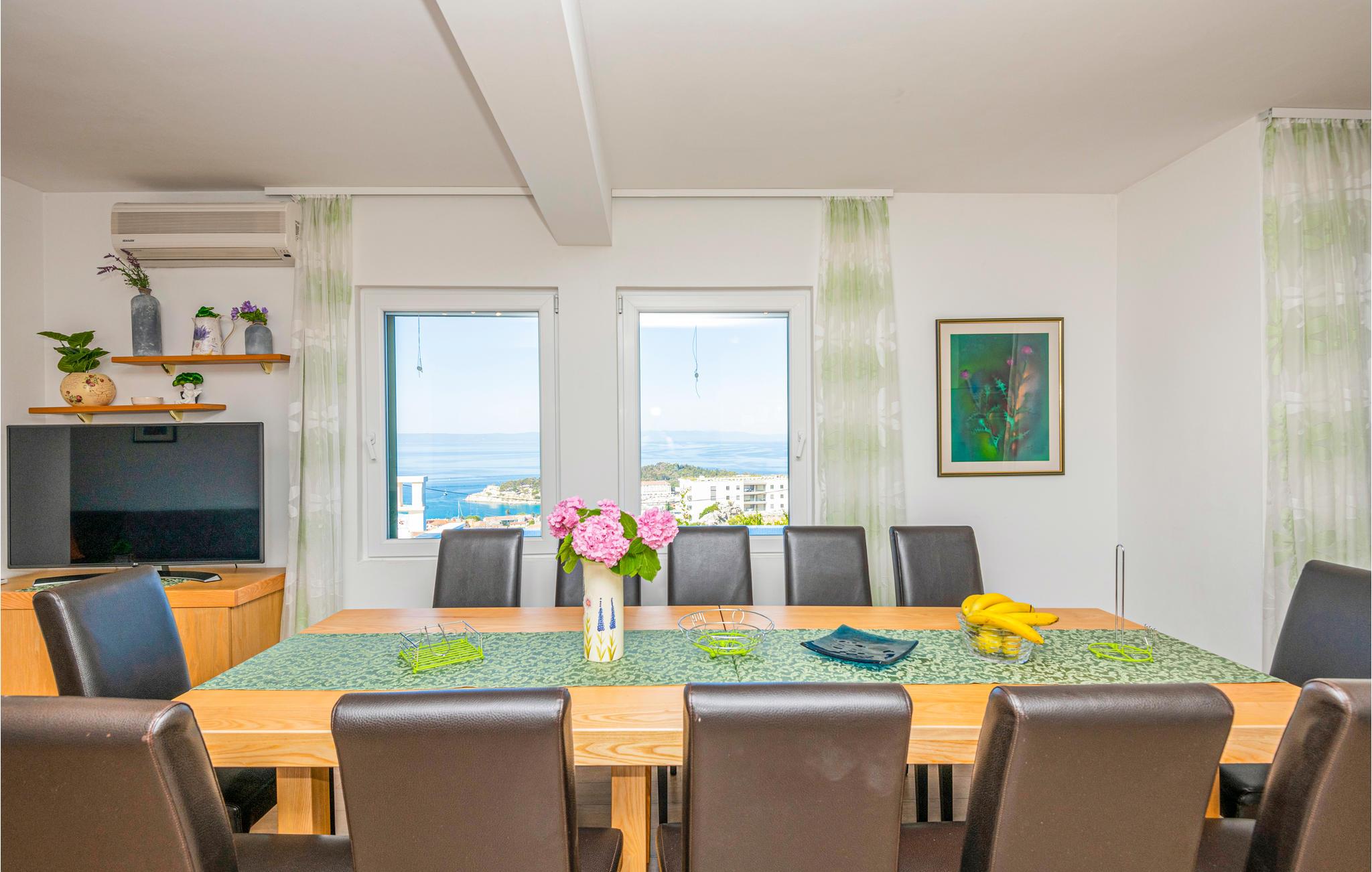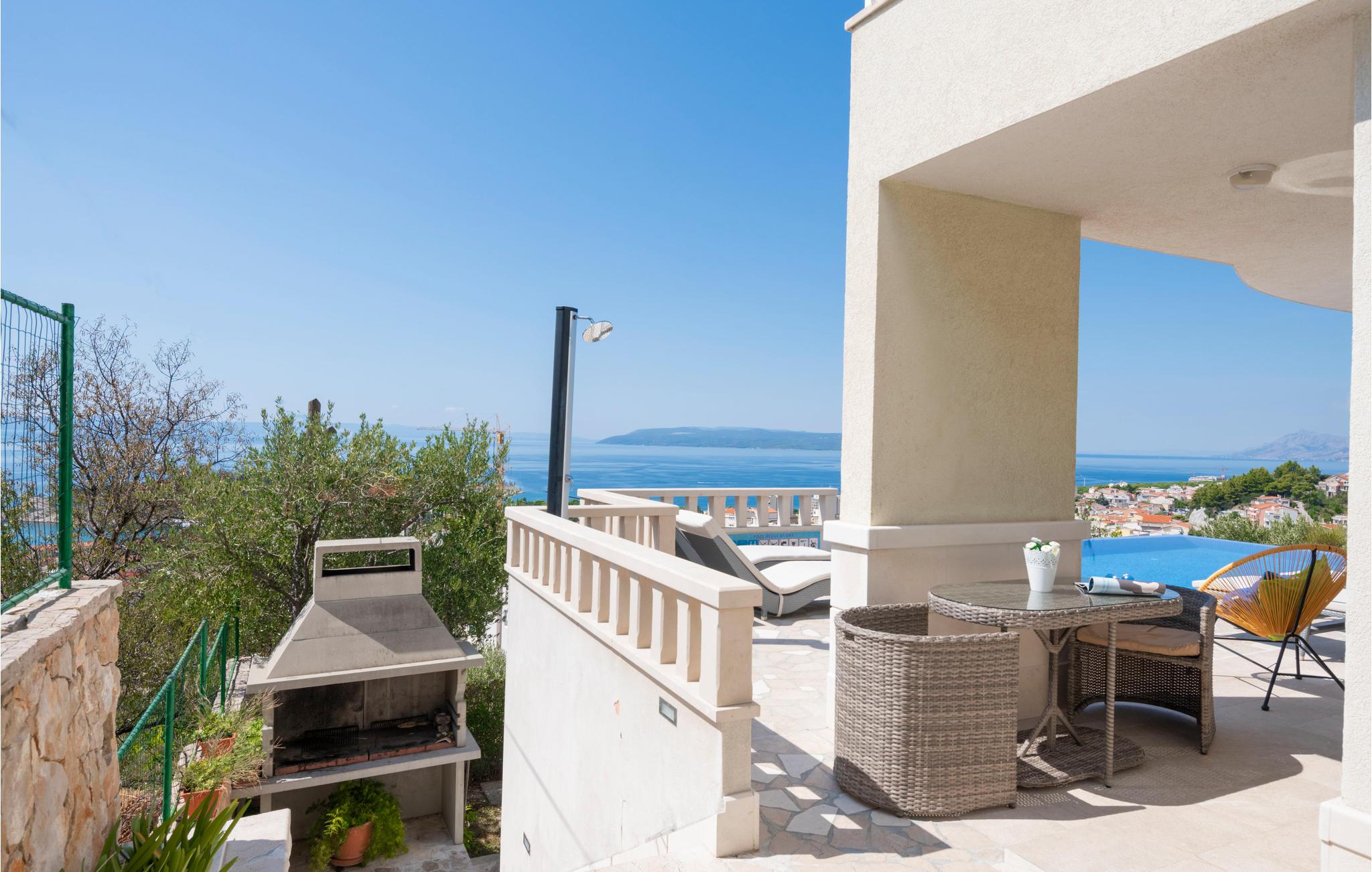 Dette indbydende feriehus rummer fire lejligheder, der er forbundet med en indendørs trappe. I stueplan er der køkken og stue til hyggelige fælles timer sammen, et fitnessrum og et soveværelse. På første al er der to små lejligheder, mens den største lejlighed ligger på anden sal. Fra poolen og den rummelige terrasse er der en herlig panoramaudsigt over havet og øerne Brac og Hvar. Nyd Makarska hvor der er mange former for underholdning, med en lang og skøn kiesstrand eller tag til en af rivieraens mange andre skønne destinationer. Besøg de mange forskellige gode restauranter og nyd afslappede spadsereture sidst på eftermiddagen hvor den værste hede har lagt sig.