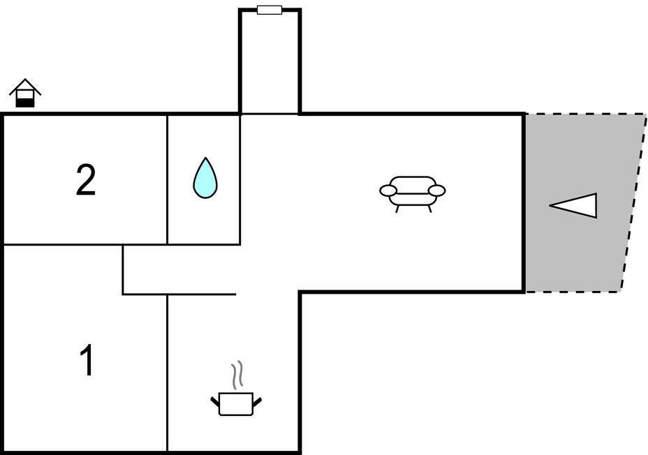 Opholdsstue/køkken - 2 Sovepladser. (Sofa, madras eller lignende).