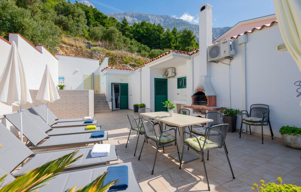 På en bakketop udenfor byen Makarska ligger dette feriehus med swimmingpool. Huset er moderne og hyggeligt indrettet. Den rummer tre soveværelser, et køkken og en stue samt hele tre badeværelser. I bor på første sal, og i stueetagen er der fitnessrum, børnelegetøj og aktivitetsrum med bordtennis og darts. Stor terrasse med pool, hvorfra I kan nyde den dejligste panoramaudsigt over havet. Det er kun denne lejlighed, der udlejes på første sal. Oplev byen Makarska, smag på alle de lækre lokale specialiteter på de mange taverner. Til de aktive kan vi anbefale nationalparken Biokovo, som rummer nogle af Kroatiens skønneste bjerge med oplevelser og udsigter, som I aldrig vil glemme.