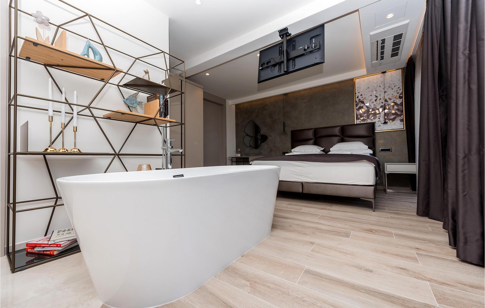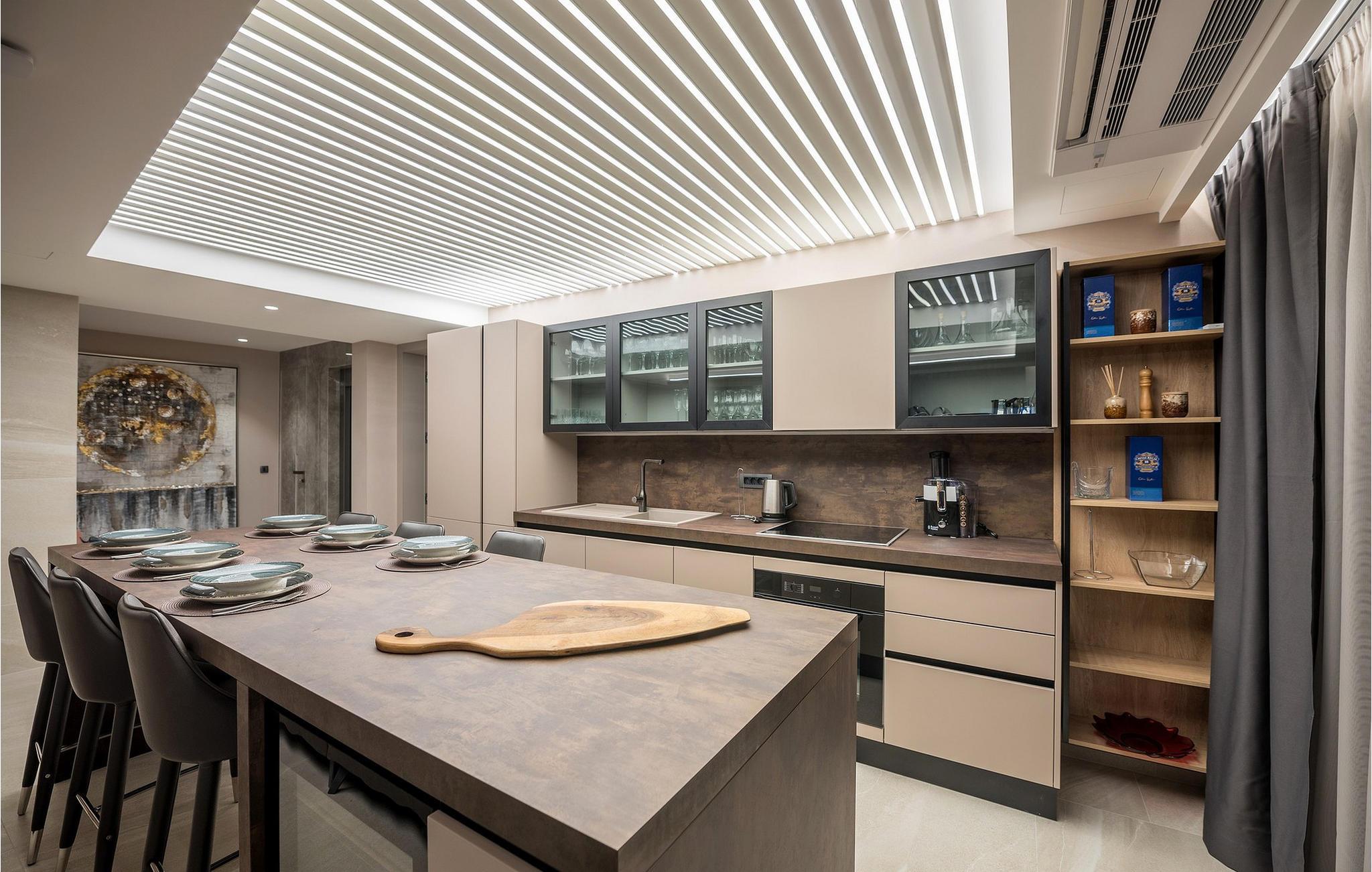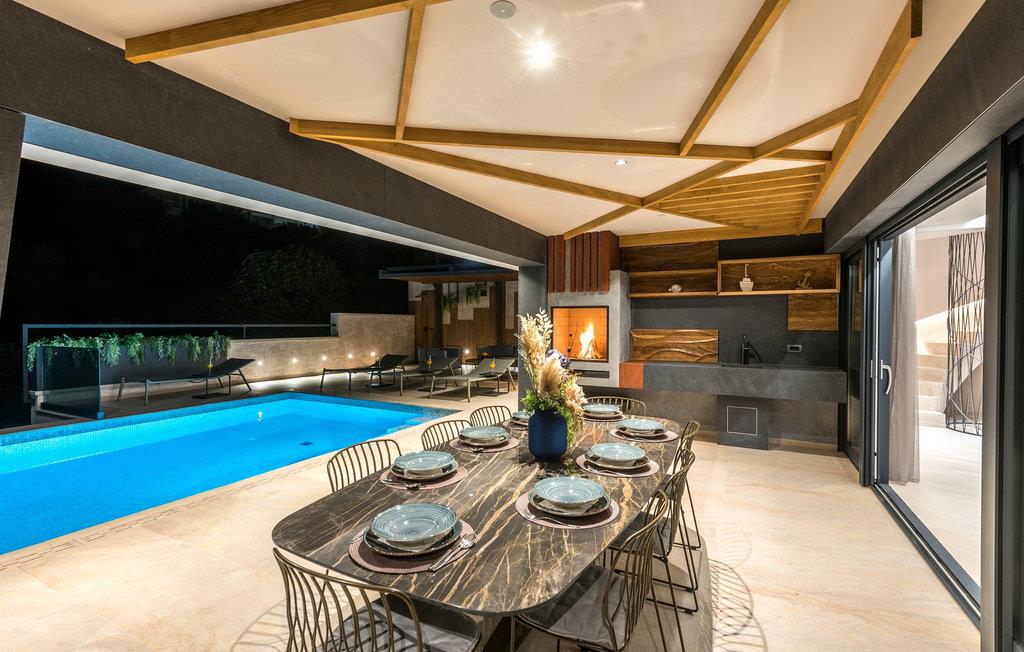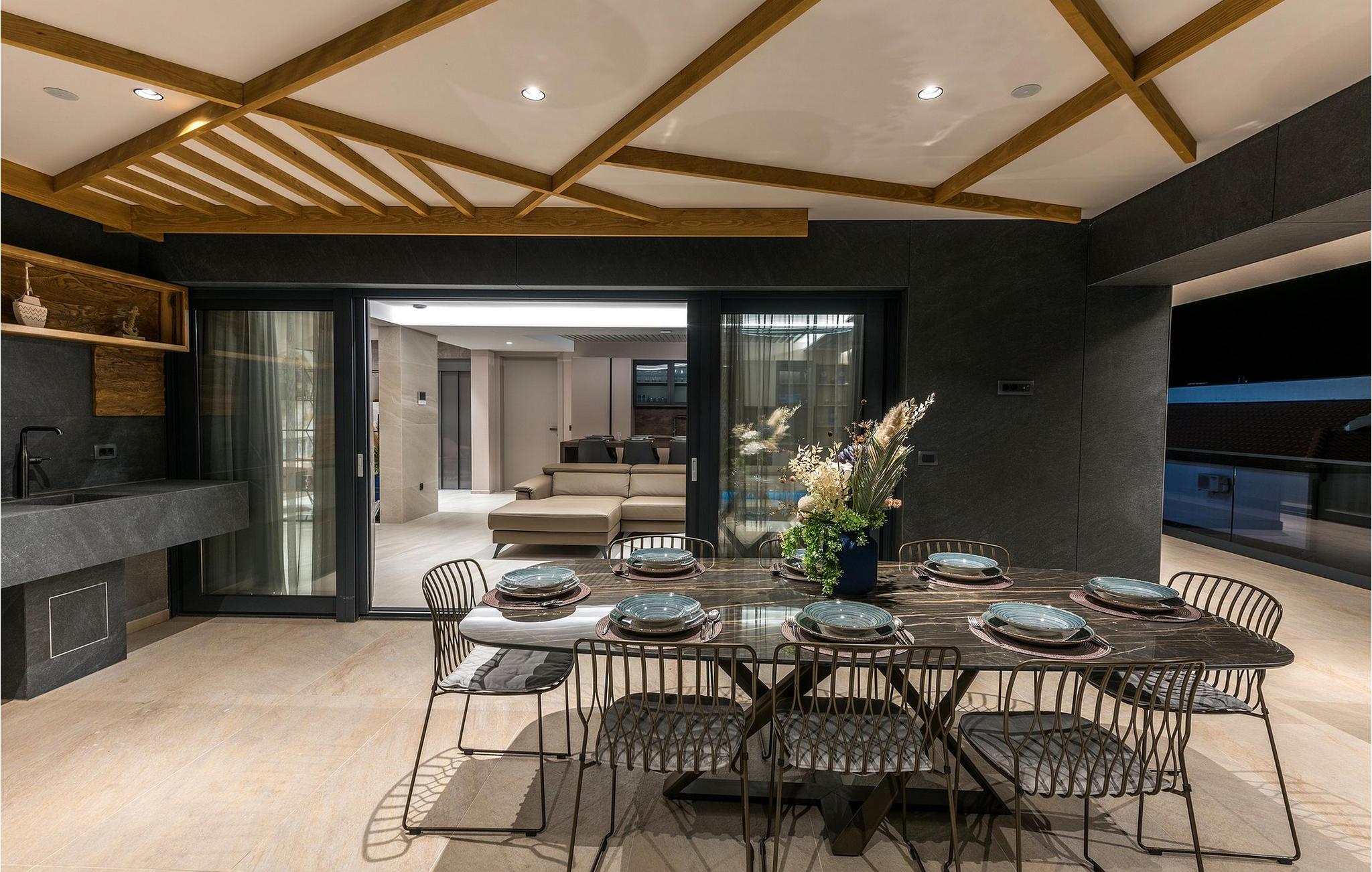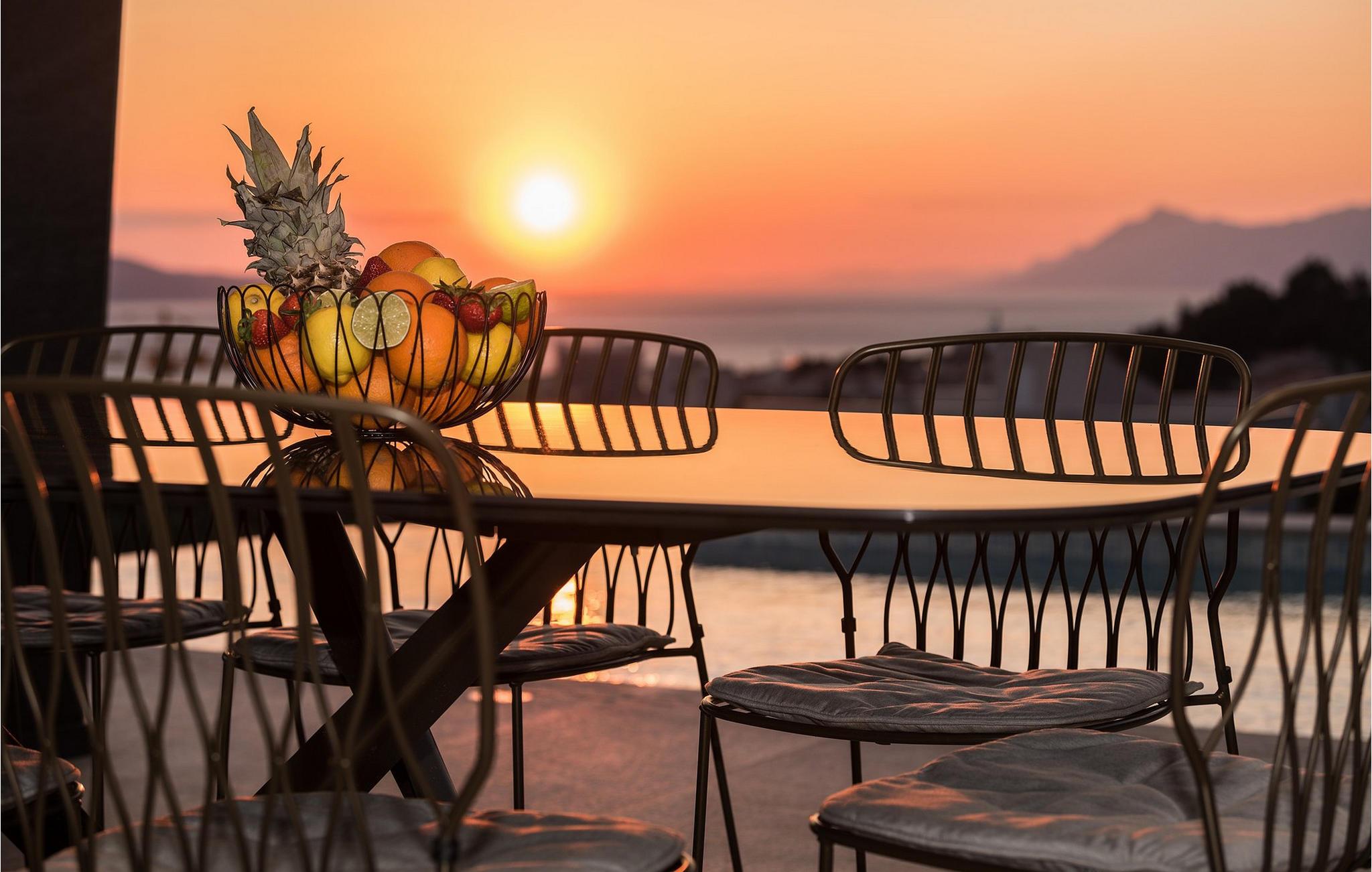 Den luksuriøse Villa Rhapsody 1 er noget særligts elegante, moderne atmosfære. Rene linjer, varme materialer og stilfulde detaljer skaber en atmosfære af tidløs harmoni. Her kan I lave mad i elegante omgivelser, afslutte dagen med et glas vin eller blot nyde freden og roen. Den problemfri forbindelse mellem indendørs og udendørs områder lægger op til timer i afslappet selskab og middelhavsro.