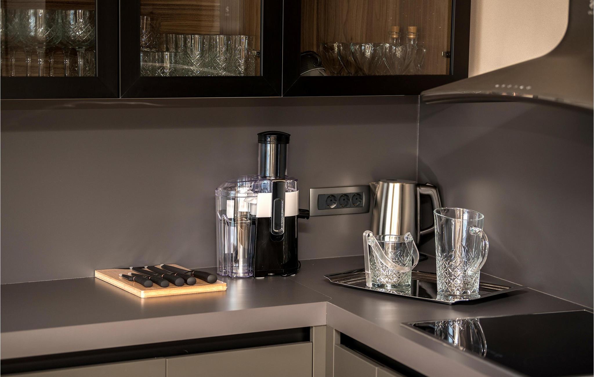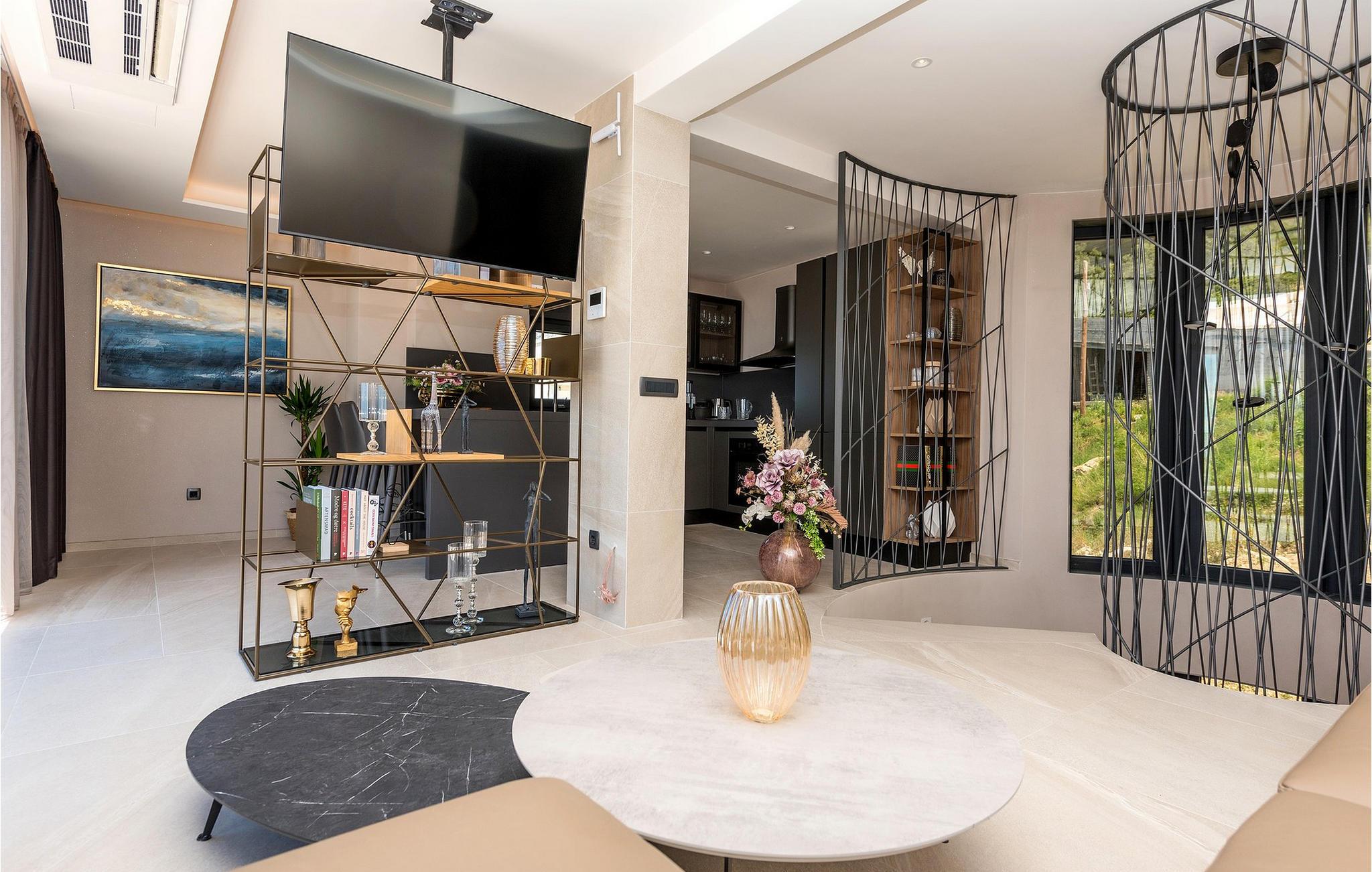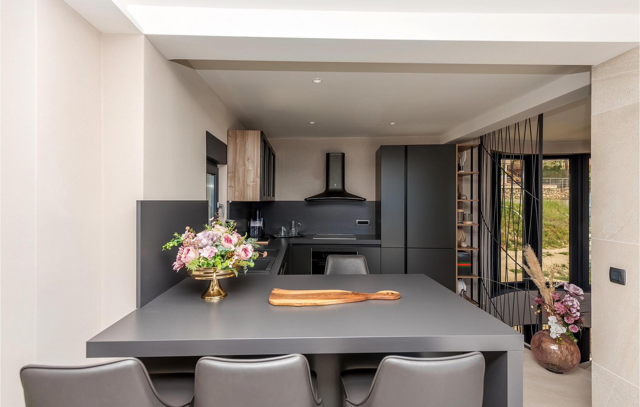 Den luksuriøse Villa Rhapsody 2 er noget særligts elegante, moderne atmosfære. Rene linjer, varme materialer og stilfulde detaljer skaber en atmosfære af tidløs harmoni. Her kan I lave mad i elegante omgivelser, afslutte dagen med et glas vin eller blot nyde freden og roen. Den problemfri forbindelse mellem indendørs og udendørs områder lægger op til timer i afslappet selskab og middelhavsro.