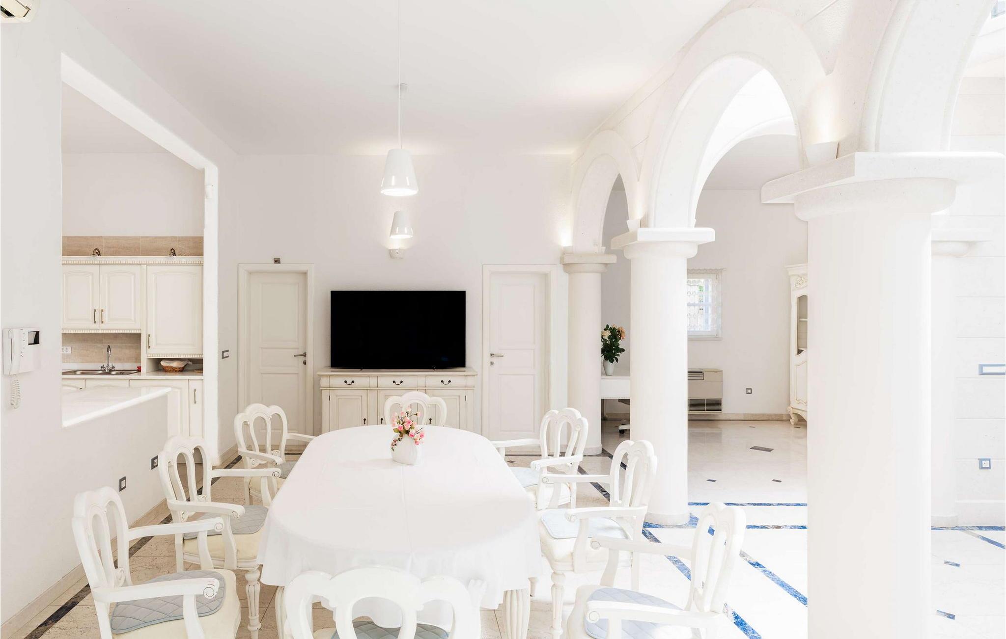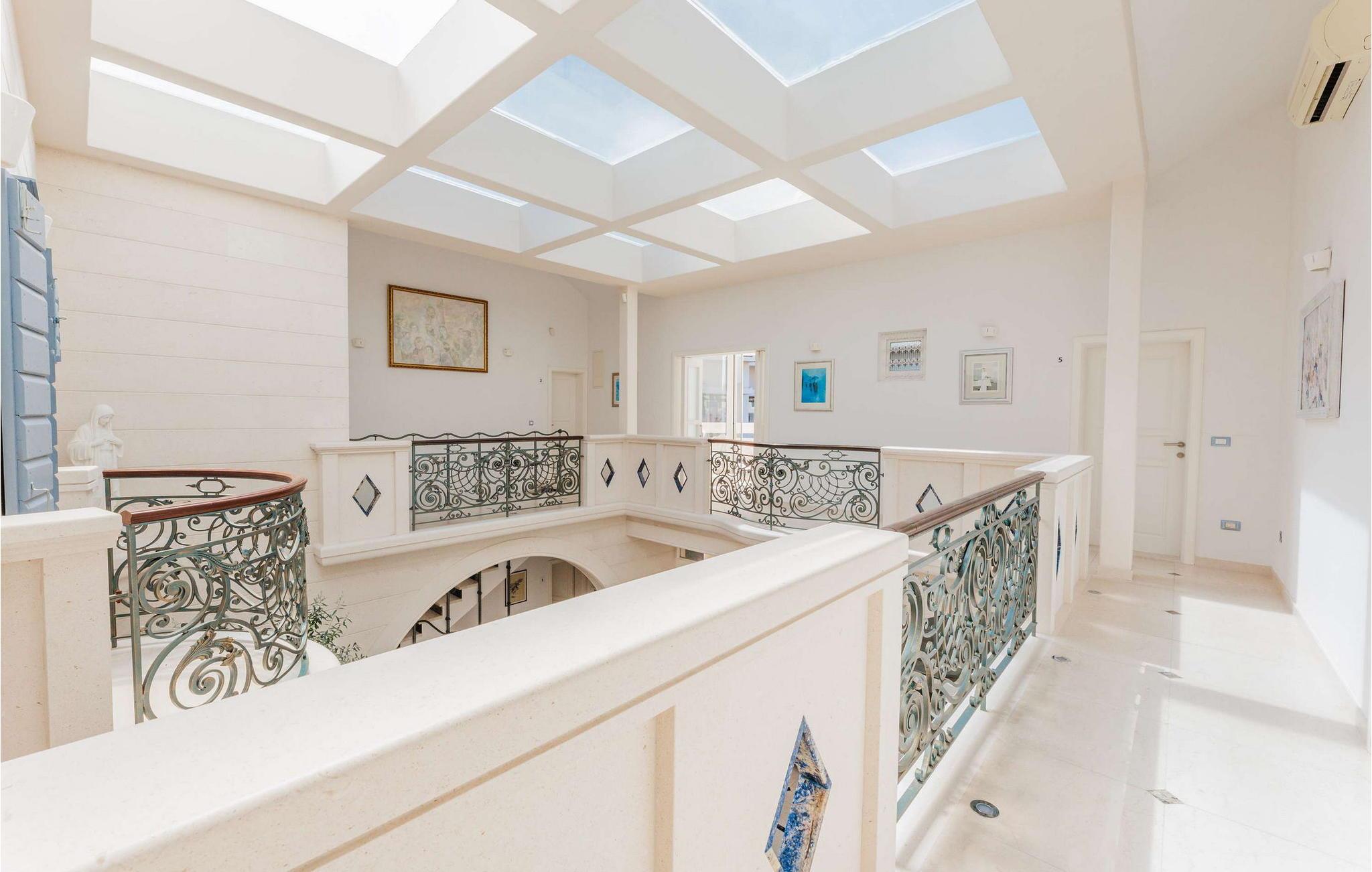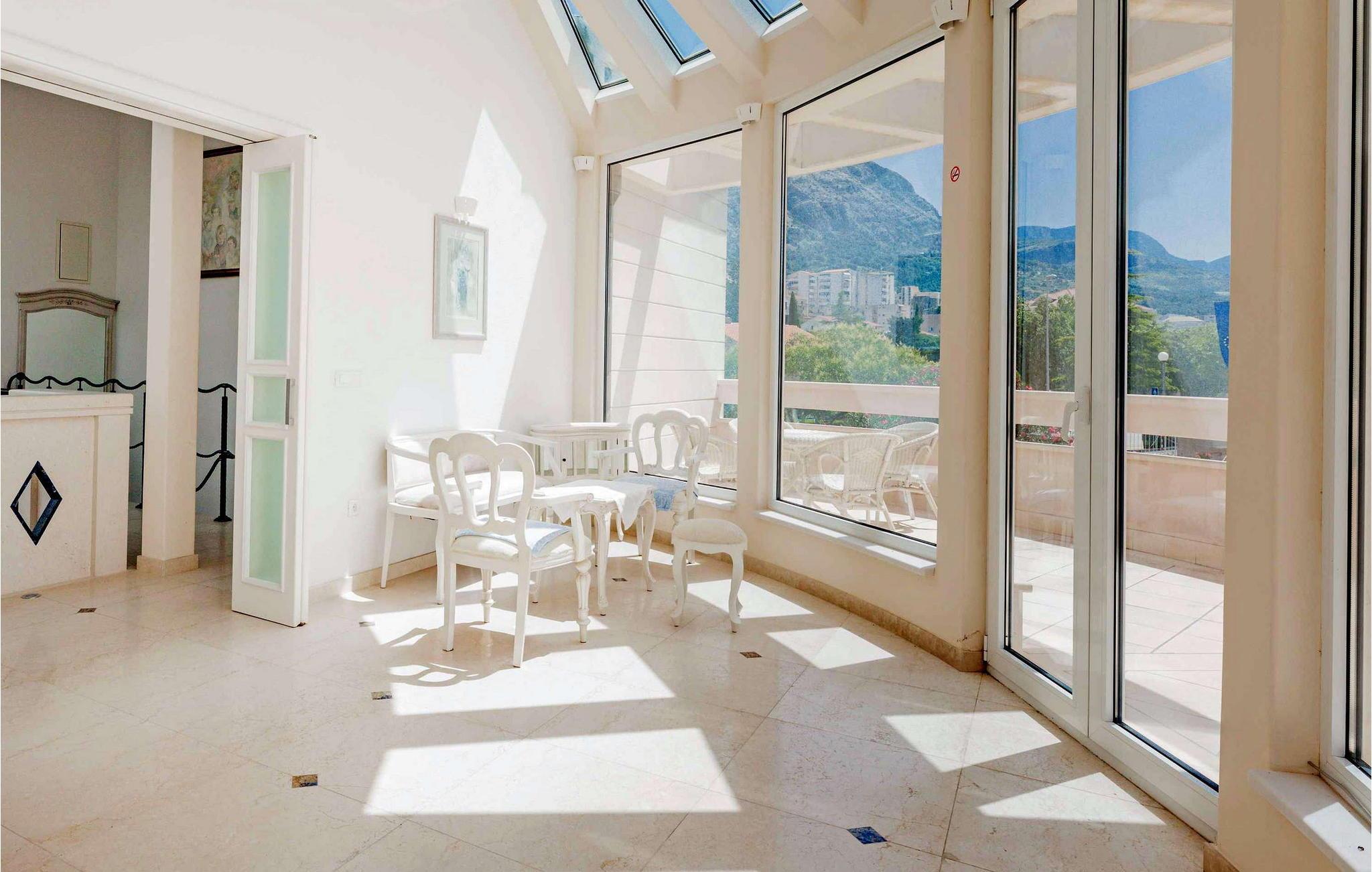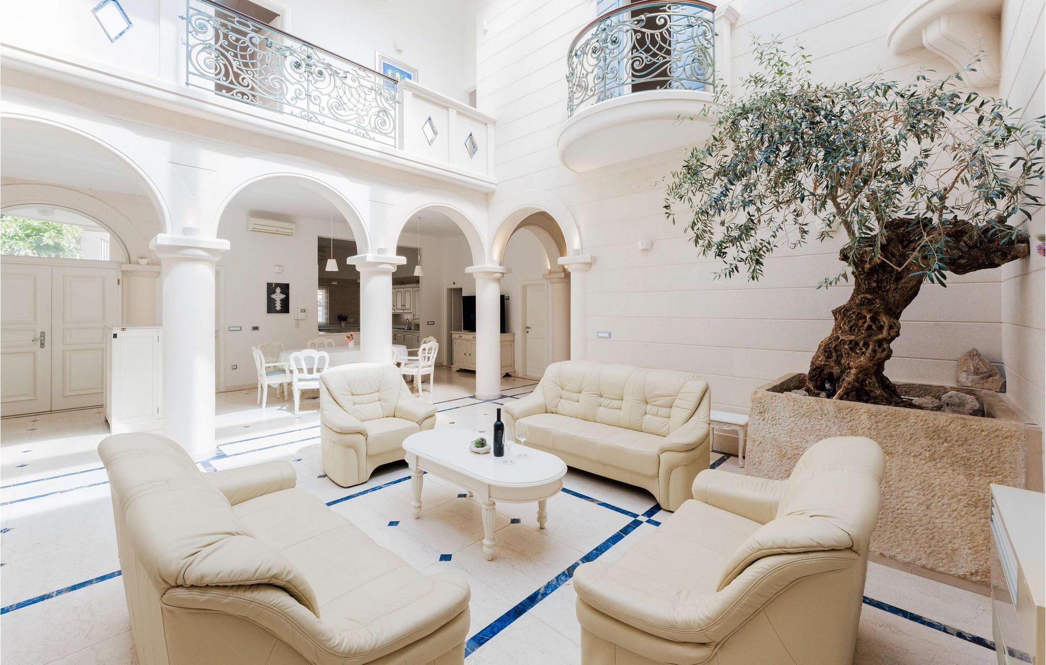 Denne storslåede villa udstråler en atmosfære af tidløs elegance og middelhavscharme. Lette stenvægge, fejende buer og udsmykkede rækværk skaber en atmosfære, der er både sofistikeret og indbydende. Tilbring afslappende timer i de stilfulde opholdsrum eller læn jer tilbage i den rustikke vinkælder med et glas lokal vin og en god samtale. Takket være den lyse veranda med udsigt over de omkringliggende bjerge kan I nyde en følelse af fred og ro når som helst på dagen.