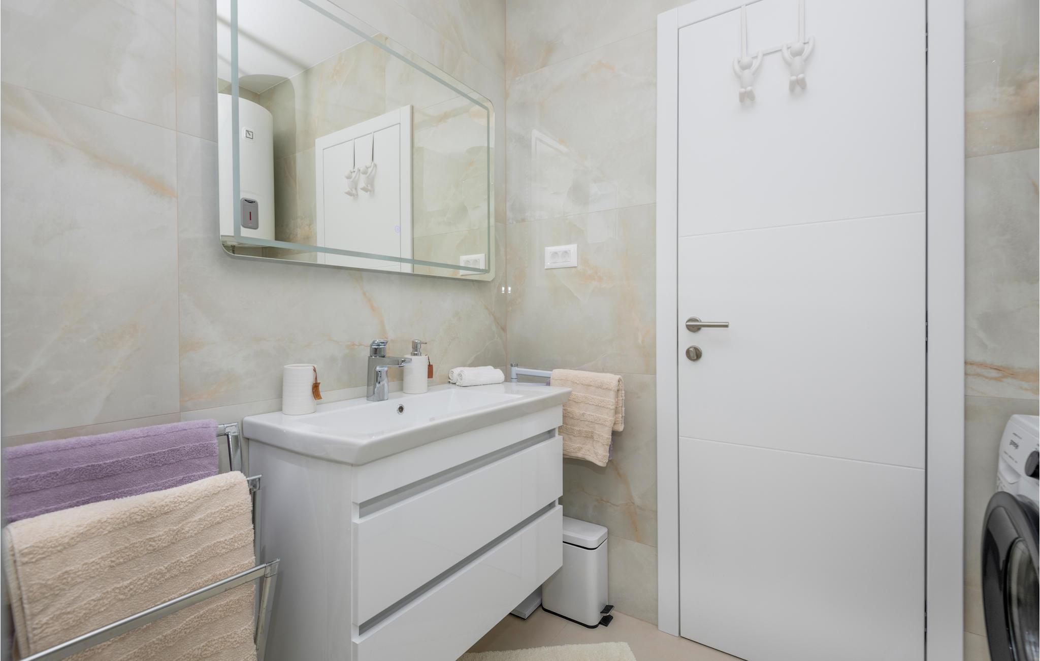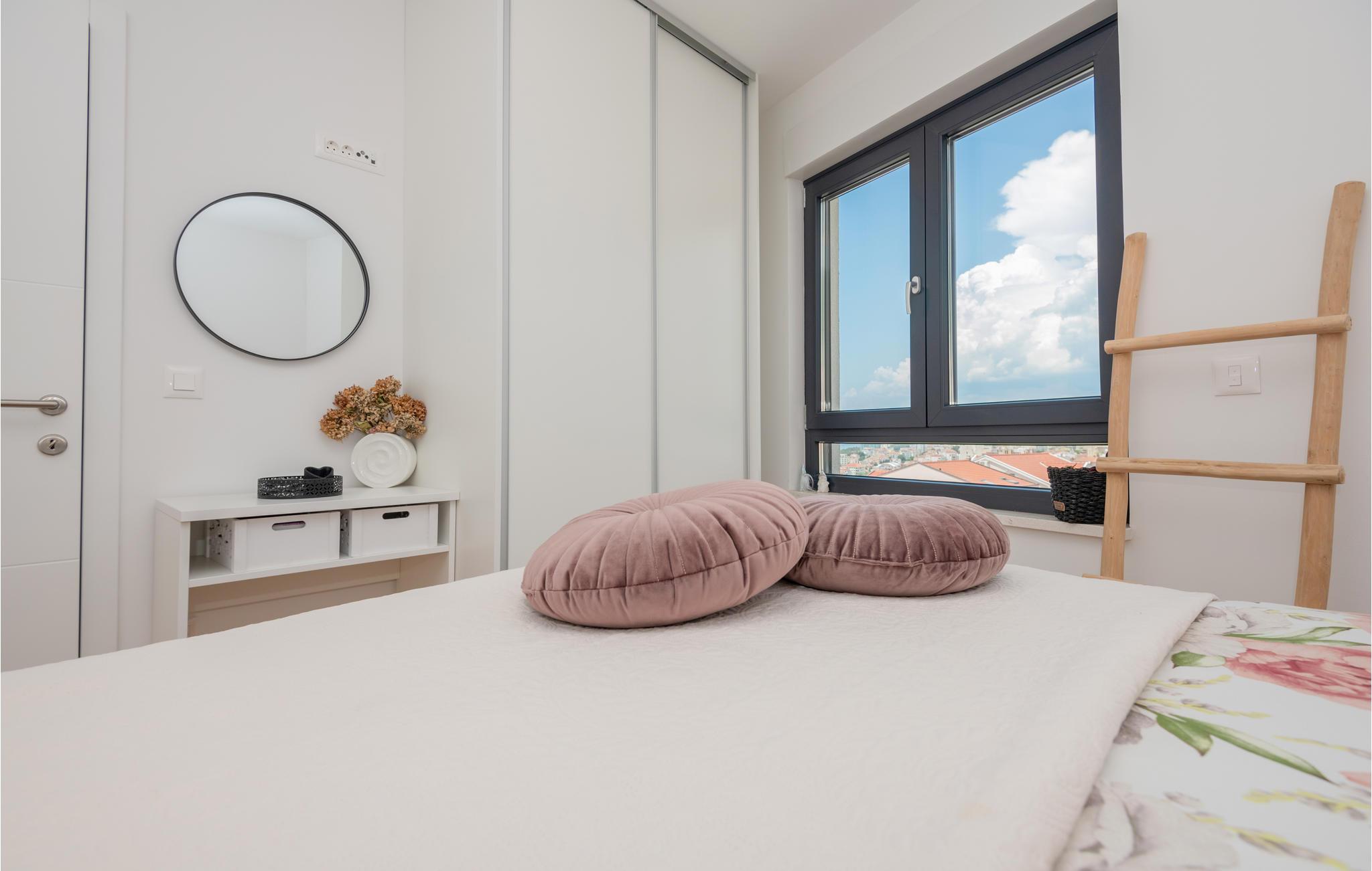I et moderne lejlighedskompleks finder I denne skønne ferielejlighed med moderne atmosfære og lyst design. Boligen er ideel til to par eller en lille familie, der sætter pris på komfort og hygge. Den velmøblerede stue kombinerer madlavning, spisning og afslapning, så ingen skal stå alene i køkkenet. Træd ud på den vidunderlige balkon og slæng jer i lounge-sofaen, hvorfra I ikke kan få nok af udsigten.