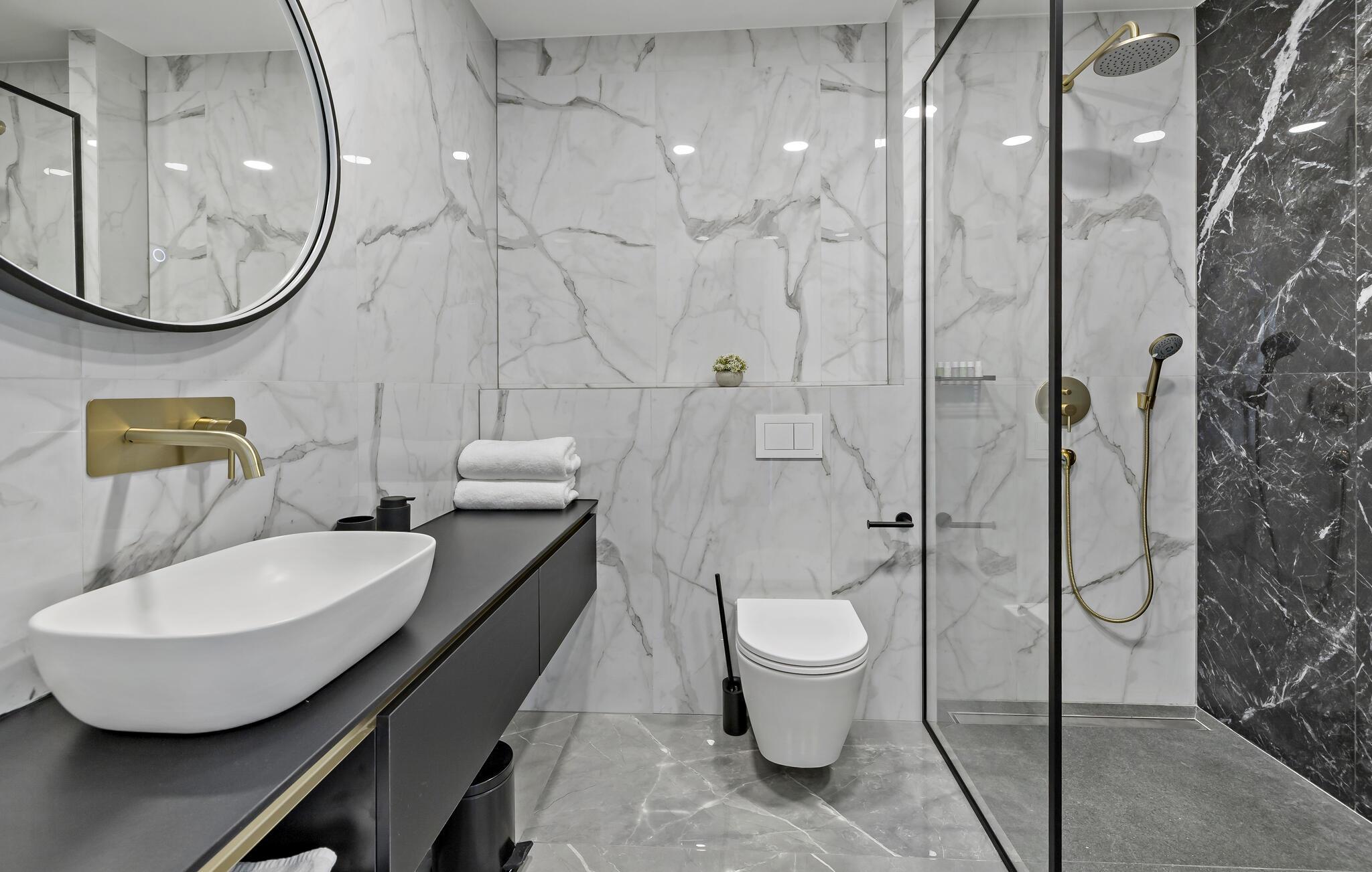 Badeværelse 8m2 (nr. 2) - WC. Varmt og koldt vand. Bruser og badekar