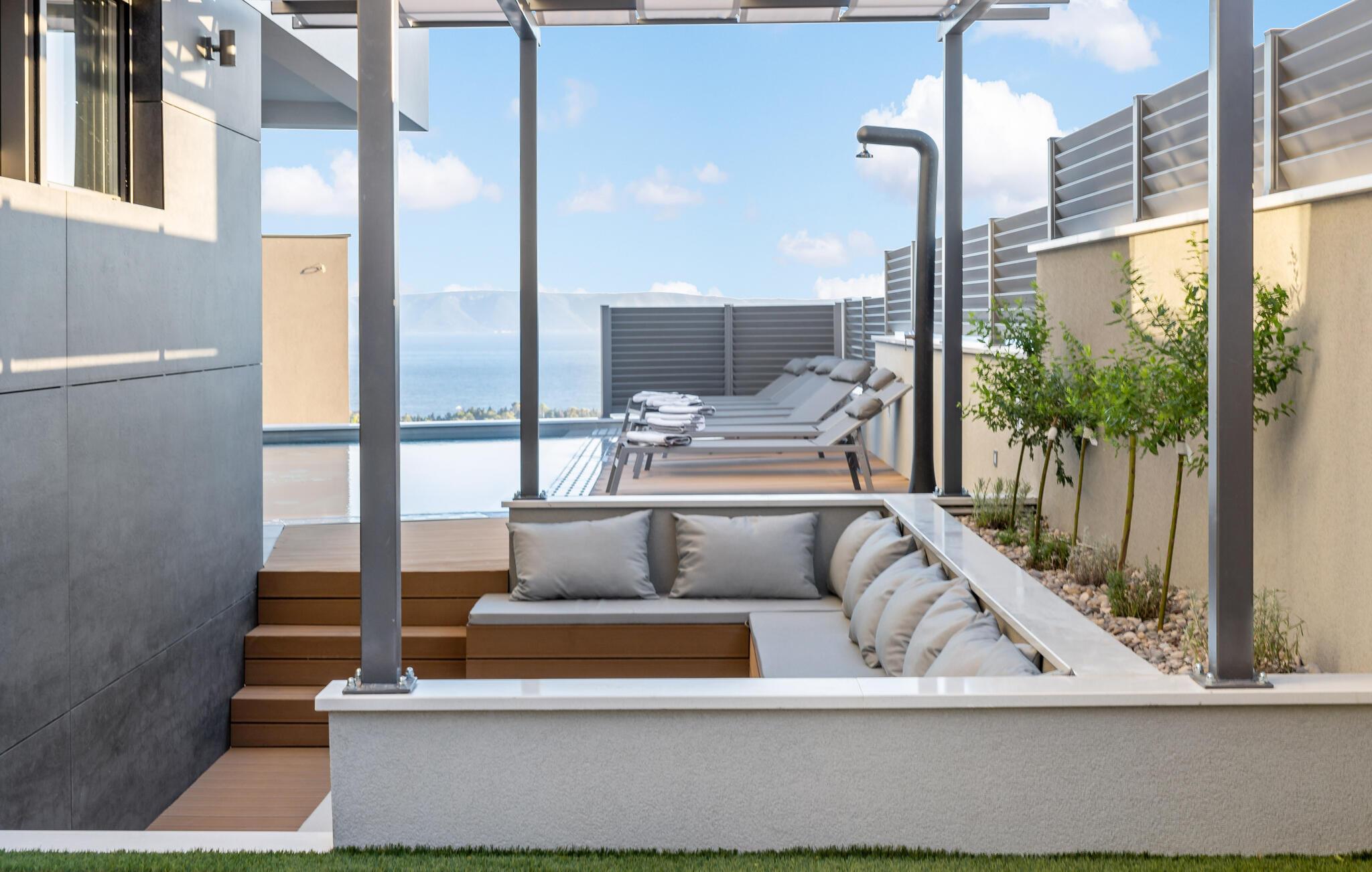 Tilbring masser af tid udendørs, hvor poolen byder på en forfriskende dukkert på varme dage, og hvor de mange terrasser indbyder til, at I kan nyde solen og den smukke udsigt i fulde drag. Se jeres børn lege glade og server en lækker middag fra grillen under åben himmel.