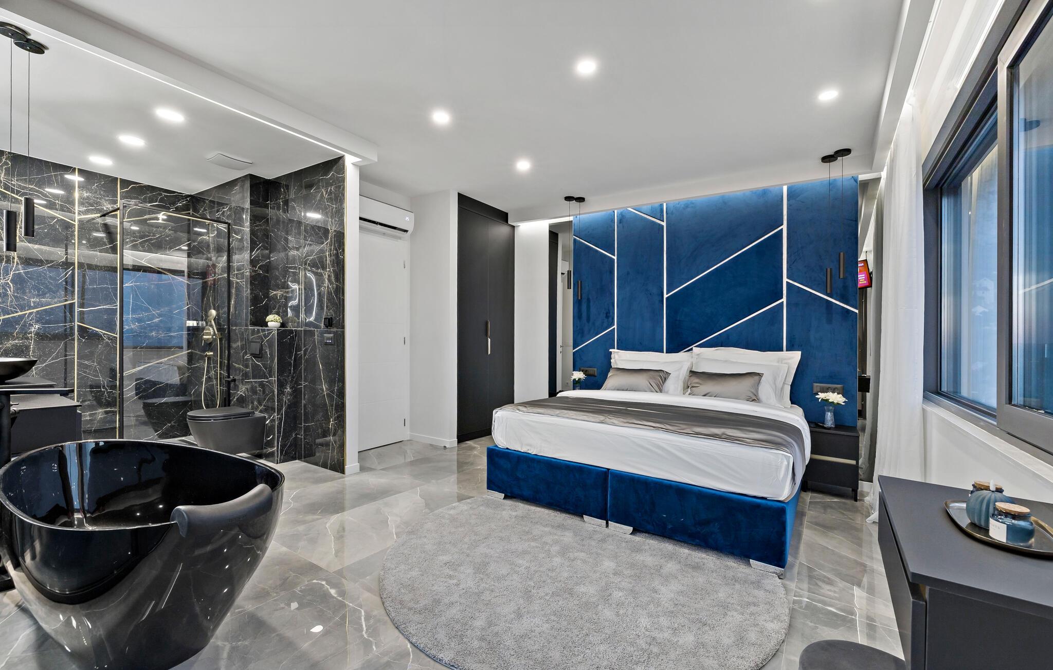 Velkommen i dette luksuriøse hus, der byder jer velkommen i kort afstand fra stranden og tilbyder masser af plads til en ferie med høj komfort. Her kan I slappe af i moderne og stilfulde omgivelser sammen med jeres kære. Glæd jer til hyggelige aftener, når I vender tilbage fra dagens aktiviteter eller stranden, hvor I kan slappe af i saunaen, tage en træningsrunde på fitnessudstyret eller benytte de mange underholdningstilbud. Senere kan I samles omkring pejsen til lange samtaler og nyde det elegante miljø.