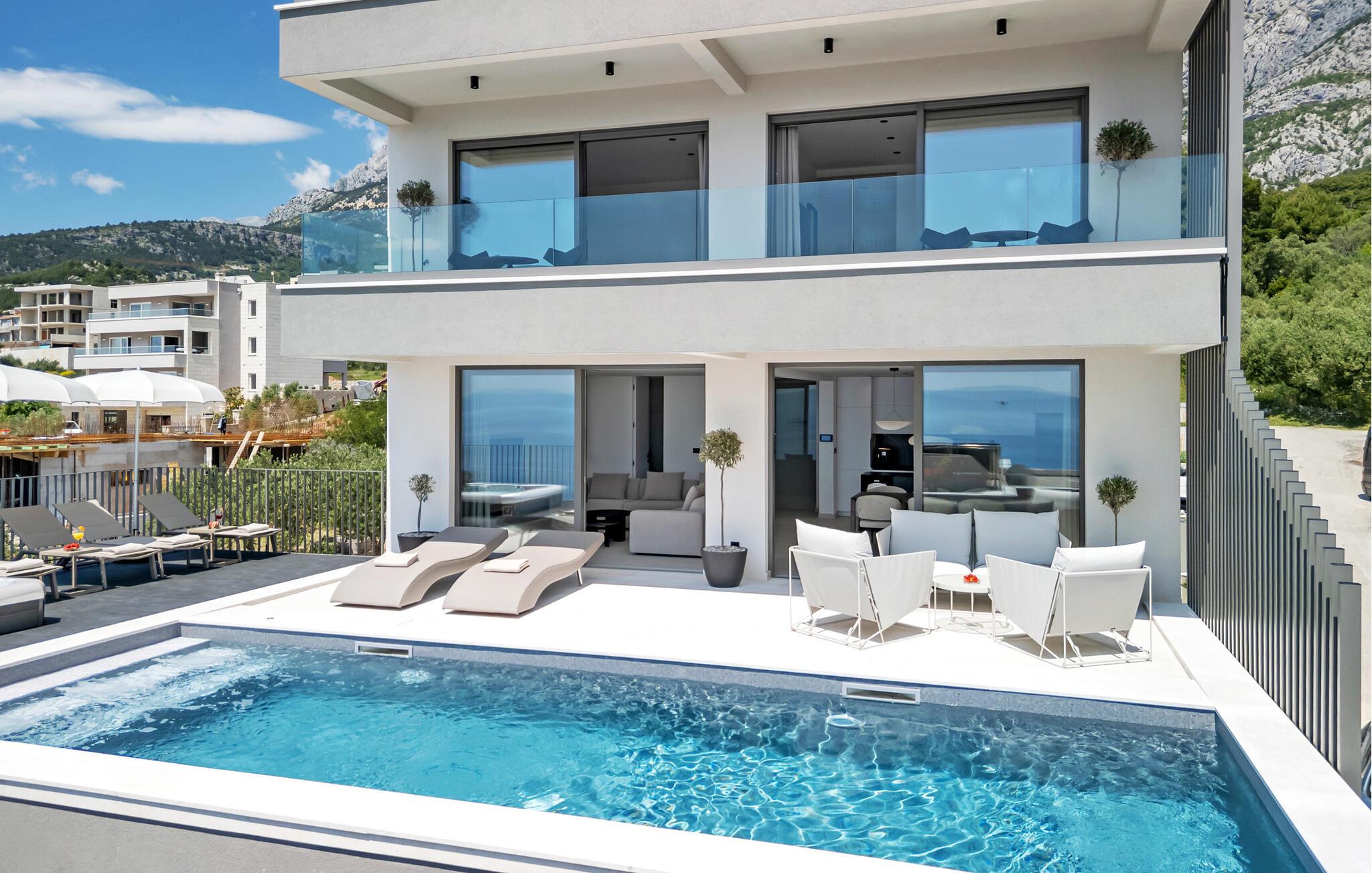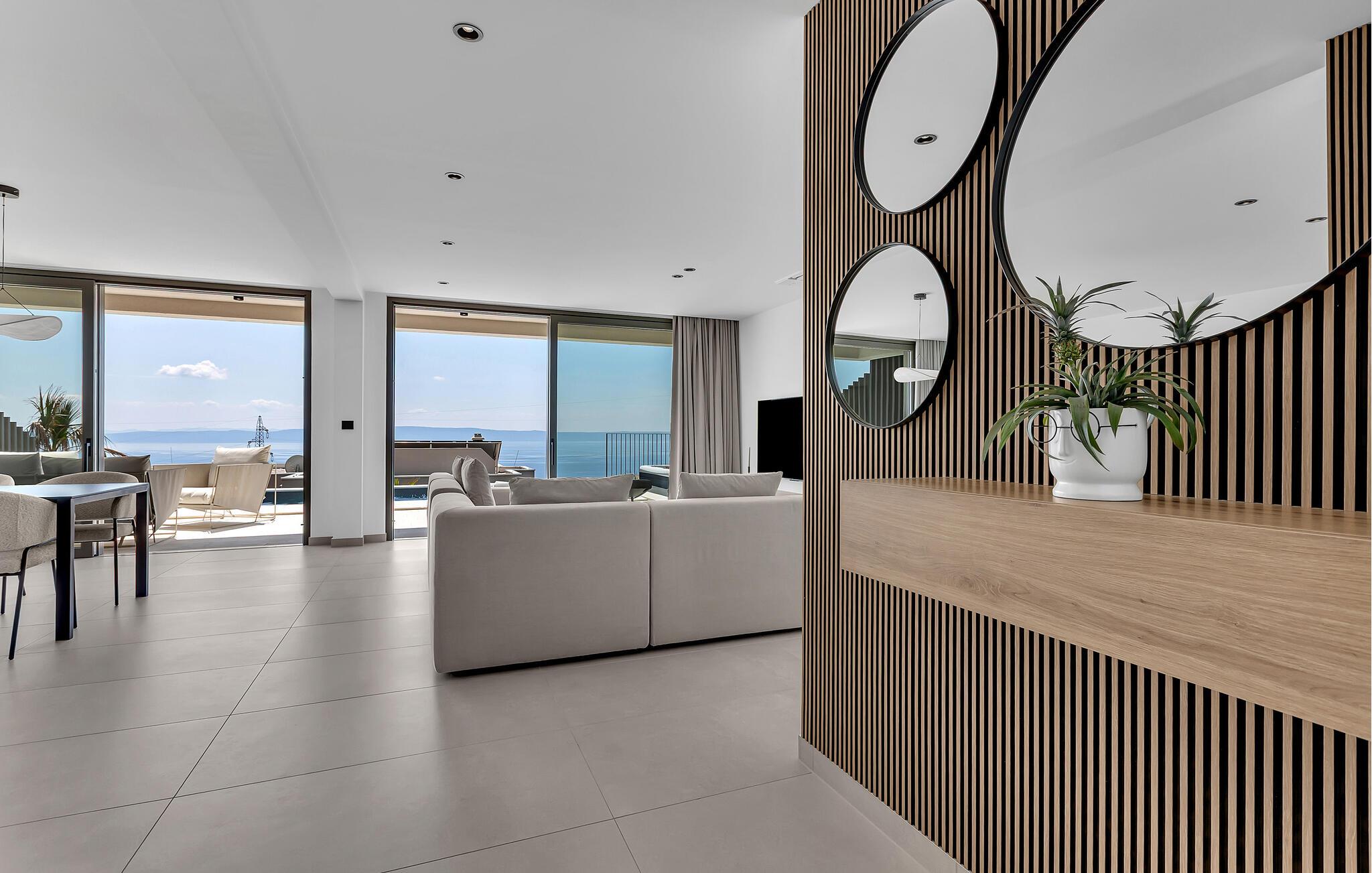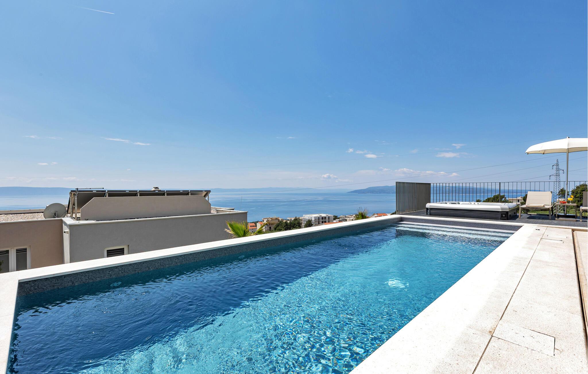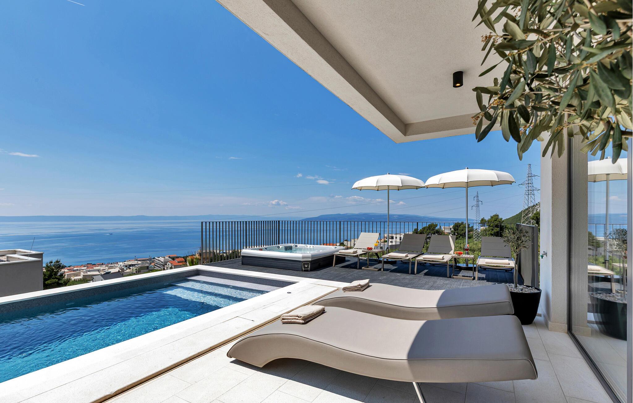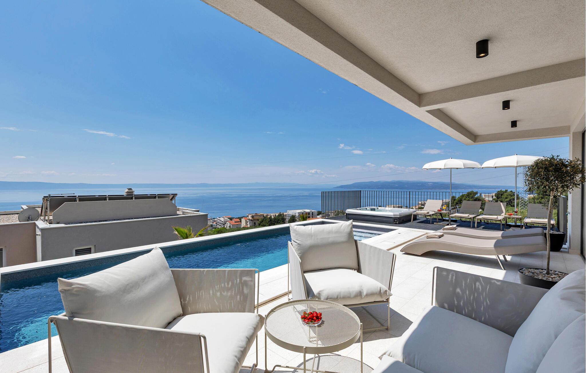 Nyd et fantastisk havpanorama i dette attraktive feriehus med pool og wellness-område.