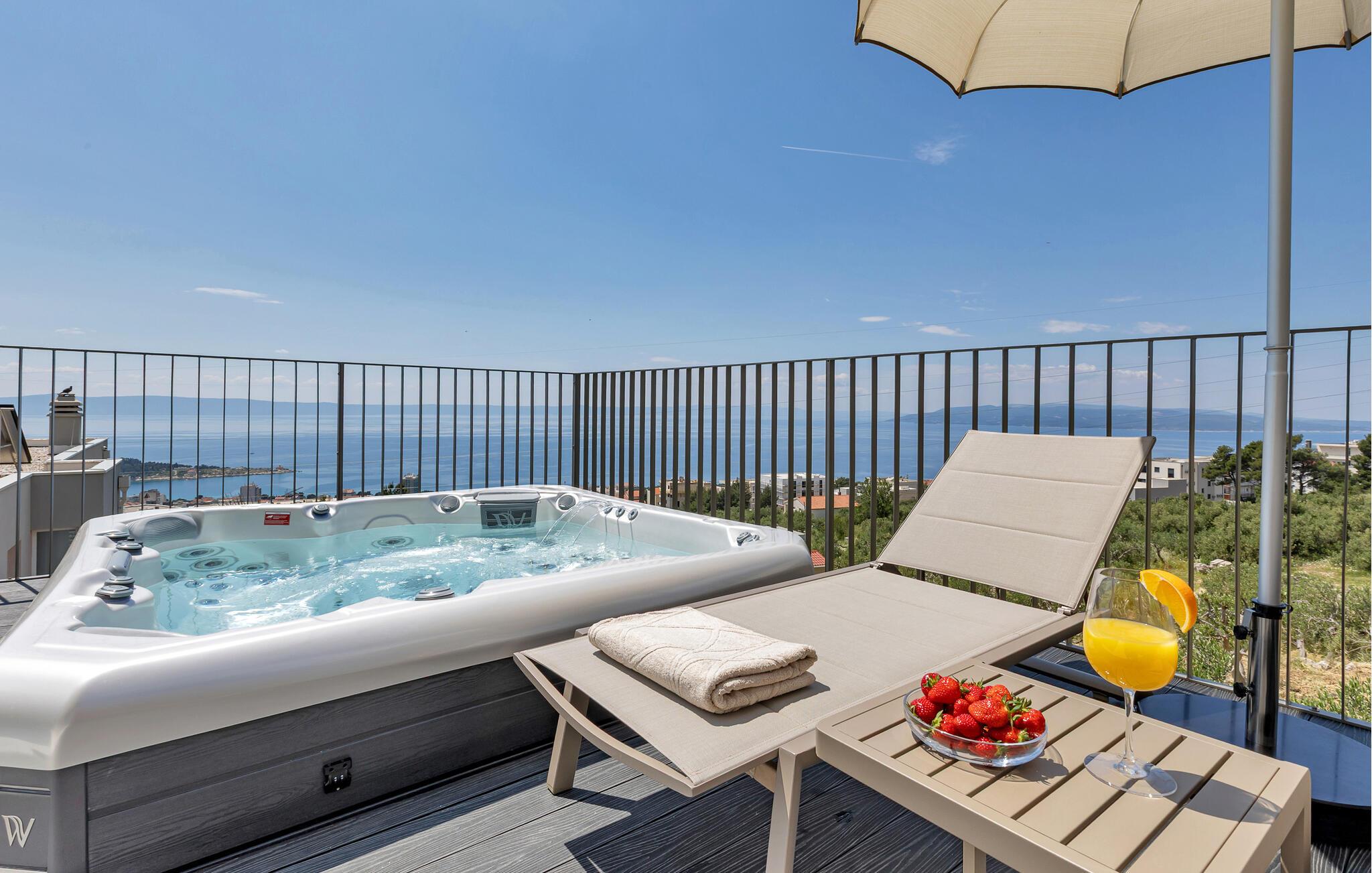 Nyd skønne timer udendørs. Balkoner og terrasser giver jer mulighed for fuldt ud at nyde den betagende udsigt. Snup en frisk dukkert i poolen, når I har lyst eller nyd et boblende bad i spabadet.