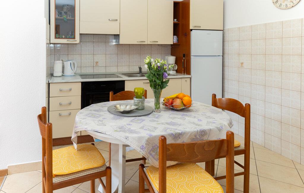 Nyd jeres tid i denne charmerende ferielejlighed nær havet. Det ideelle sted at lægge hverdagen bag jer venter jer. Lyse, smukt designede værelser, et indbydende sofahjørne med tv og farverige detaljer skaber en atmosfære, hvor afslapning er let. Tilbered et lækkert måltid i det moderne køkken, og afslut dagen med et glas vin i den komfortable sofa. Start morgenen med en let morgenmad og en kop aromatisk kaffe på den rummelige altan. Fordyb jer derefter i jeres yndlingsbog, eller planlæg jeres aktiviteter for dagen i ro og mag. Om aftenen kan I vende tilbage hertil for at reflektere over jeres oplevelser i behagelige temperaturer. Gå en tur til den nærliggende stenstrand, og forfrisk jer i Adriaterhavets klare vand. Oplev den livlige by Makarska med dens maleriske havnepromenade, indbydende caféer og farverige marked. Tag en bådtur til øerne Brac og Hvar, eller udforsk de imponerende Biokovo-bjerge, hvor I kan nyde en storslået panoramaudsigt over kysten.