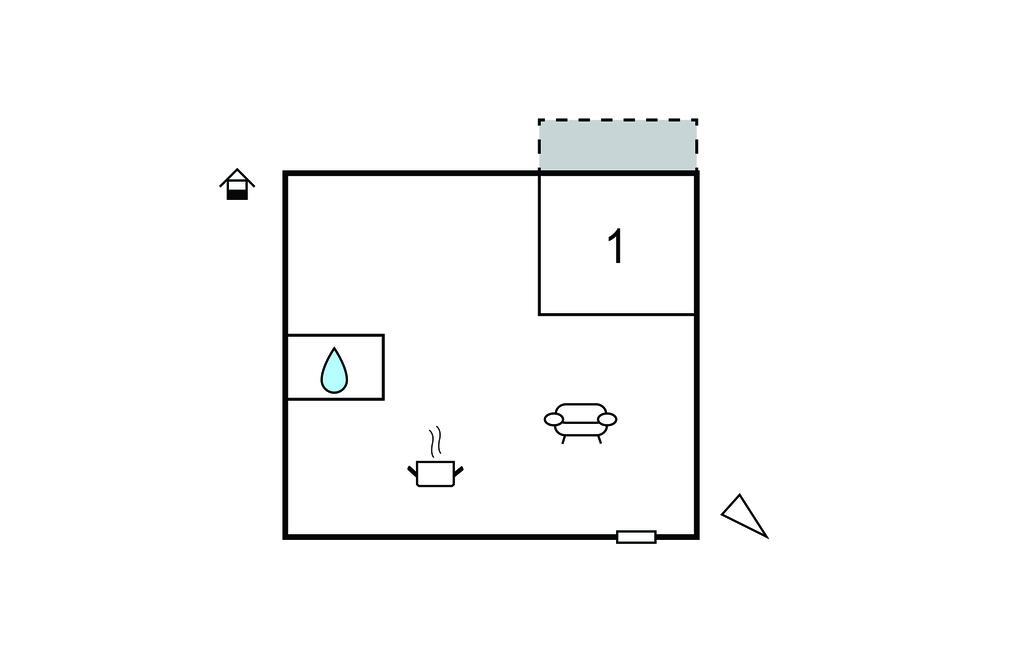 Opholdsstue/køkken 15m2 - 2 Sovepladser. (Sofa, madras eller lignende).