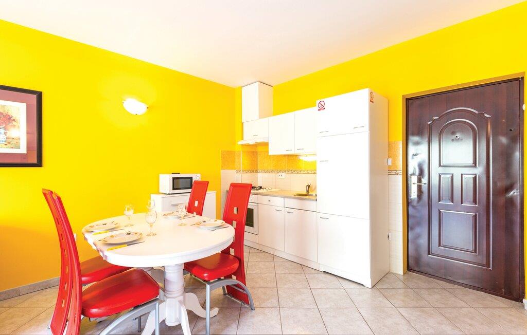 Nyd afslappende dage i denne ferielejlighed, der tilbyder de ideelle rammer for en afslappende pause fra hverdagen. Komfortable sofaer, moderne møbler og et farverigt køkken skaber en behagelig atmosfære, hvor I straks vil føle jer hjemme. Begynd dagene med en aromatisk kaffe eller tryll et lækkert måltid sammen, måske endda ledsaget af et glas kroatisk vin. Her kombineres uformelhed og nydelse for at skabe en ferie, som den bør være.