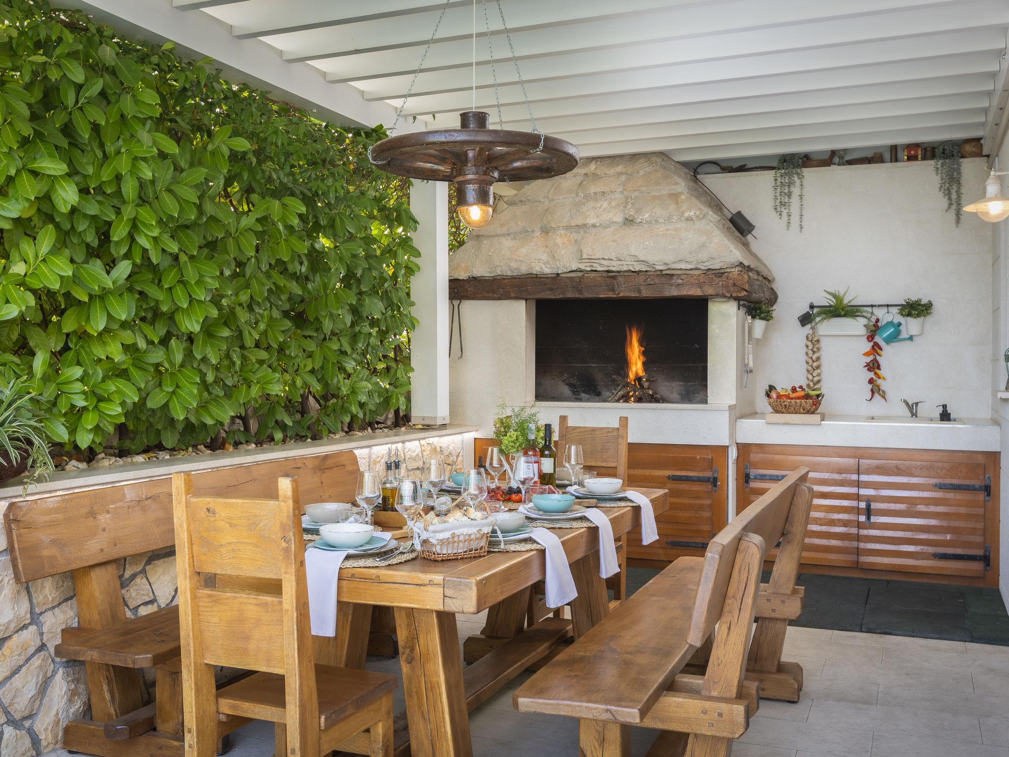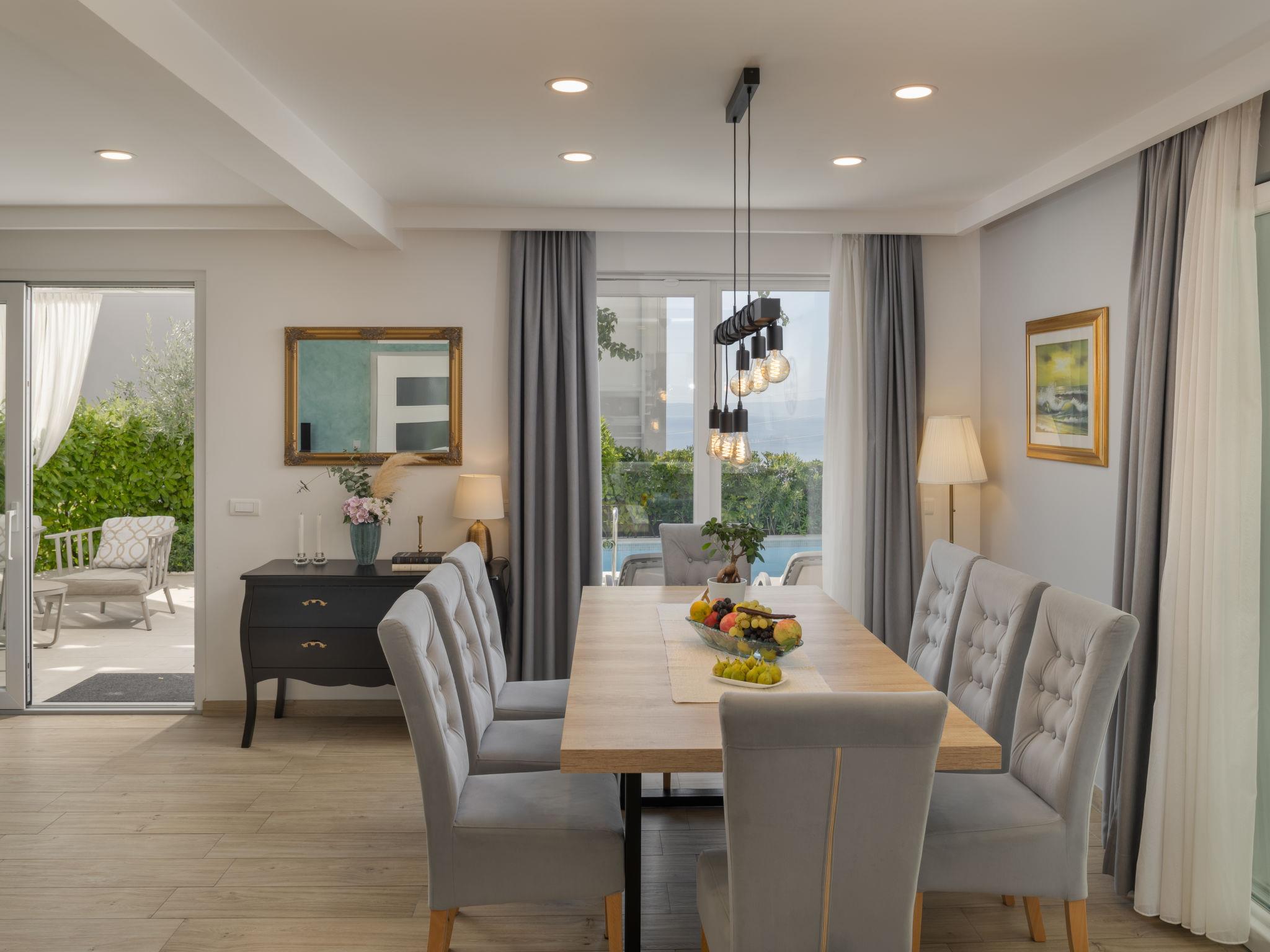 Veliko Brdo 2 km from Makarska: Villa "Luka", 2 storeys. Above Makarska, in a sunny, elevated position, 1.4 km from the sea, 1.4 km from the beach, in a cul-de-sac. Private: property 400 m2, lawn 84 m2, swimming pool heated (25 m2, depth 150 cm, seasonal availability: 01.May. - 01.Oct.). Unconventional pool shape. Terrace (20 m2), garden furniture, barbecue (slide, swing). In the house: internet access, sauna, fitness room, billiard table, table football, washing machine. Parking (for 2 cars) at the house on the premises, single garage. Shop 500 m, restaurant 1.5 km, bus stop 3 km, pebble beach 1.4 km. Swimming pool heated or cooled (extra). It is necessary to announce 7 days in advance if the pool heating or pool cooling is required. Swimming pool with counterflow, hydromassage and waterfall. By groups of young people double deposit is requested on arrival.