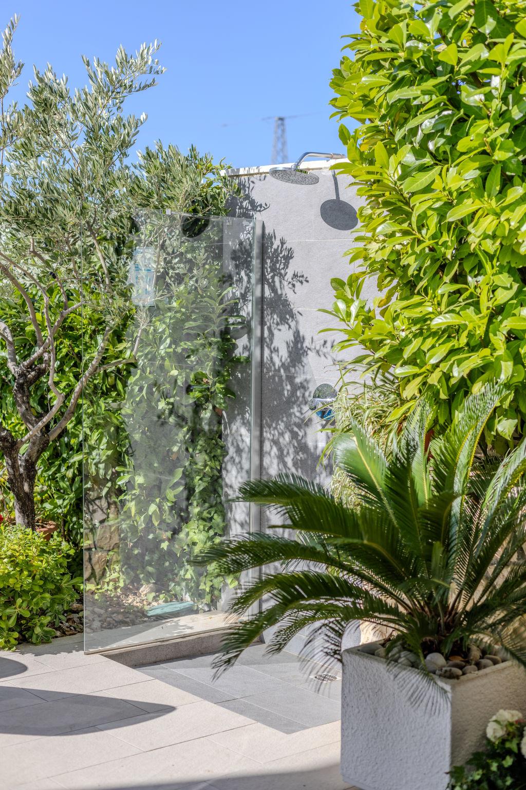 5-room villa 300 m2 on 2 levels, south facing position. Living/dining room 48 m2 with open-hearth fireplace and satellite TV (flat screen), air conditioning. Exit to the terrace. 1 room with 1 french bed (180 cm, length 200 cm), shower/WC and satellite TV (flat screen), air conditioning. Exit to the terrace. Open kitchen (oven, dishwasher, 4 ceramic glass hob hotplates, microwave, freezer, electric coffee machine). Sep. WC. Upper floor: 2 rooms, each room with 1 french bed (180 cm, length 200 cm), shower/WC and satellite TV (flat screen), air conditioning. Exit to the balcony. 1 room with 1 french bed (200 cm, length 200 cm), shower/WC and satellite TV (flat screen), air conditioning. Exit to the balcony. 2 balconies 6 m2, balcony 10 m2, terrace 50 m2 partly roofed. Terrace furniture, deck chairs. Facilities: safe, children's high chair, baby cot, hair dryer. Internet (WiFi, free).