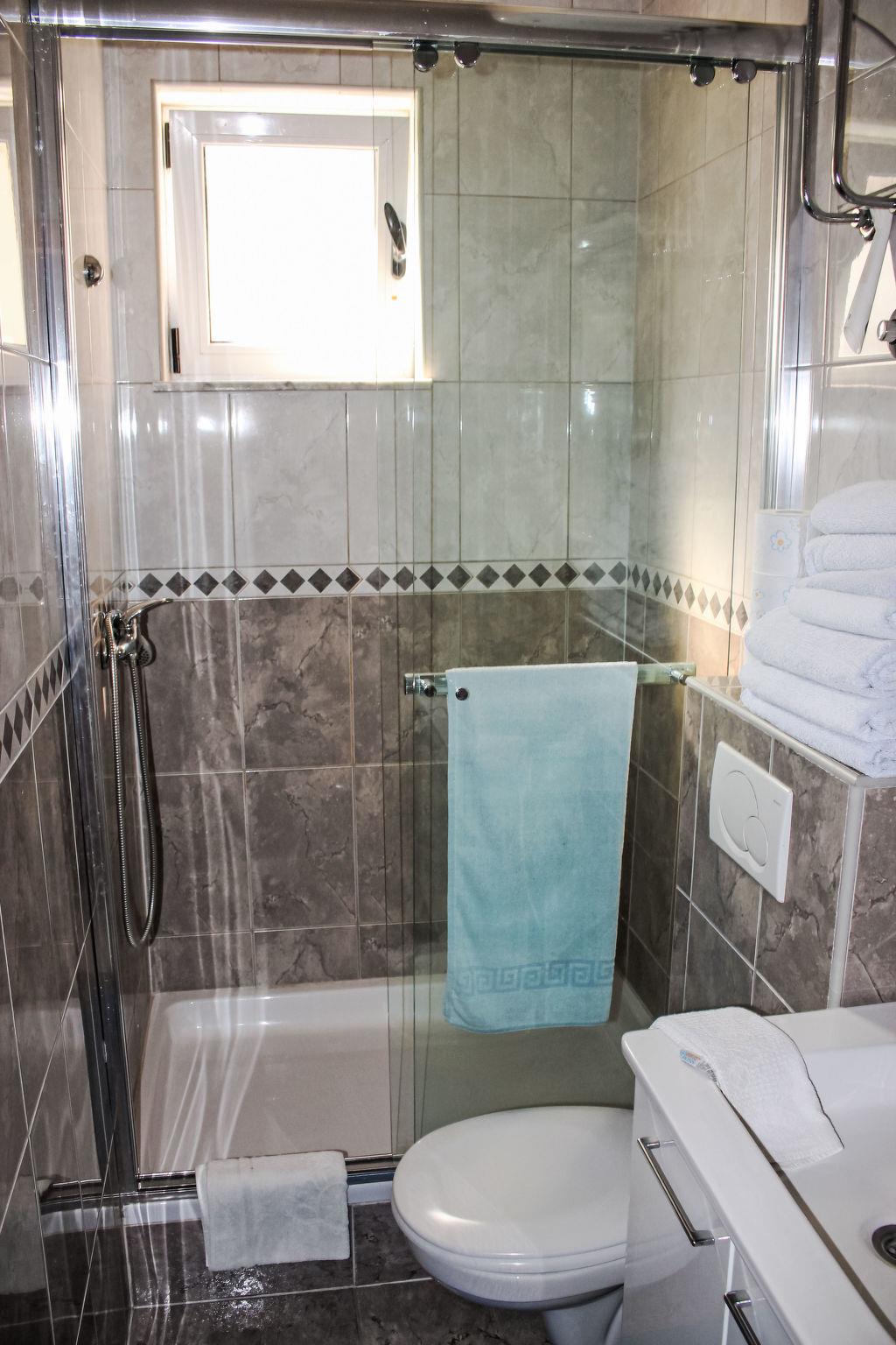3-room apartment 70 m2 on 1st floor. Living/dining room with satellite TV and air conditioning. Exit to the balcony. 1 room with 1 french bed (160 cm, length 200 cm). Exit to the balcony. 1 room with 1 french bed (160 cm, length 200 cm). Open kitchen (4 ceramic glass hob hotplates, kettle, electric coffee machine) with dining table. Shower/WC. Balcony 12 m2. Balcony furniture. Facilities: safe, iron, hair dryer. Internet (WiFi).
