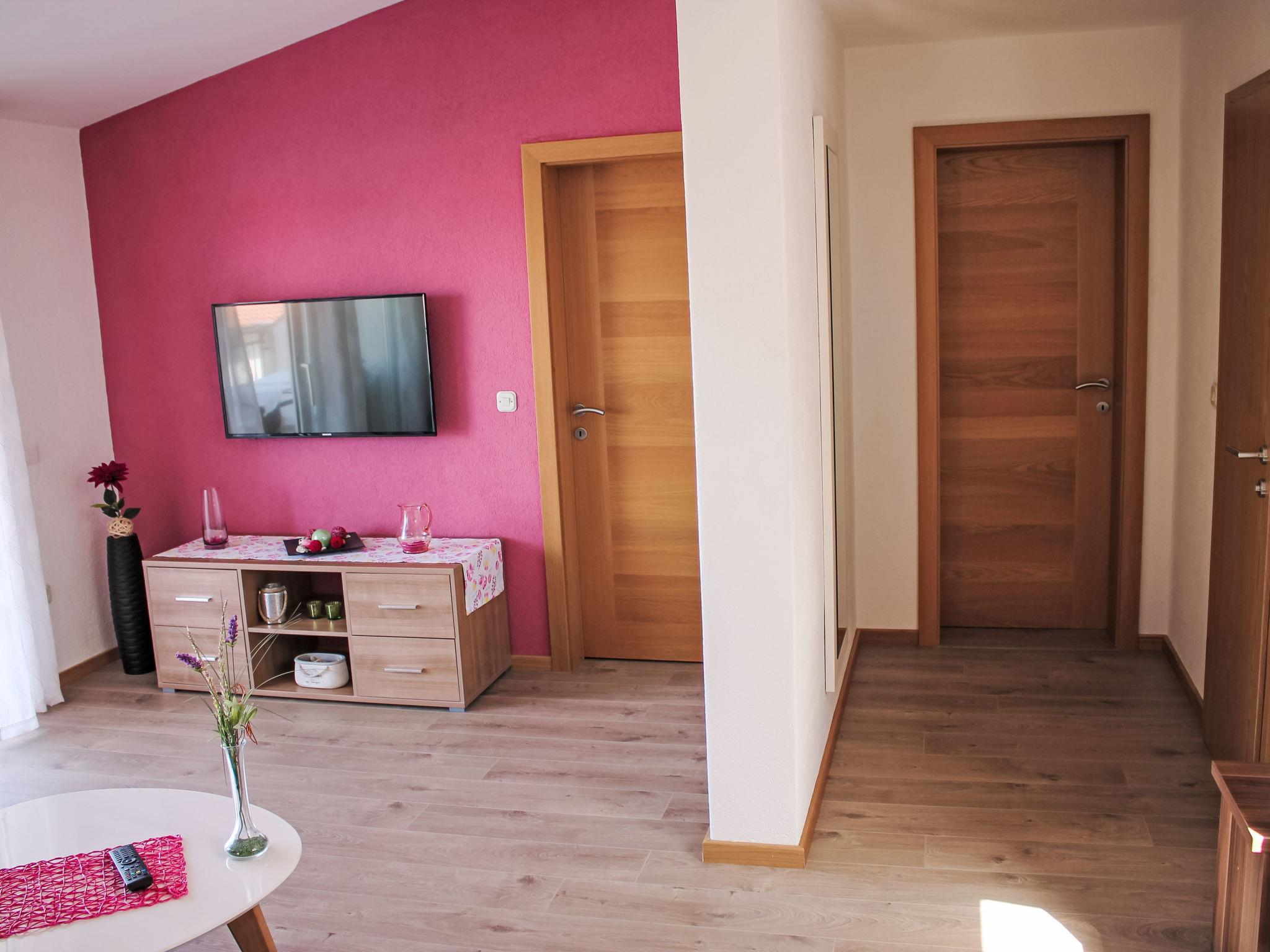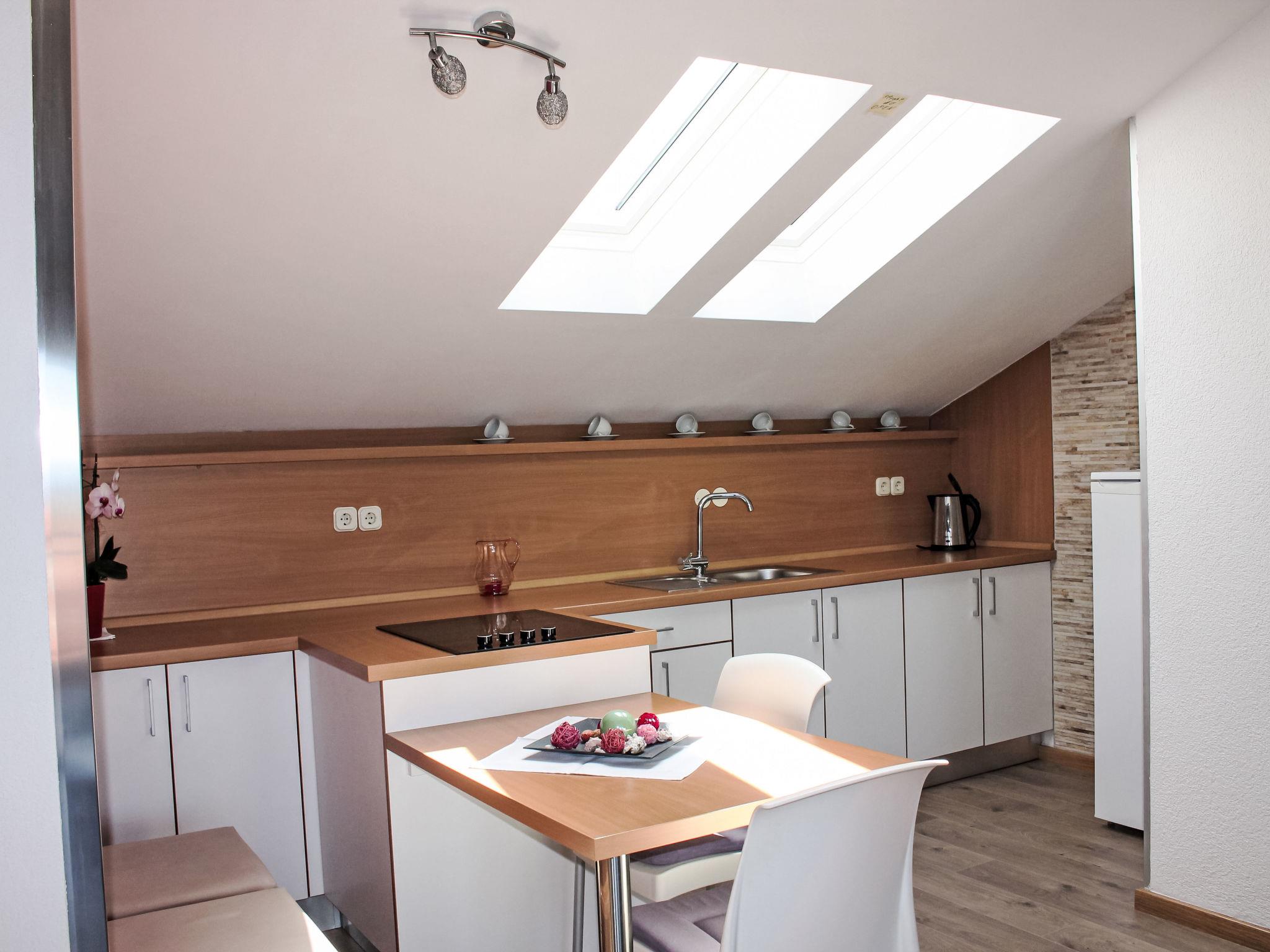 3-room apartment 70 m2 on 2nd floor. Living/dining room with satellite TV and air conditioning. Exit to the balcony. 2 rooms, each room with 1 french bed (160 cm, length 200 cm). Exit to the balcony. Open kitchen (4 ceramic glass hob hotplates, kettle, freezer, electric coffee machine) with dining table. Shower/WC. Balcony 12 m2. Balcony furniture. Facilities: safe, iron, hair dryer. Internet (WiFi).