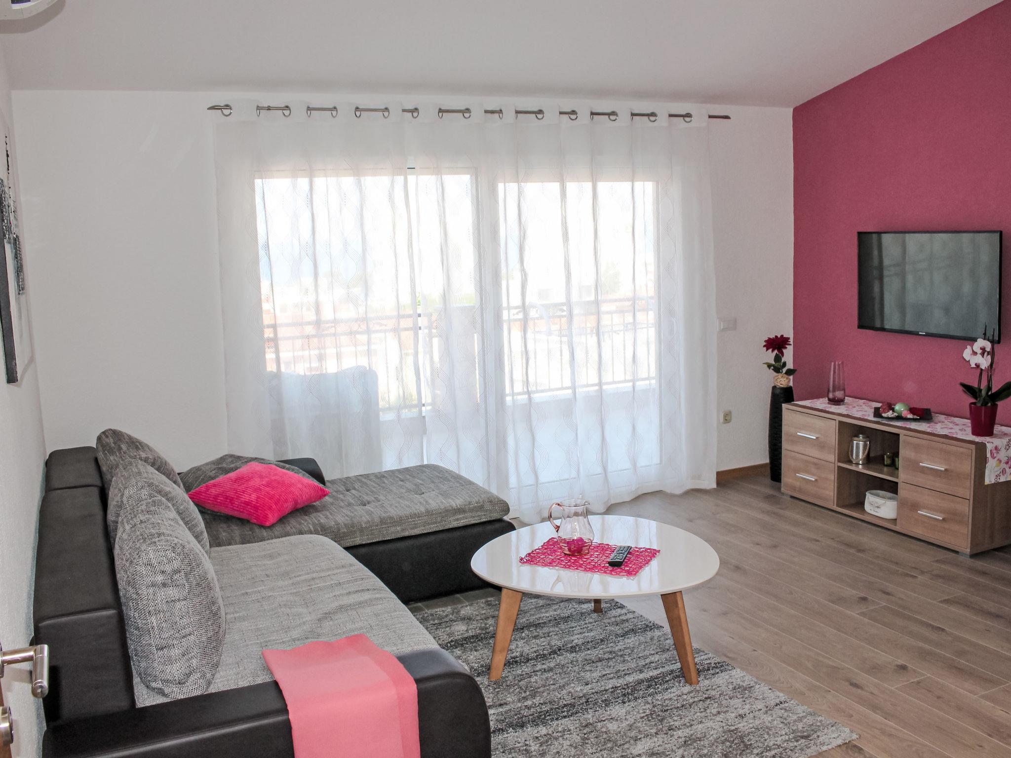Apartment block "Villa Silvia", 3 storeys. 5 apartments in the property. 750 m from the centre of Makarska, in a quiet, sunny position, 500 m from the sea, 500 m from the beach, in a cul-de-sac. For shared use: property 400 m2 (fenced). In the house: internet access, washing machine (extra). 40 m long narrow motor access to the house. Parking (limited number of spaces) at the house. Shop 170 m, shopping centre 1.8 km, restaurant, café 250 m, bus stop 300 m, pebble beach 500 m. On request: airport transfer to the holiday accommodation. Please note: the owner lives in the same residence. Airfield 78 km from the property.