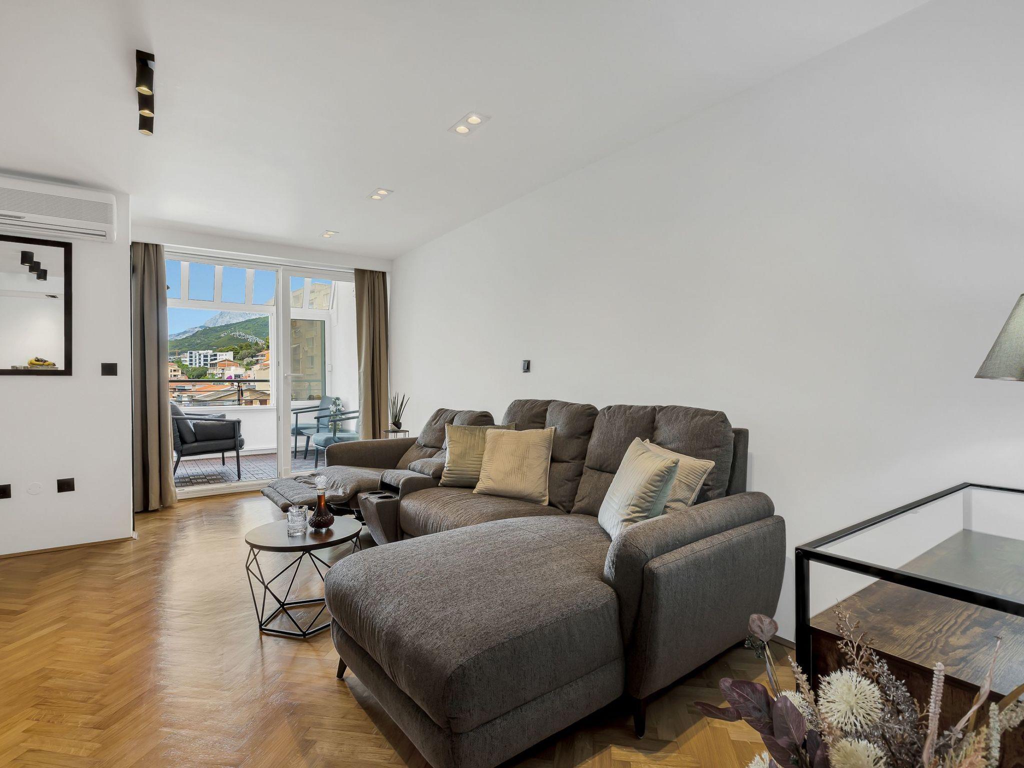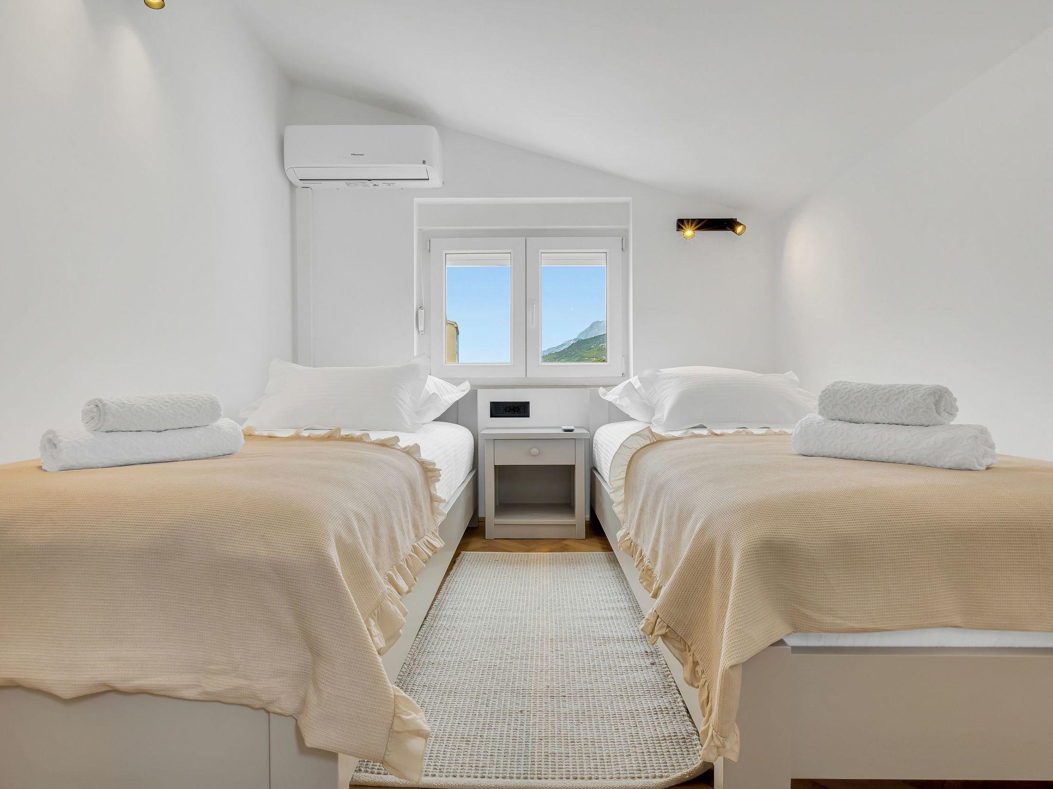 The location of the flat in Makarska promises a combination of city life and enjoyment of nature. Just 500 metres away you will find both the beach and the sea, where there are numerous opportunities for water sports. The nearest town centre with its sights such as the Makarska Riva promenade, St. Peter's lighthouse and the Franciscan monastery is also just a short walk away. There is a grocery store in the immediate vicinity for everyday shopping.