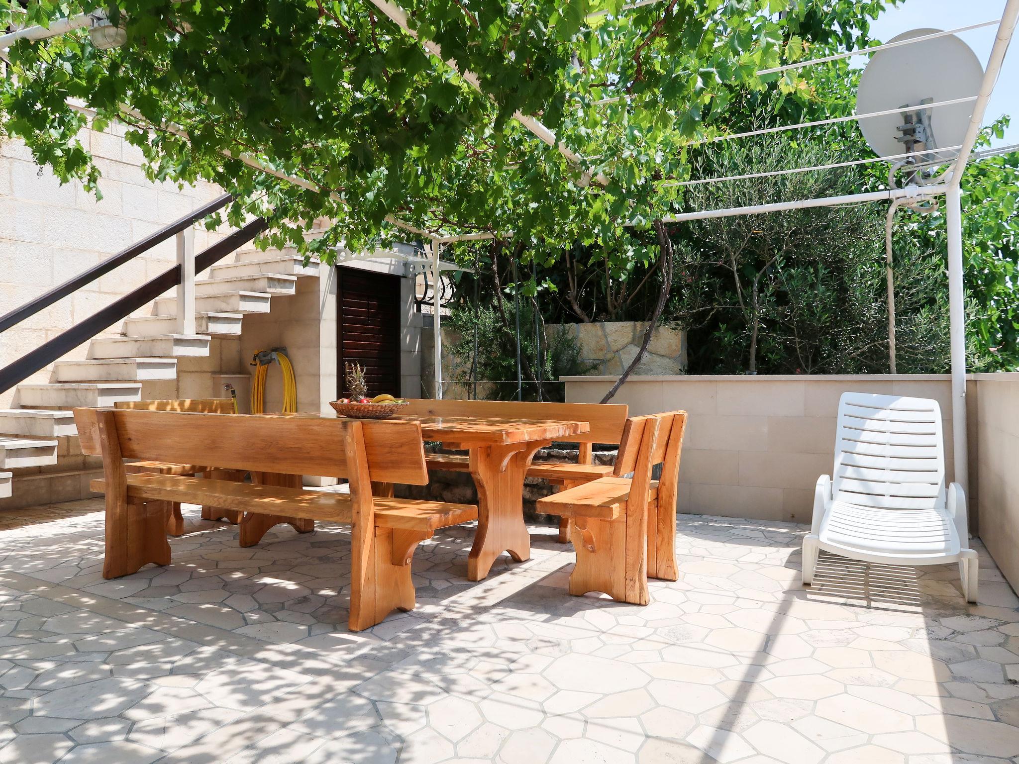 Brela: Single-family house "Ivo", 4 storeys. In the centre of Brela 11 km from the centre of Pisak, 15 km from the centre of Makarska, 100 m from the sea, 150 m from the beach, in a cul-de-sac. Private: property 150 m2 (fenced). Terrace, garden furniture, barbecue. In the house: internet access, washing machine. Narrow motor access to the house. Shop 100 m, bus stop 2.2 km, pebble beach 150 m.