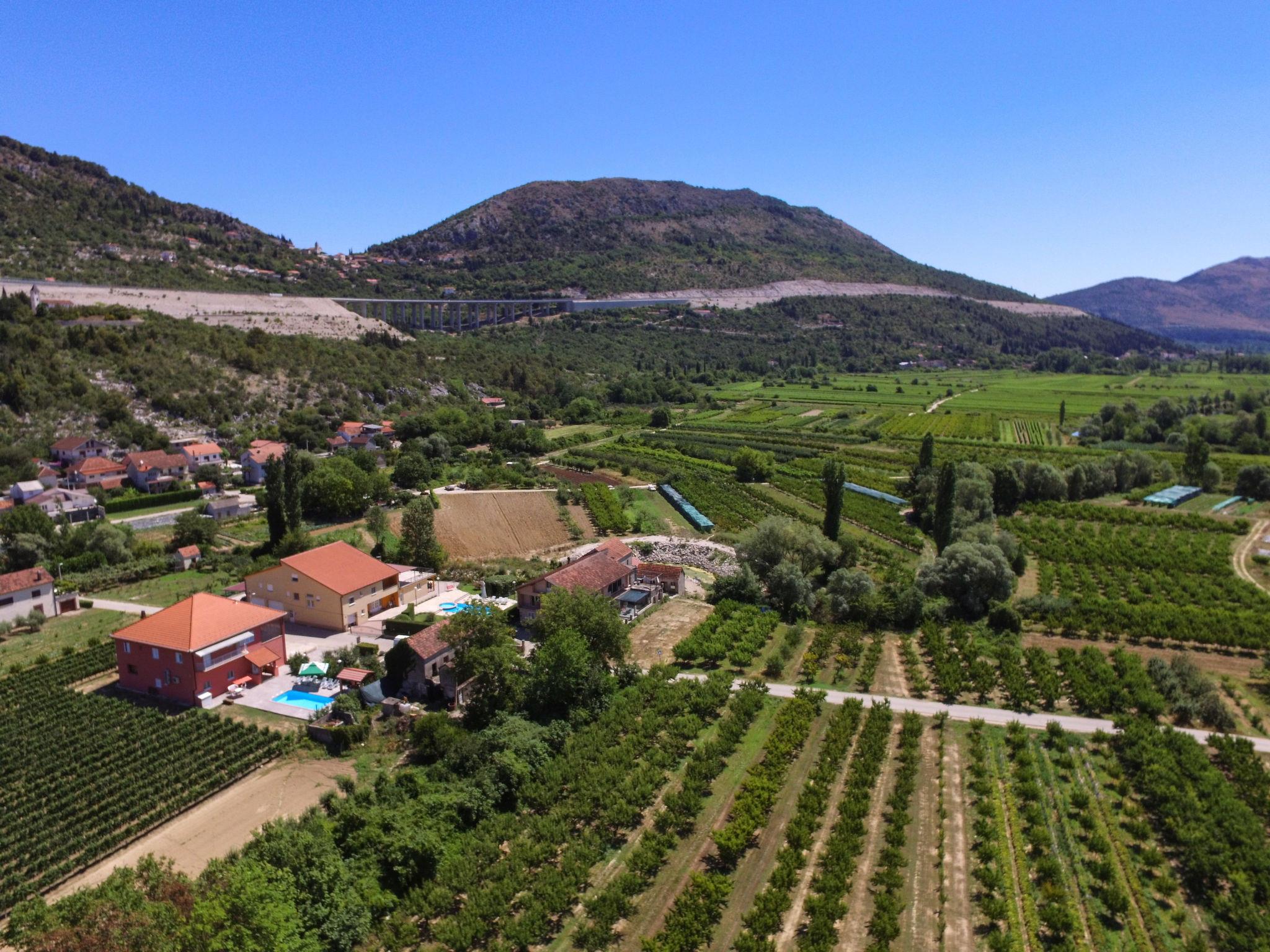 2-family house "Baba Nevenka", built in 2018. 400 m from the centre of Dusina, 5 km from the centre of Vrgorac, 18 km from the centre of Ploce, 18 km from the sea. Private: property 400 m2 with wildlife garden, swimming pool angular (8 x 4 m, depth 150 cm, seasonal availability: 01.May. - 15.Oct.) with internal staircase. Outdoor shower, terrace, garden furniture, barbecue. In the house: internet access. Parking (for 2 cars) on the premises. Shop 400 m, supermarket 18 km, bus stop 3.3 km, pebble beach 18 km. Please note: the owner lives on the same property.