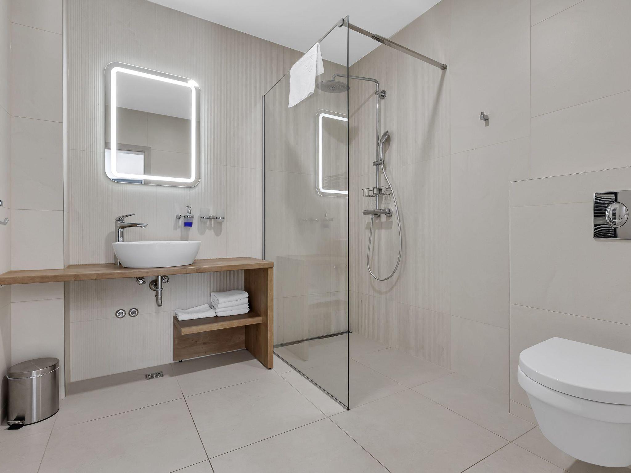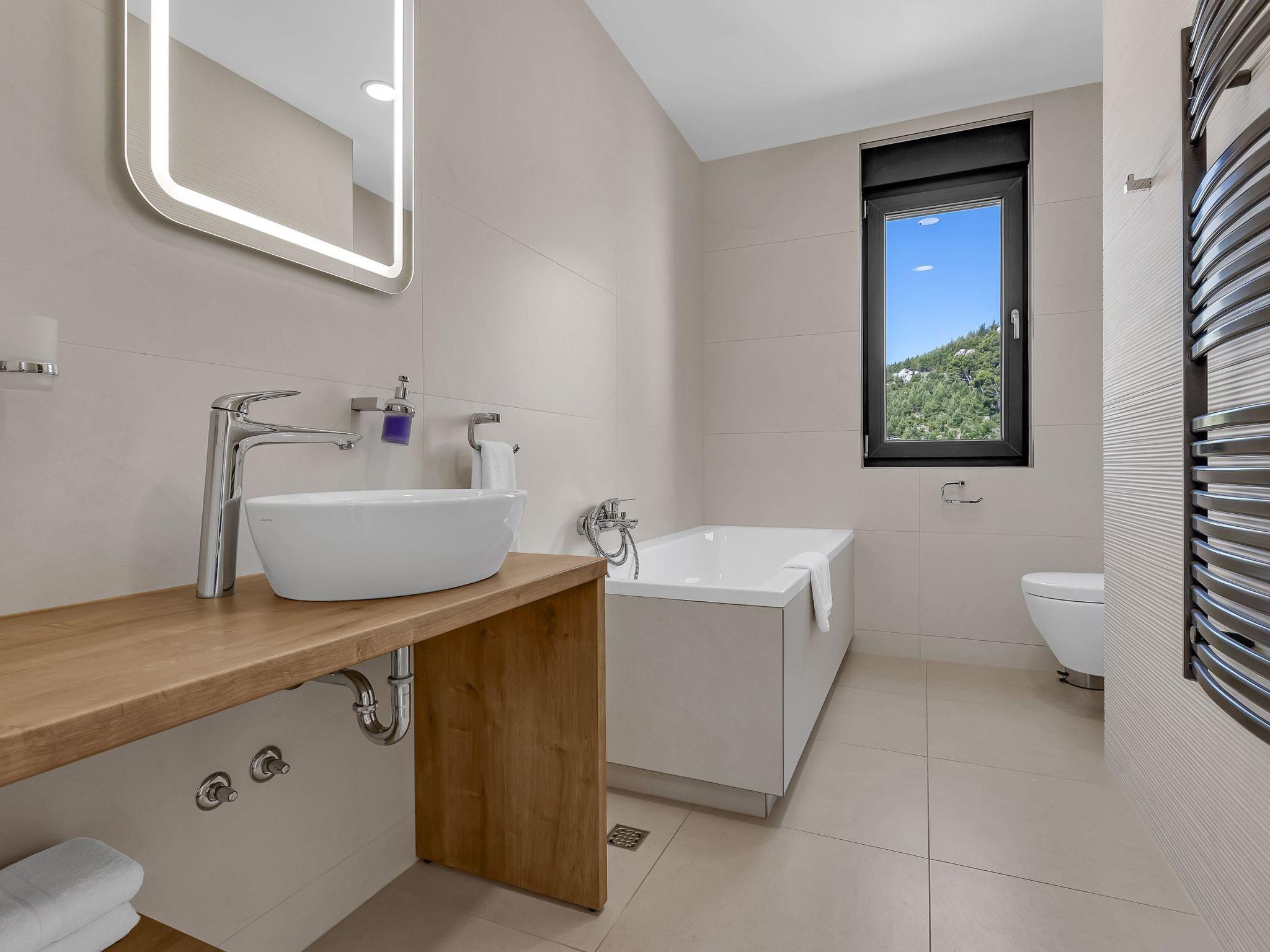 The outdoor area of each villa promises pure relaxation. A swimming pool for exclusive use invites you to take a refreshing dip, while the terrace and balcony are ideal places to enjoy the peaceful atmosphere. The garden, which is also for exclusive use, offers plenty of space for relaxing or socialising outdoors.